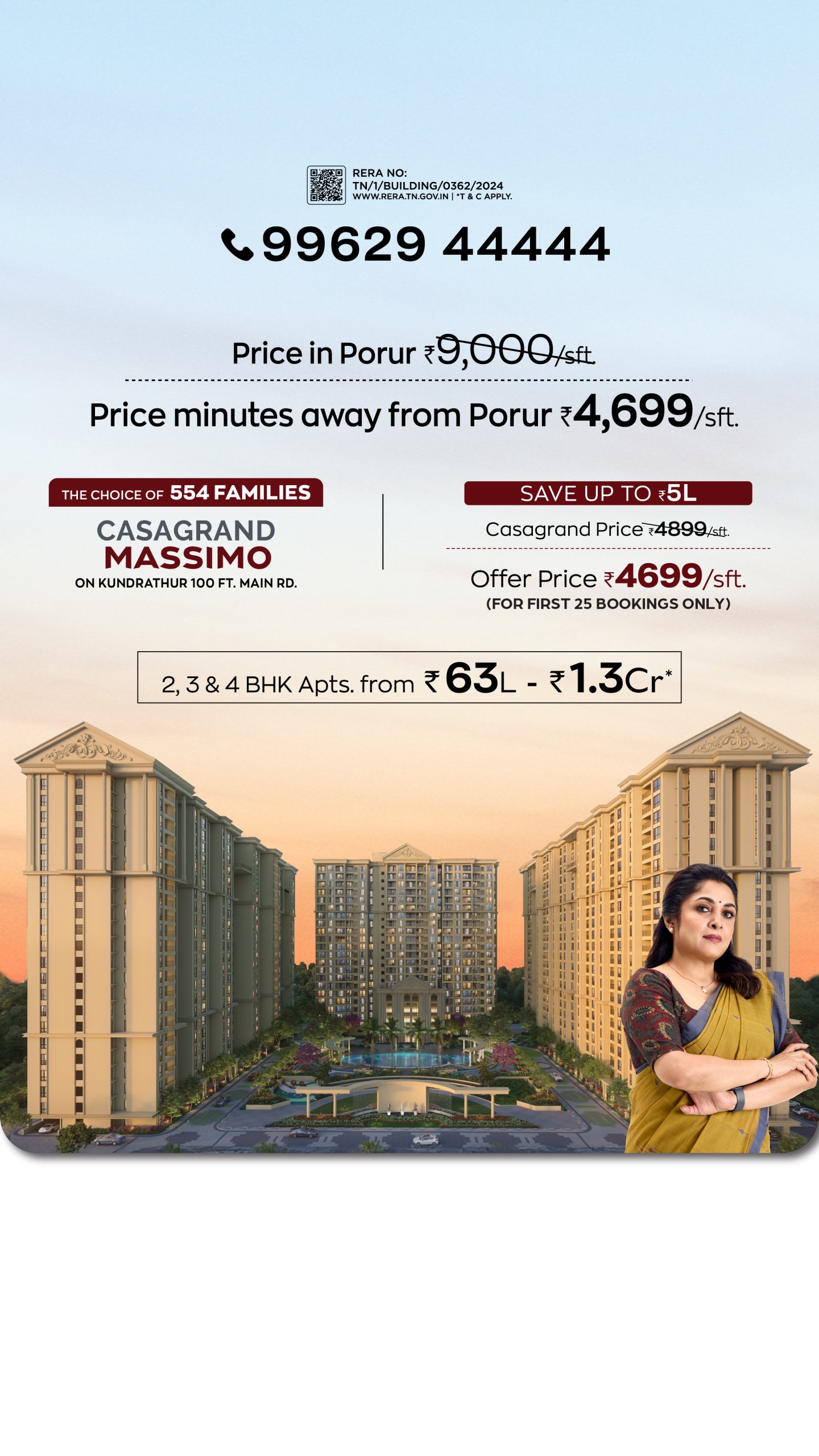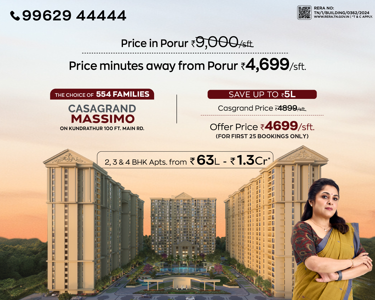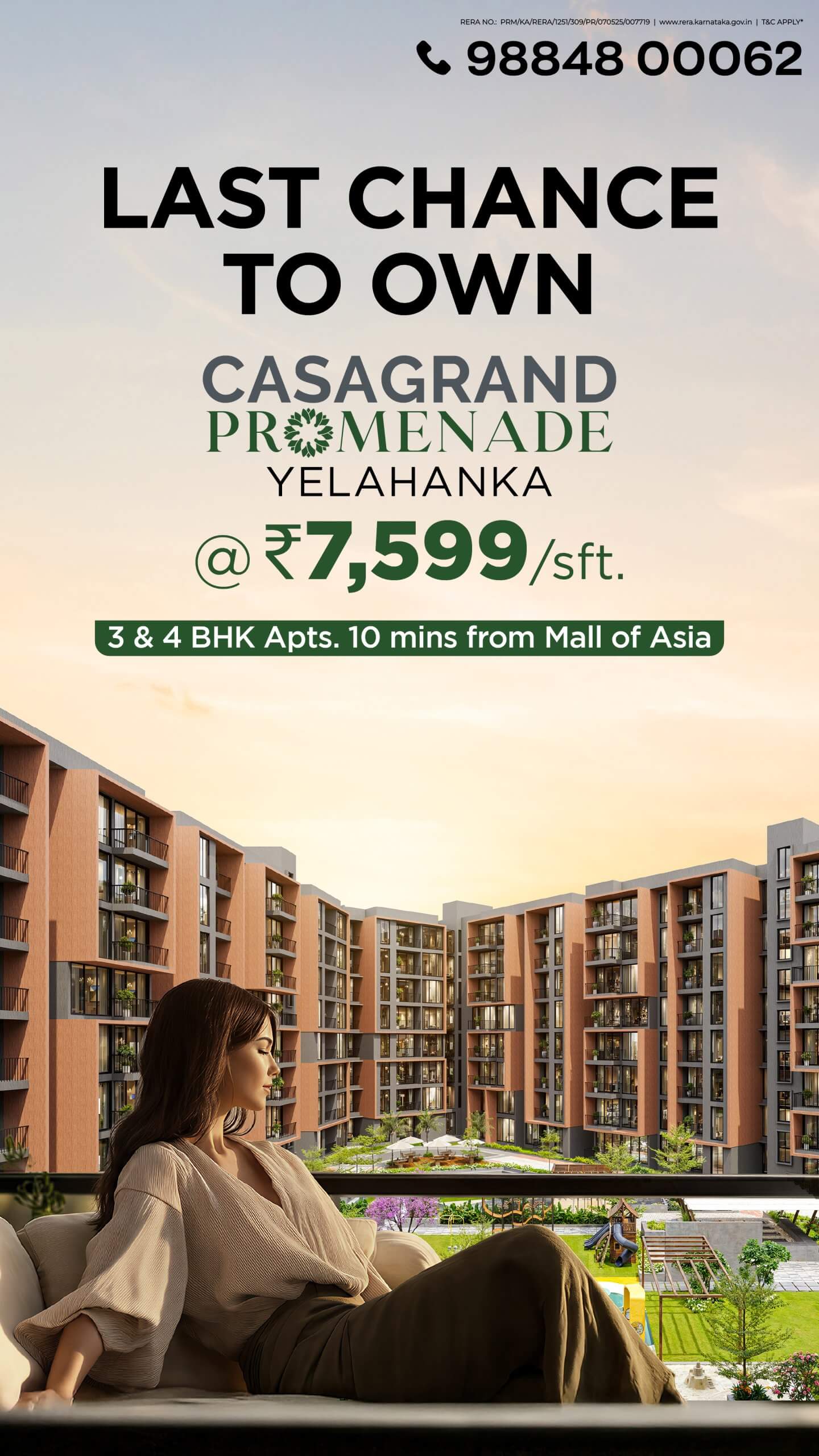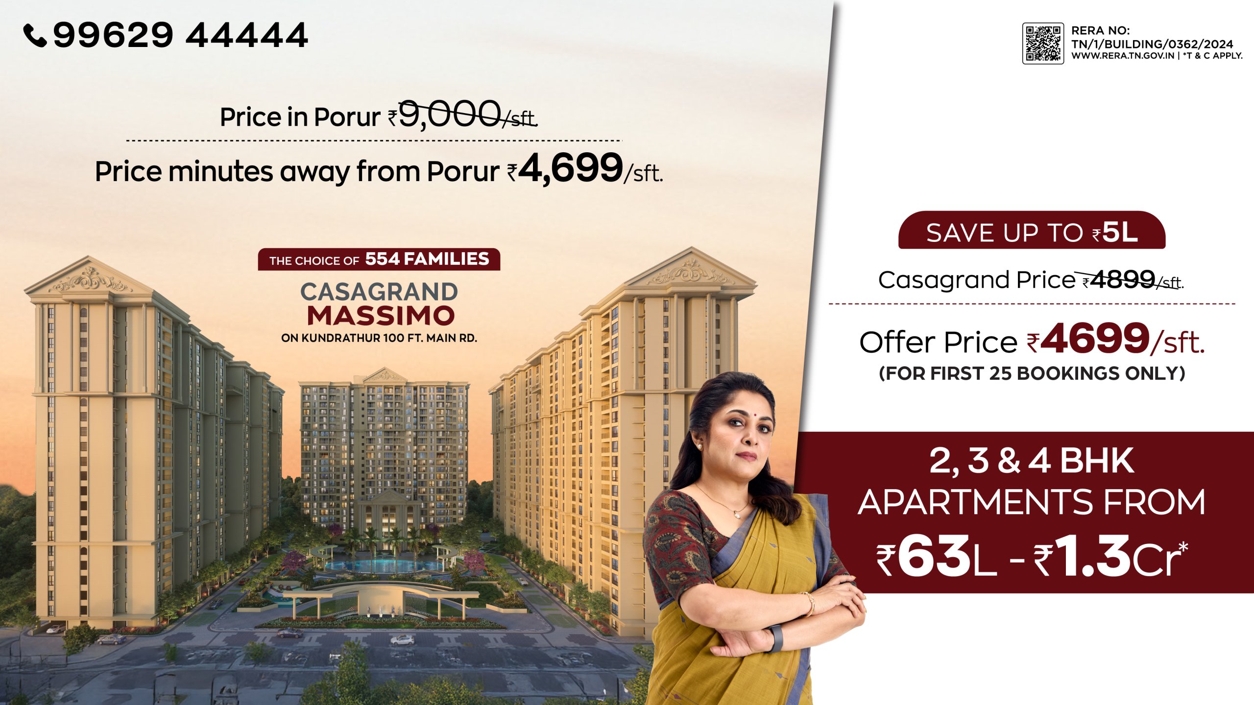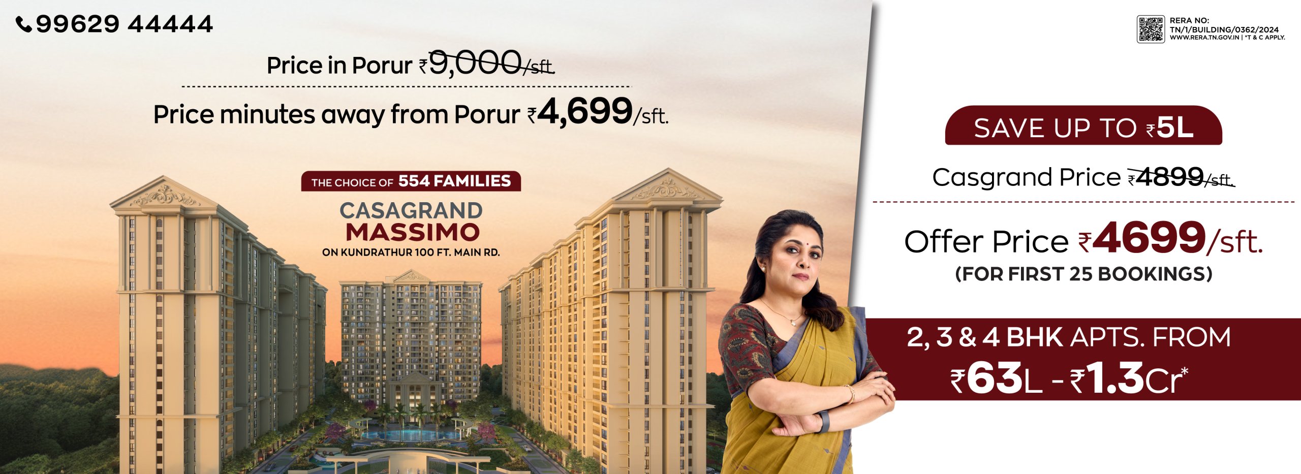 Casagrand Evon offers 579 luxurious 3 and 4 BHK apartments in Kompally.