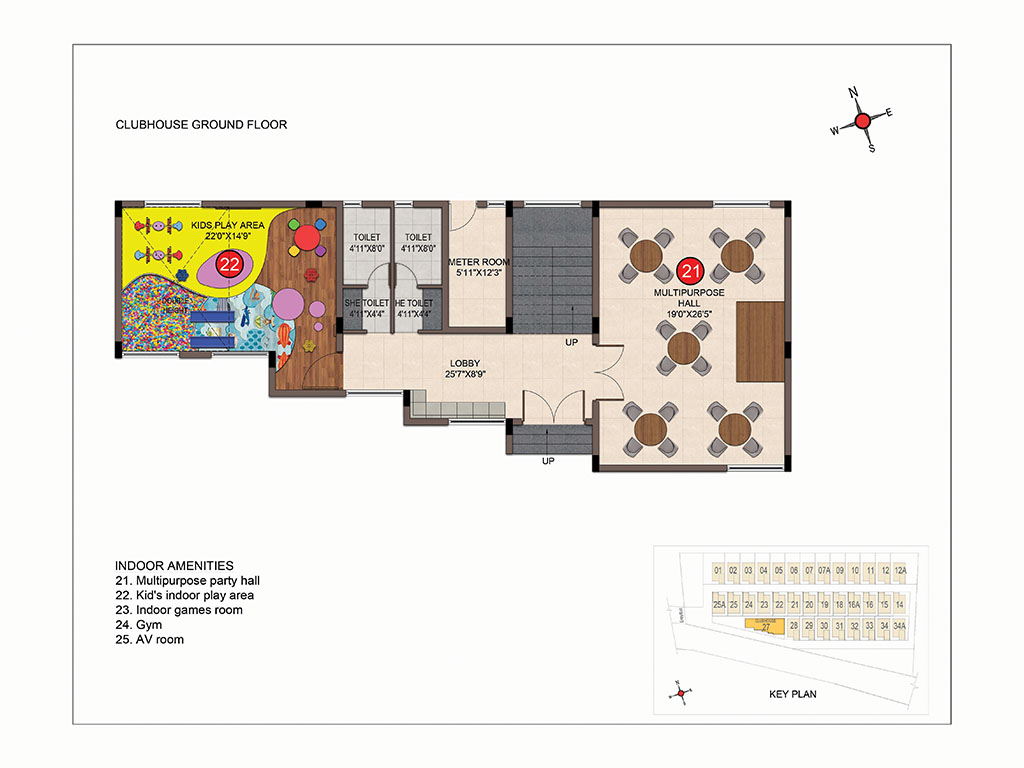 - Host yourself and your guests in our grand clubhouse with facilities like multipurpose party hall, Indoor games room & Kids play zone.