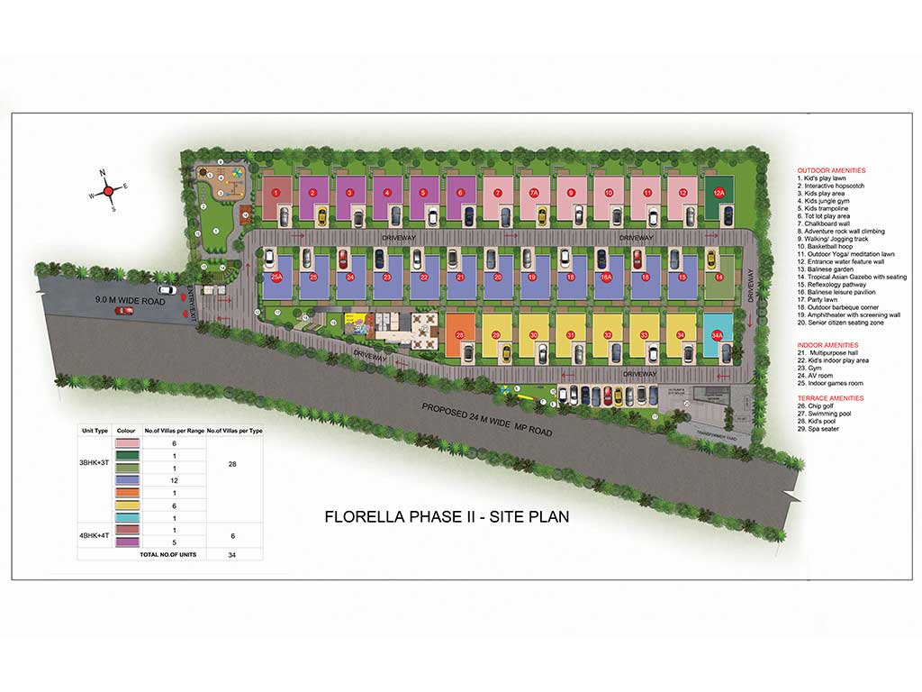- Dedicated car parking with landscape is designed for all Villas