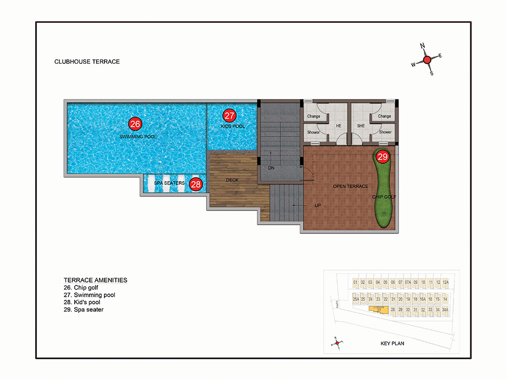 - The Club terrace is filled with amenities like Rooftop swimming pool with infinity edge, Jacuzzi pool, Kids pool and Gazebo with lounge seaters, poolside refreshment counter and interactive water jets.