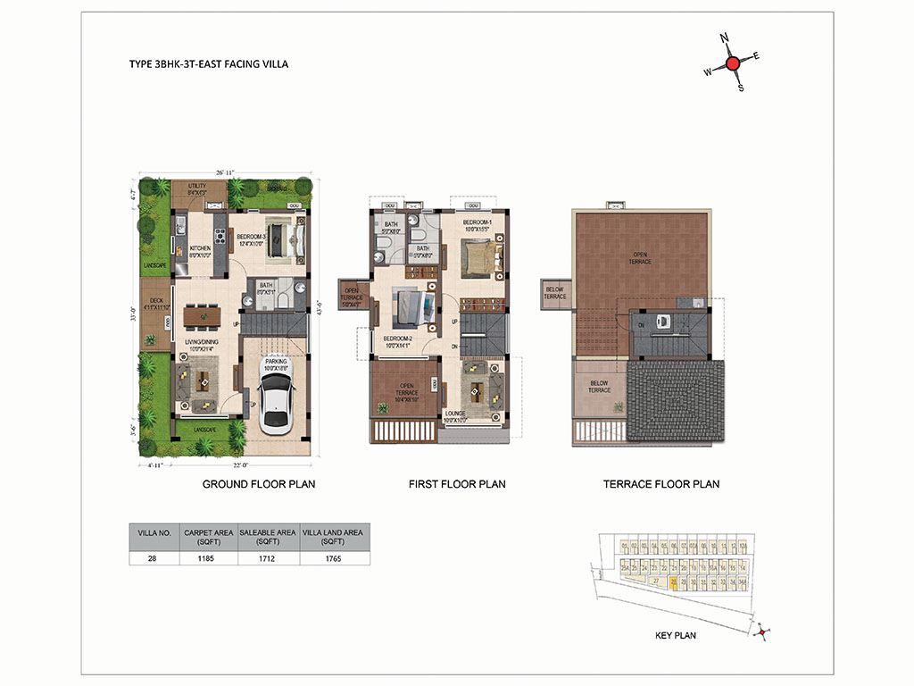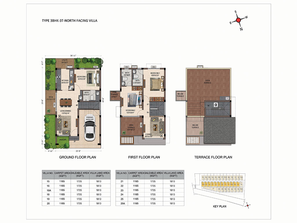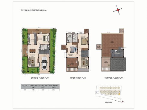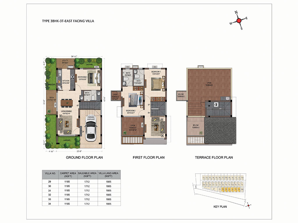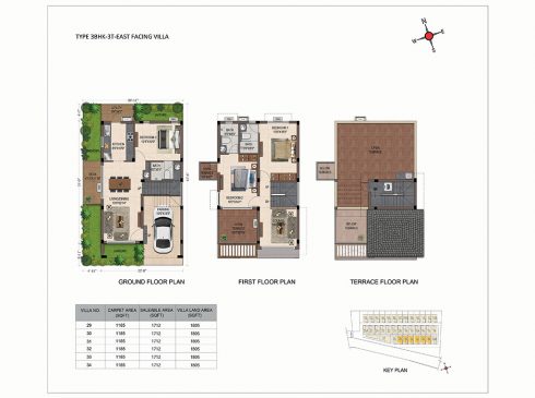- All villas have East and North facing Main entrance door.