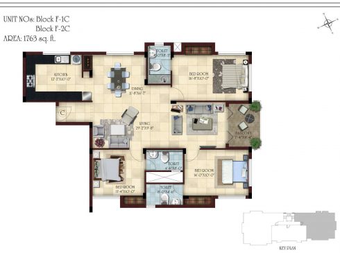 | Flooring | Living, dining, family living and bedrooms will sport imported vitrified tile flooring.Kitchen will sport vitrified flooring.Bathroom & utility will have ceramic tile-anti skid finish.Balcony will be finished with vitrified tile. |