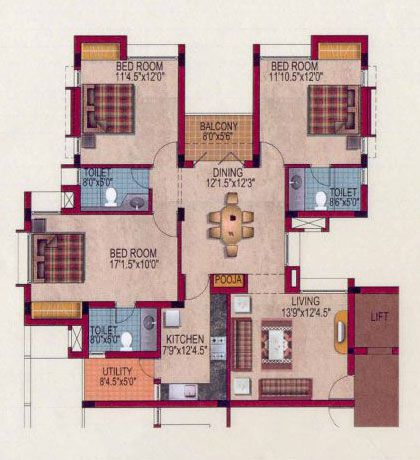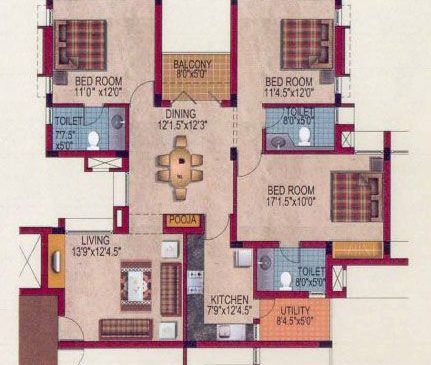 | The entire apartment will be provided with vitrified Flooring (Excluding the balcony and utility area) |