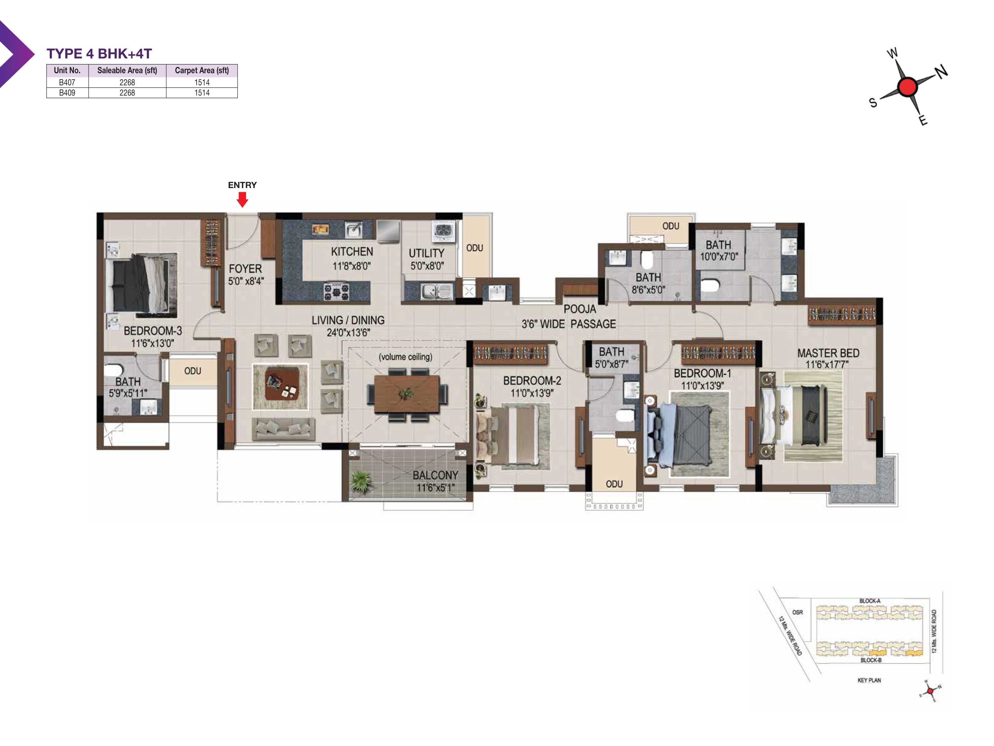 | 4 BHK | Double Height | 2268 Sqft | ₹6299/Sqft | Sold Out |