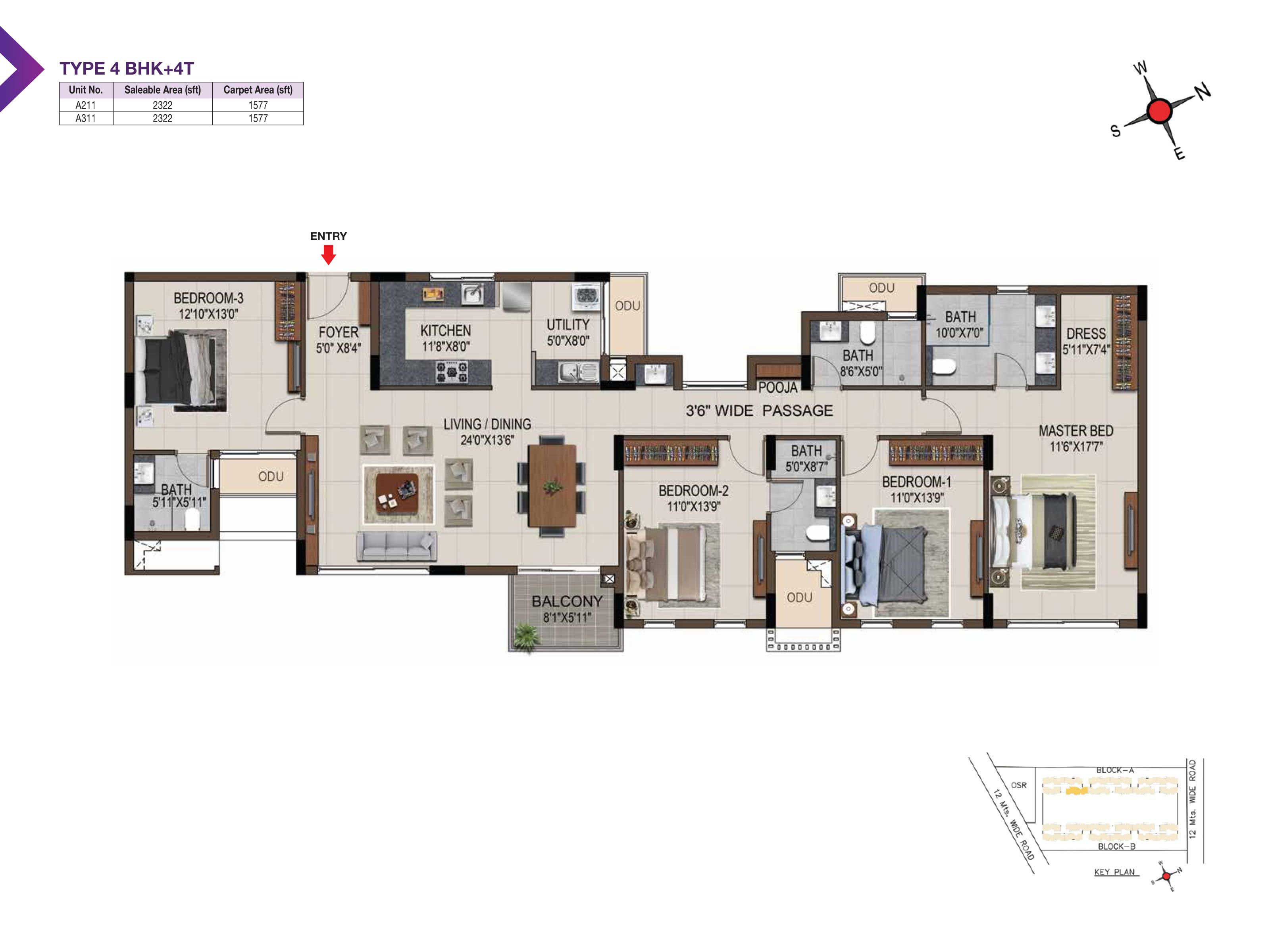 | 4 BHK | Regular | 2251 Sqft | ₹6099/Sqft | Sold Out |