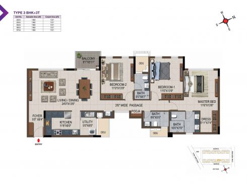 | BHK | Unit Type | Built-Up Area | Price Per Sq. Ft. | Price Range |