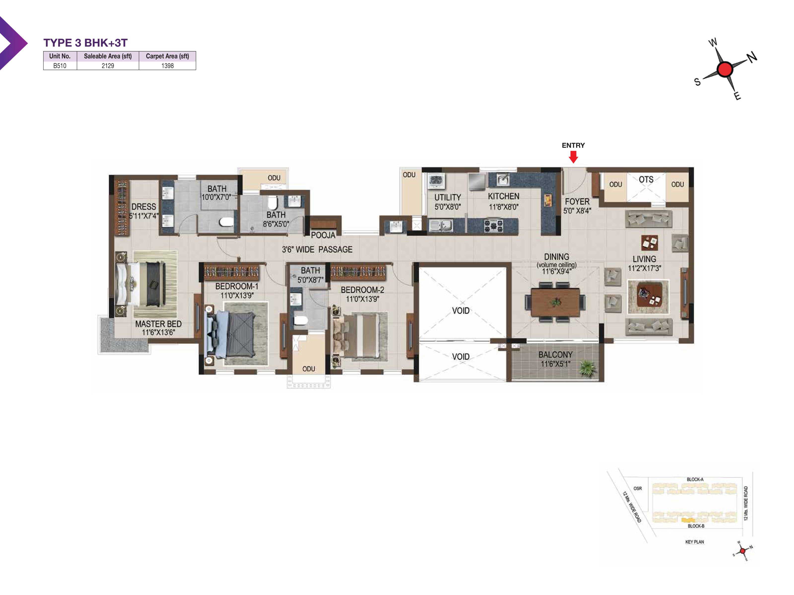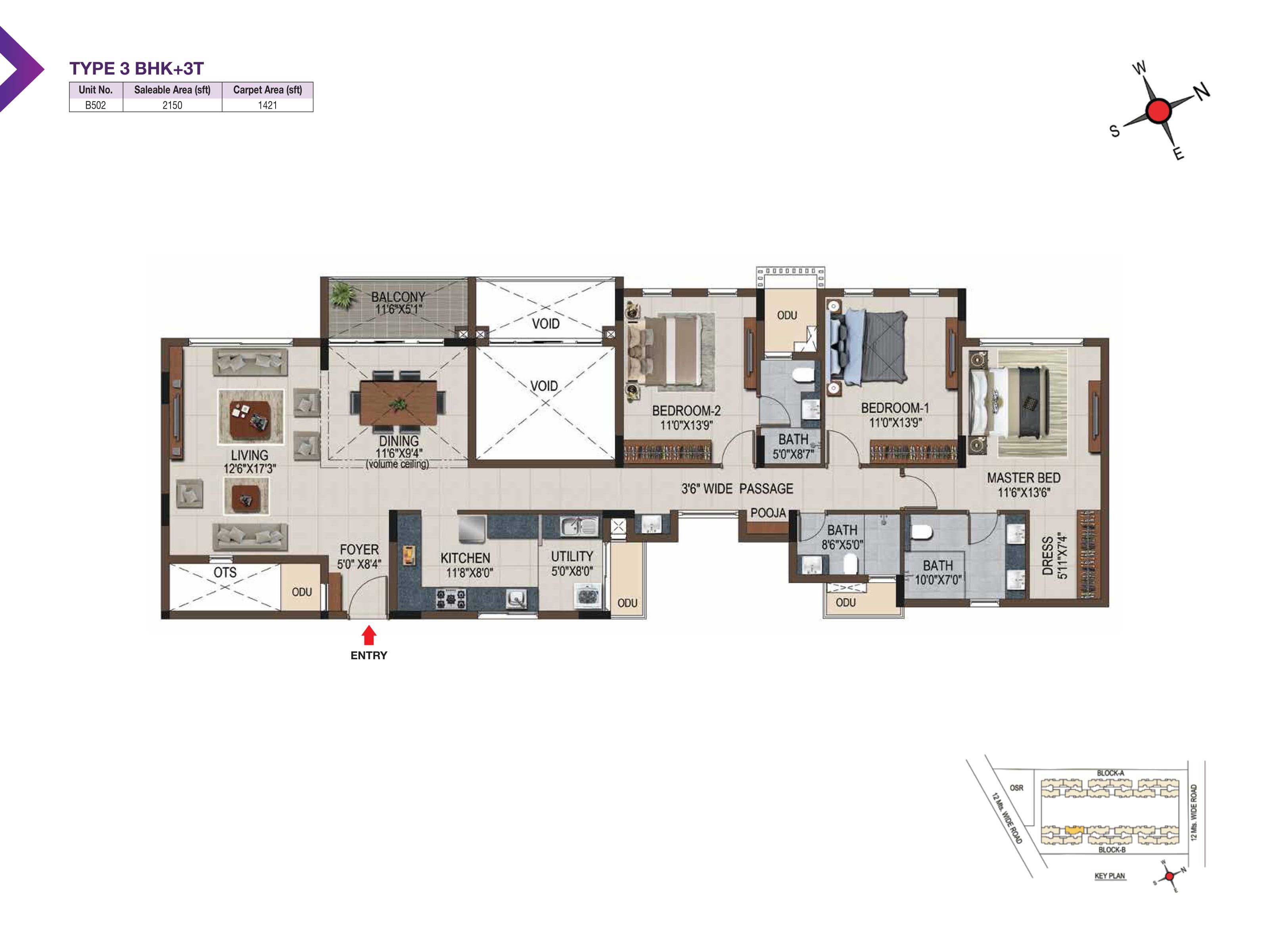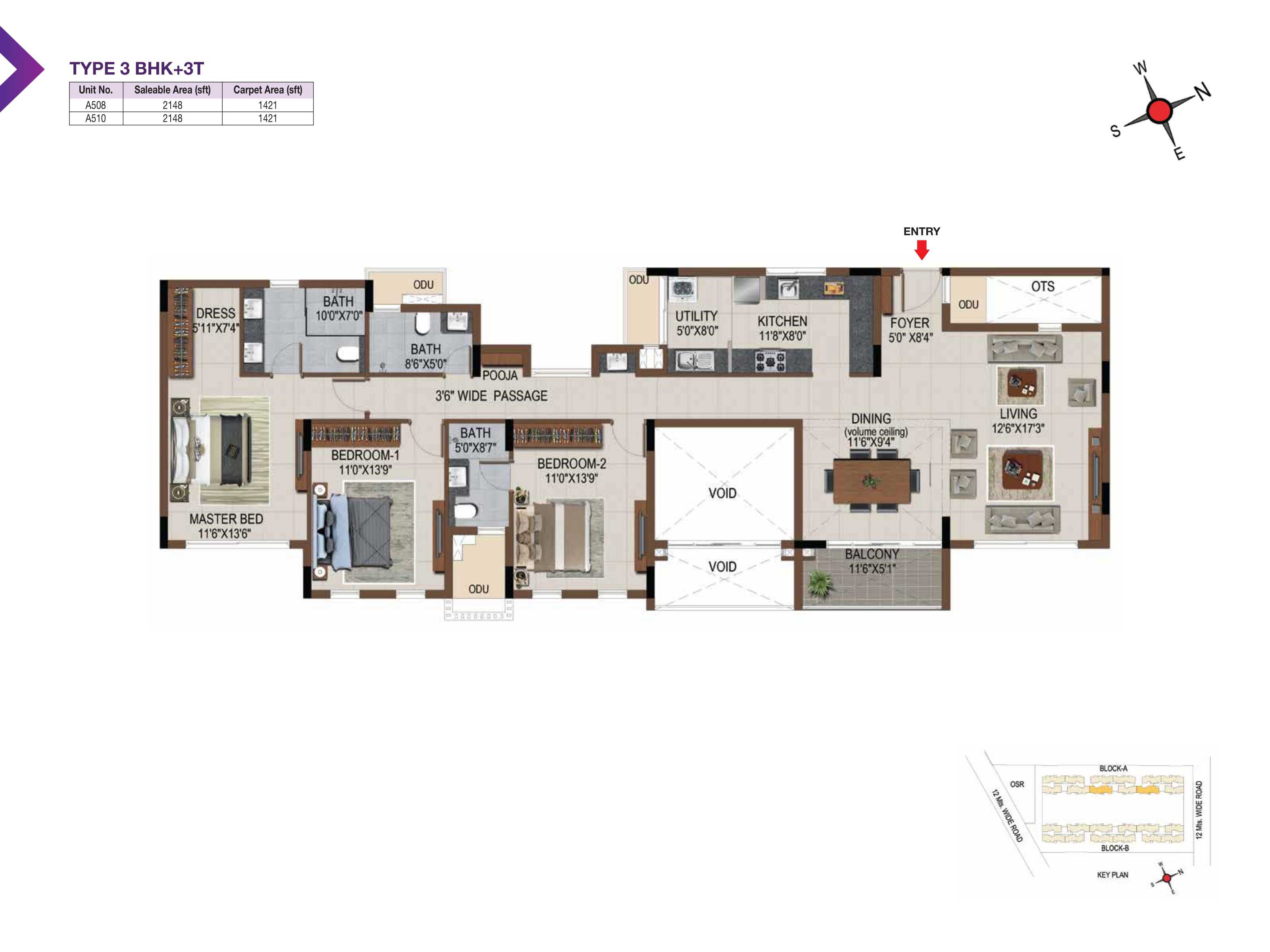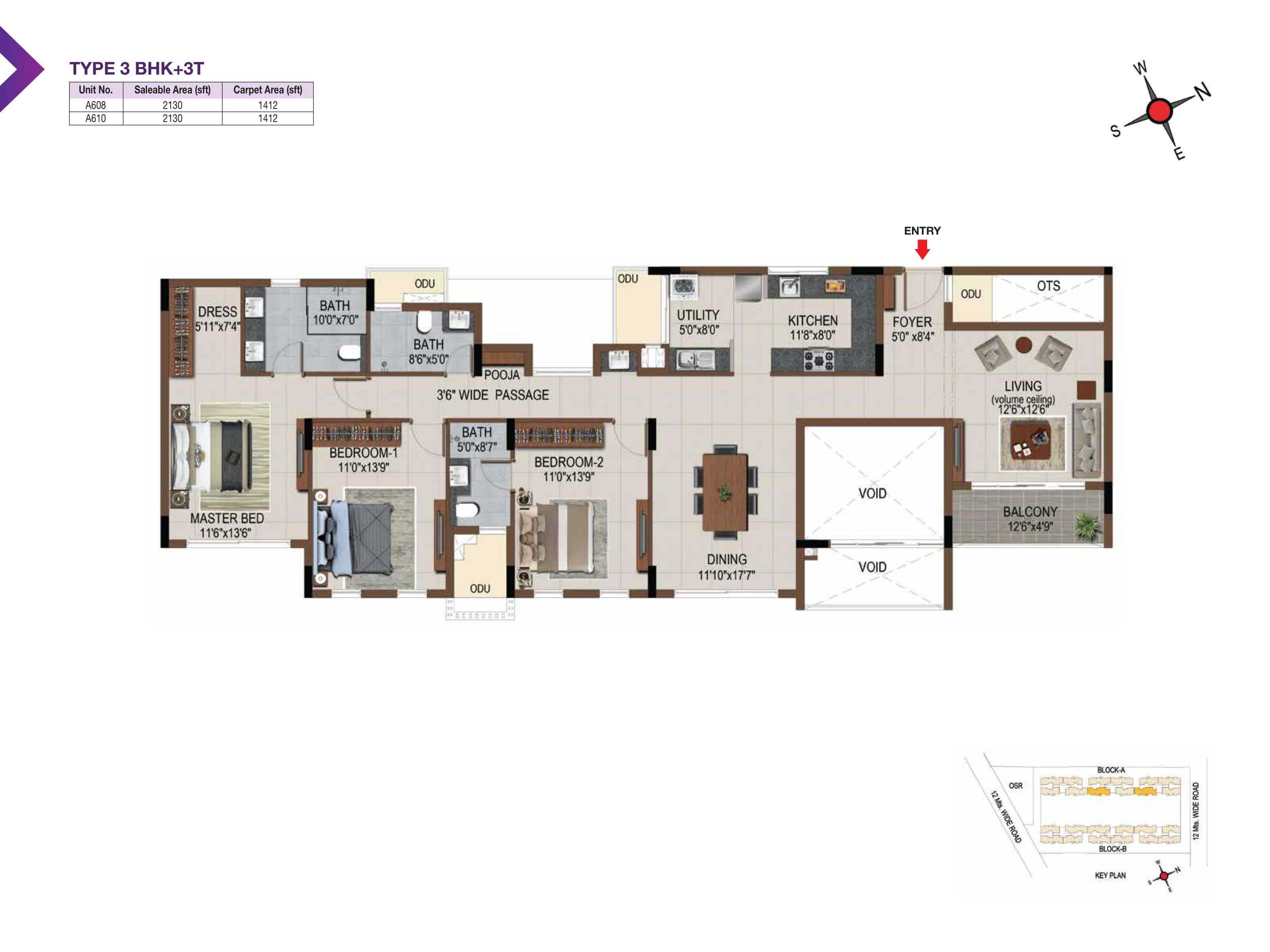 | 3 BHK | Double Height | 2130 Sqft | ₹6299/Sqft | Sold Out |