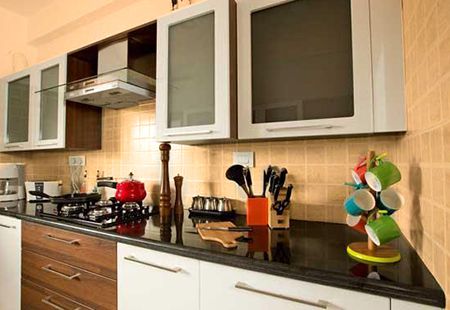 | Counter Top (At Kitchen & Hand-Wash) | 20 mm thick Polished black Granite slab @ 32″ height from FFL |