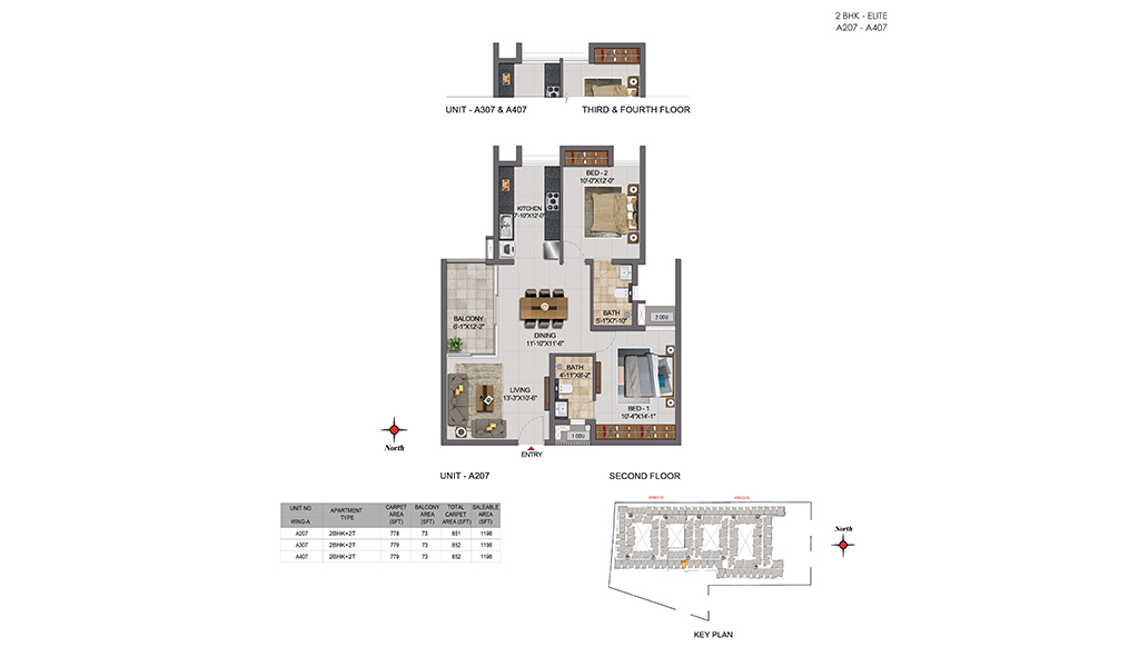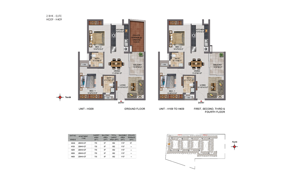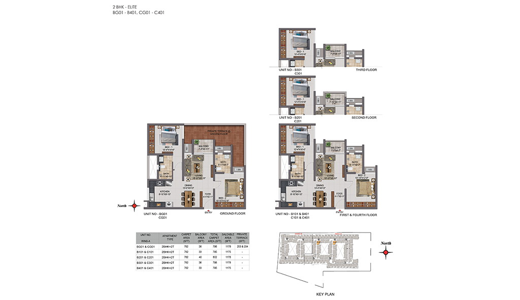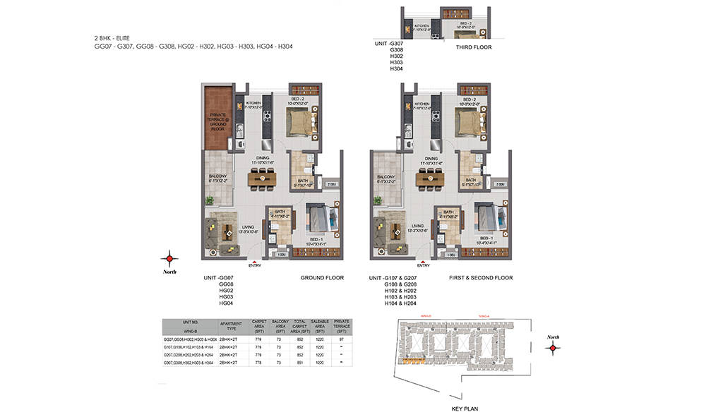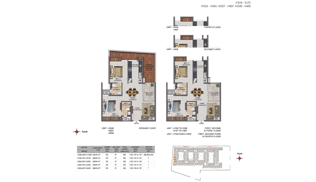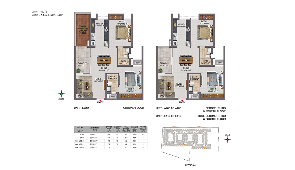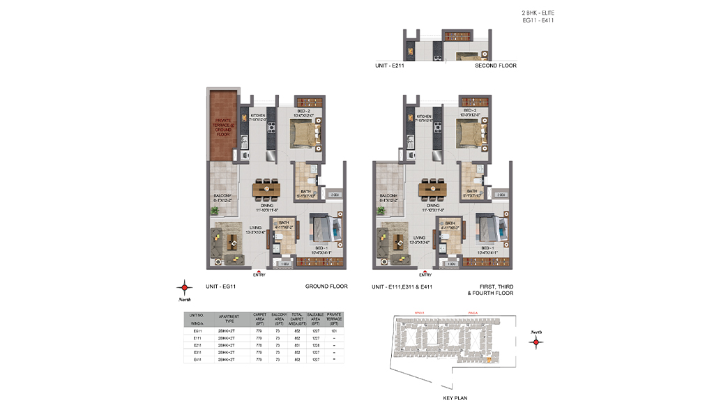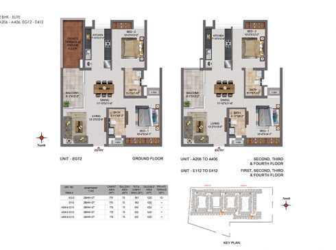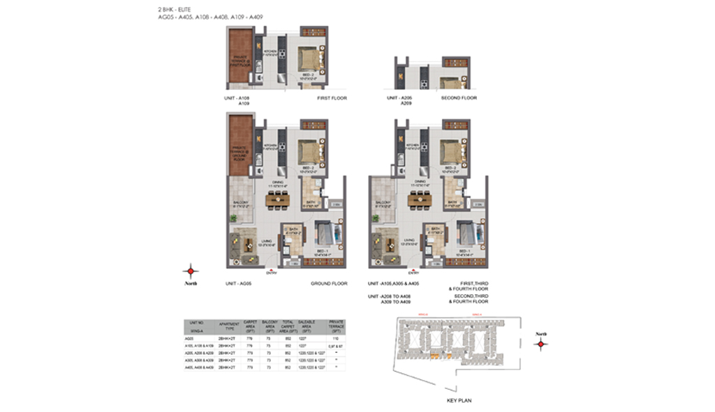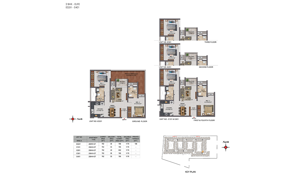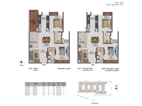 | 2 BHK | Elite | 1100 Sft - 1106 Sq ft | ₹5599/Sqft | Sold Out |