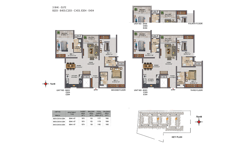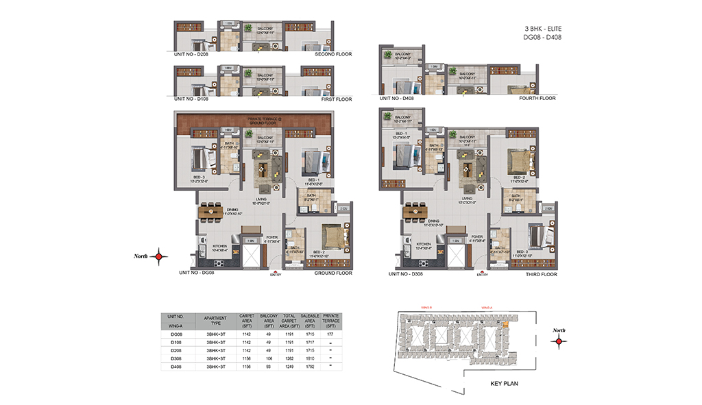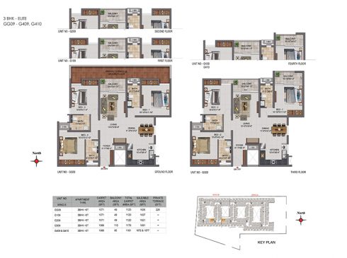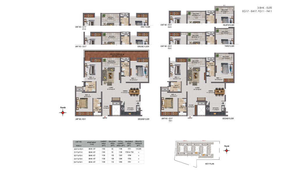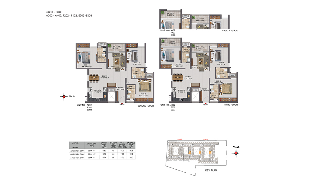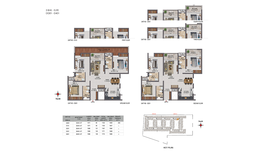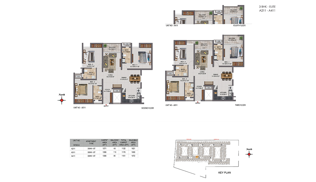 | 3 BHK | Elite | 1621 Sqft - 1729 Sqft | ₹5399/Sqft | Sold Out |