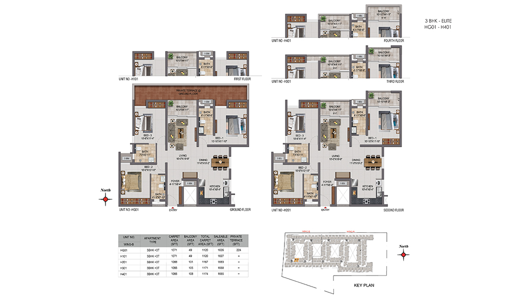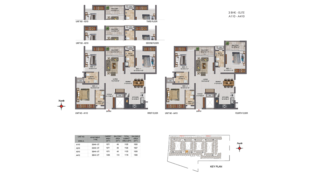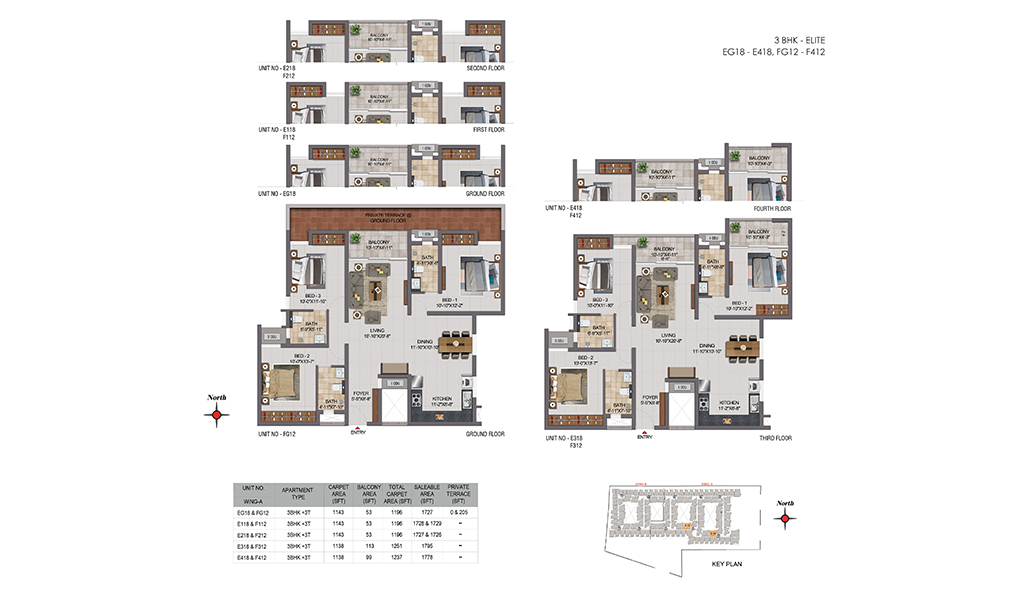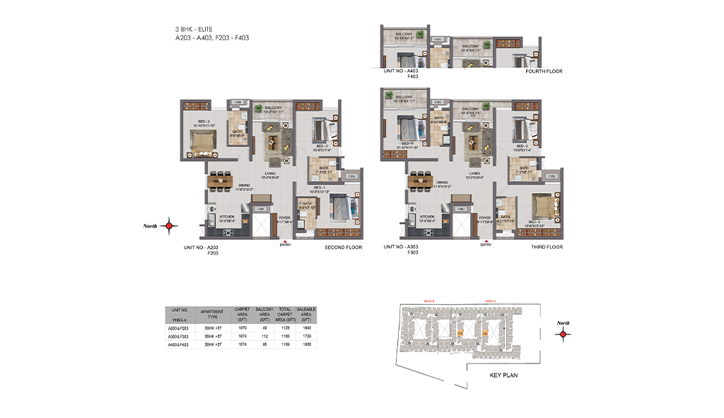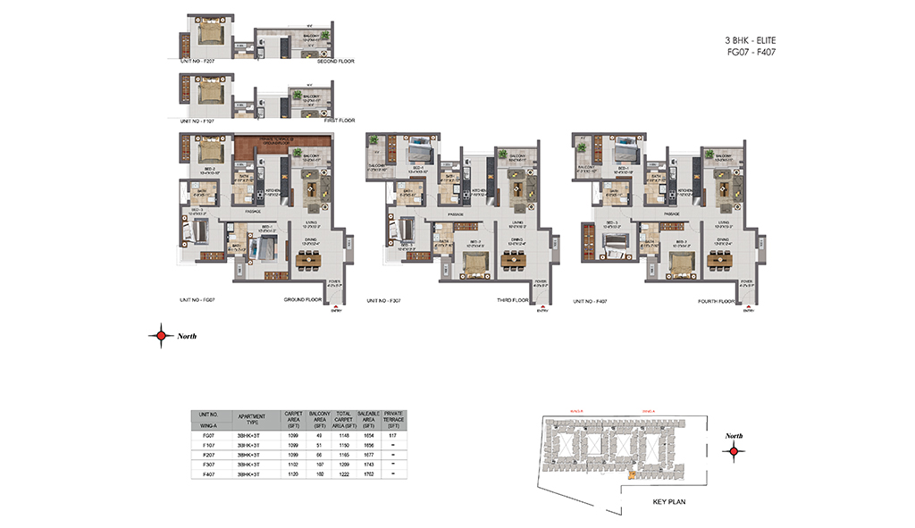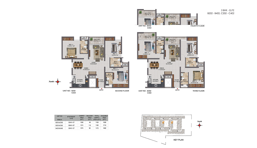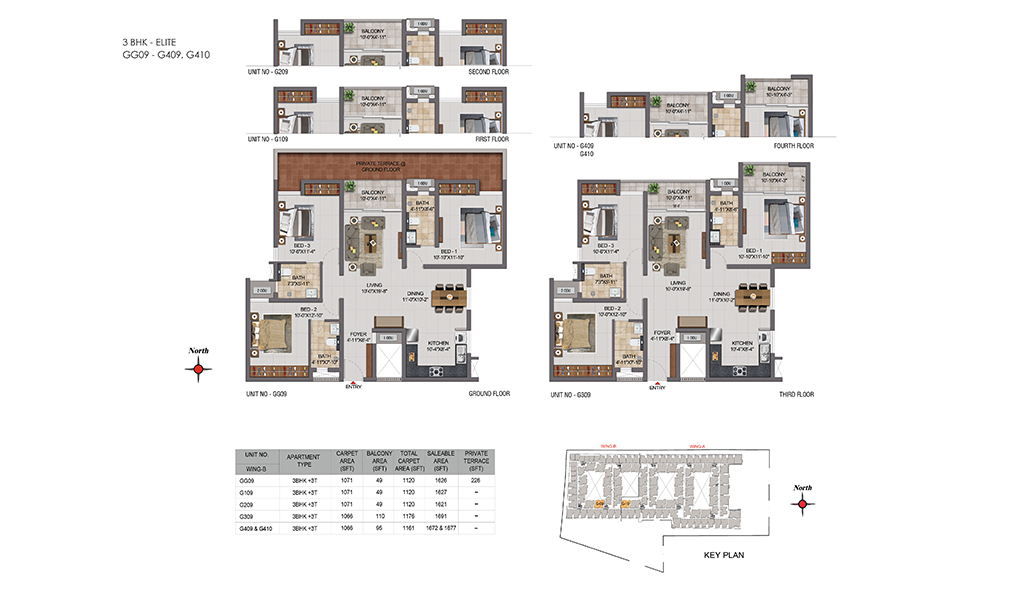 | 3 BHK | Elite | 1621 Sqft - 1729 Sqft | ₹5399/Sqft | Sold Out |