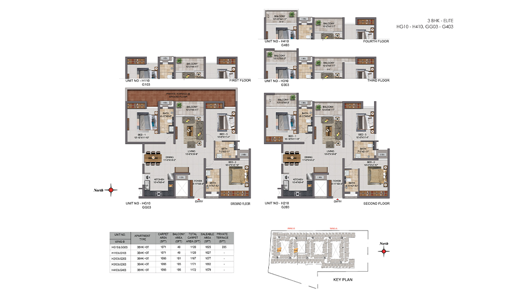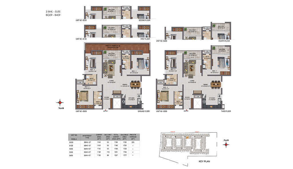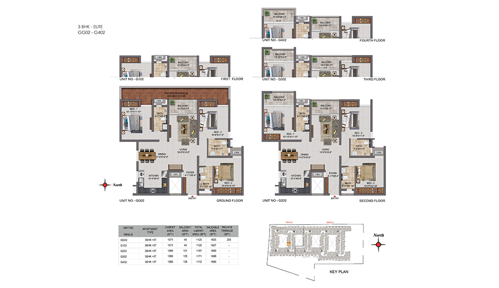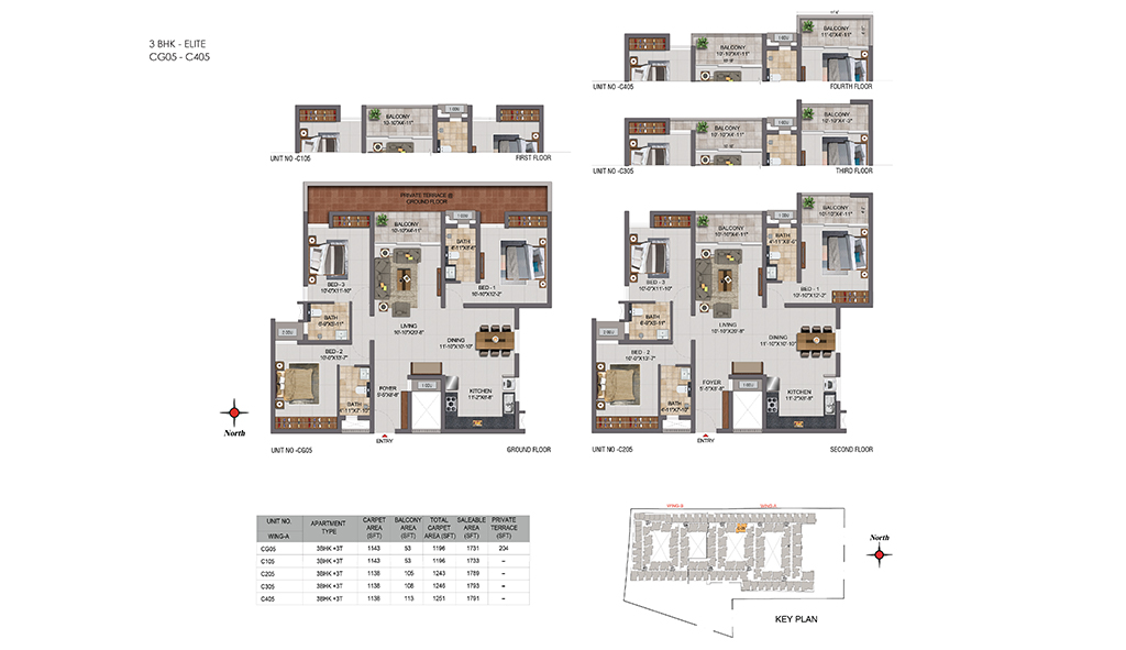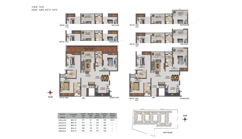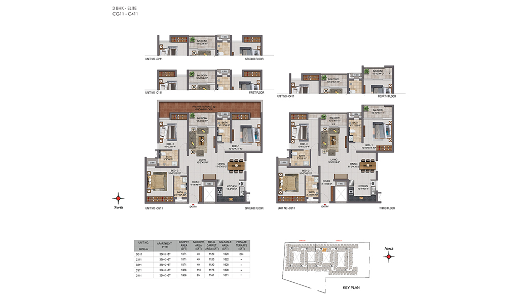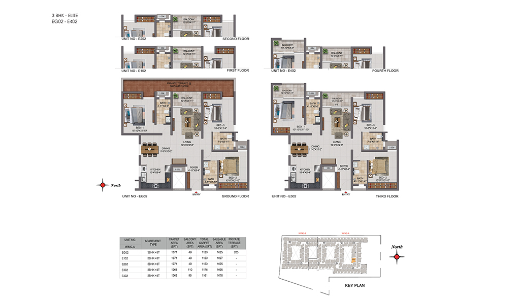 | 3 BHK | Elite | 1621 Sqft - 1729 Sqft | ₹5399/Sqft | Sold Out |