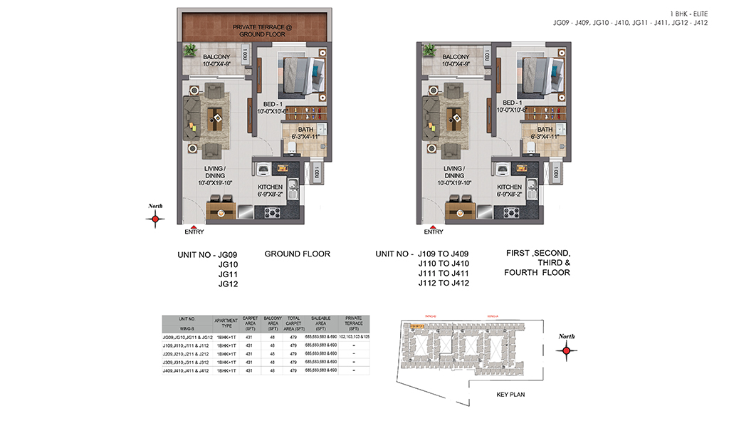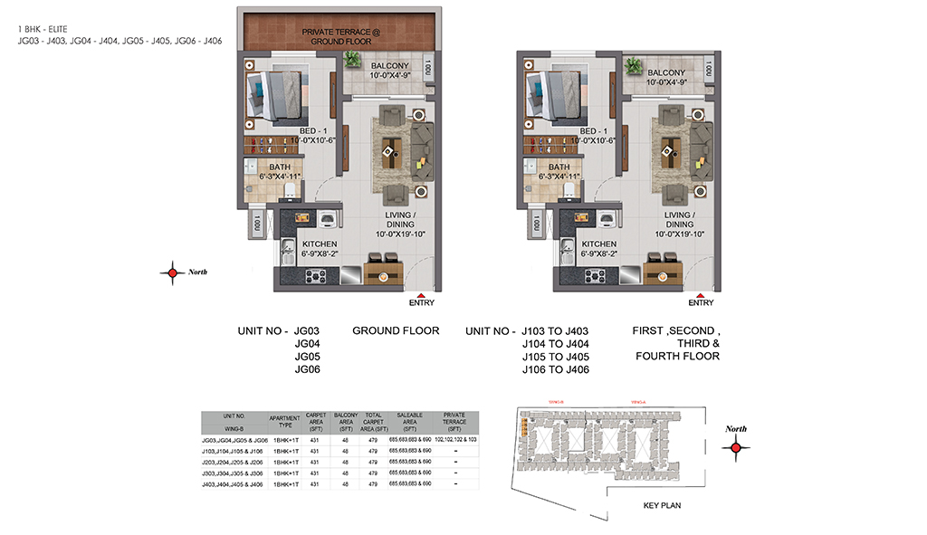 | 1 BHK | Elite | 683 Sft - 686 sft | ₹4999/Sqft | Sold Out |