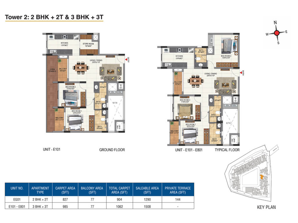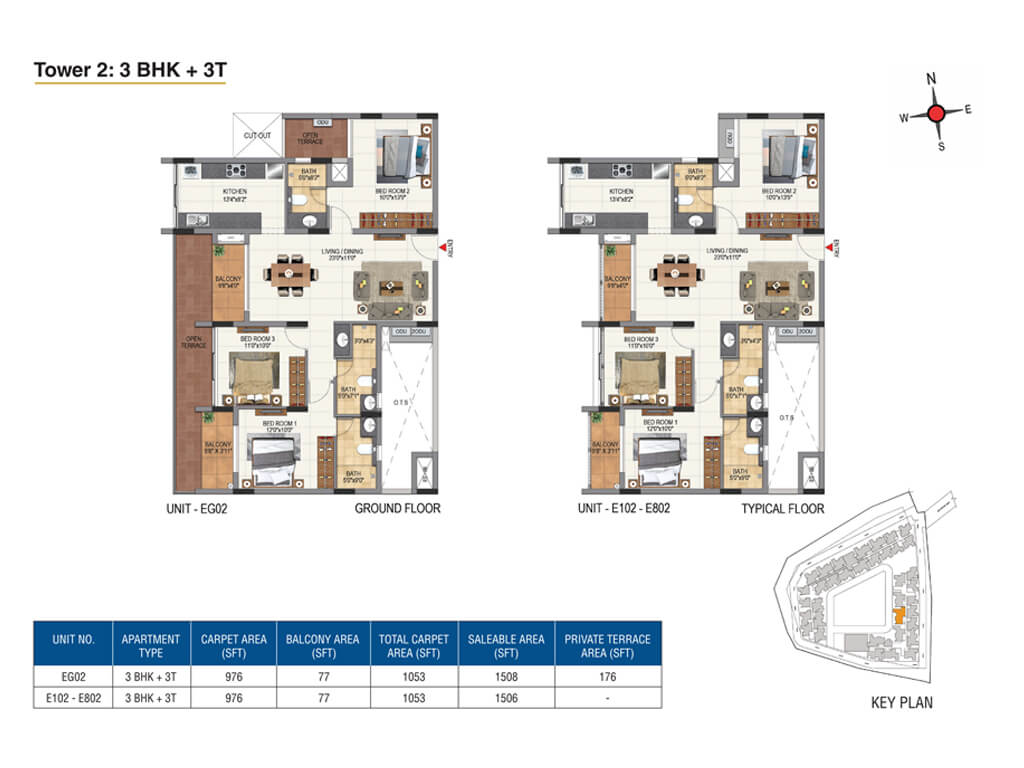 - No South or West facing 3BHKs