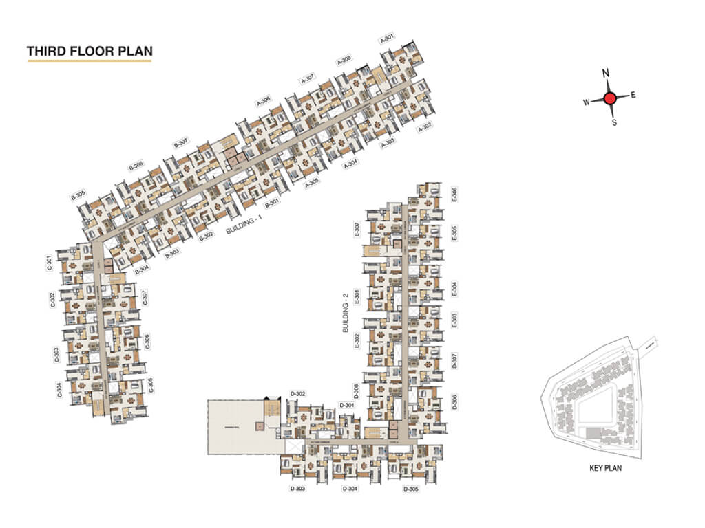 - Central podium with ample green and lots of amenities surrounded
