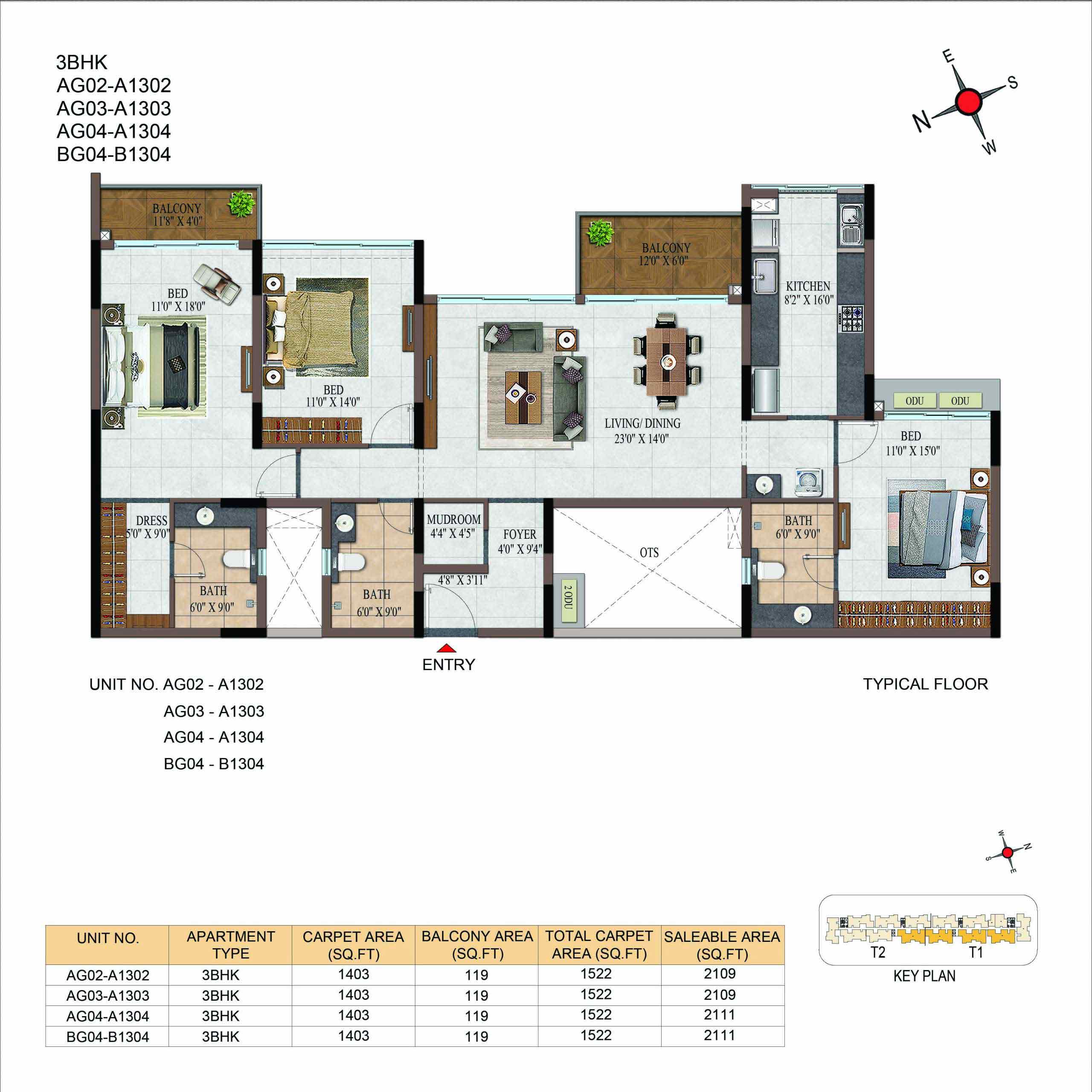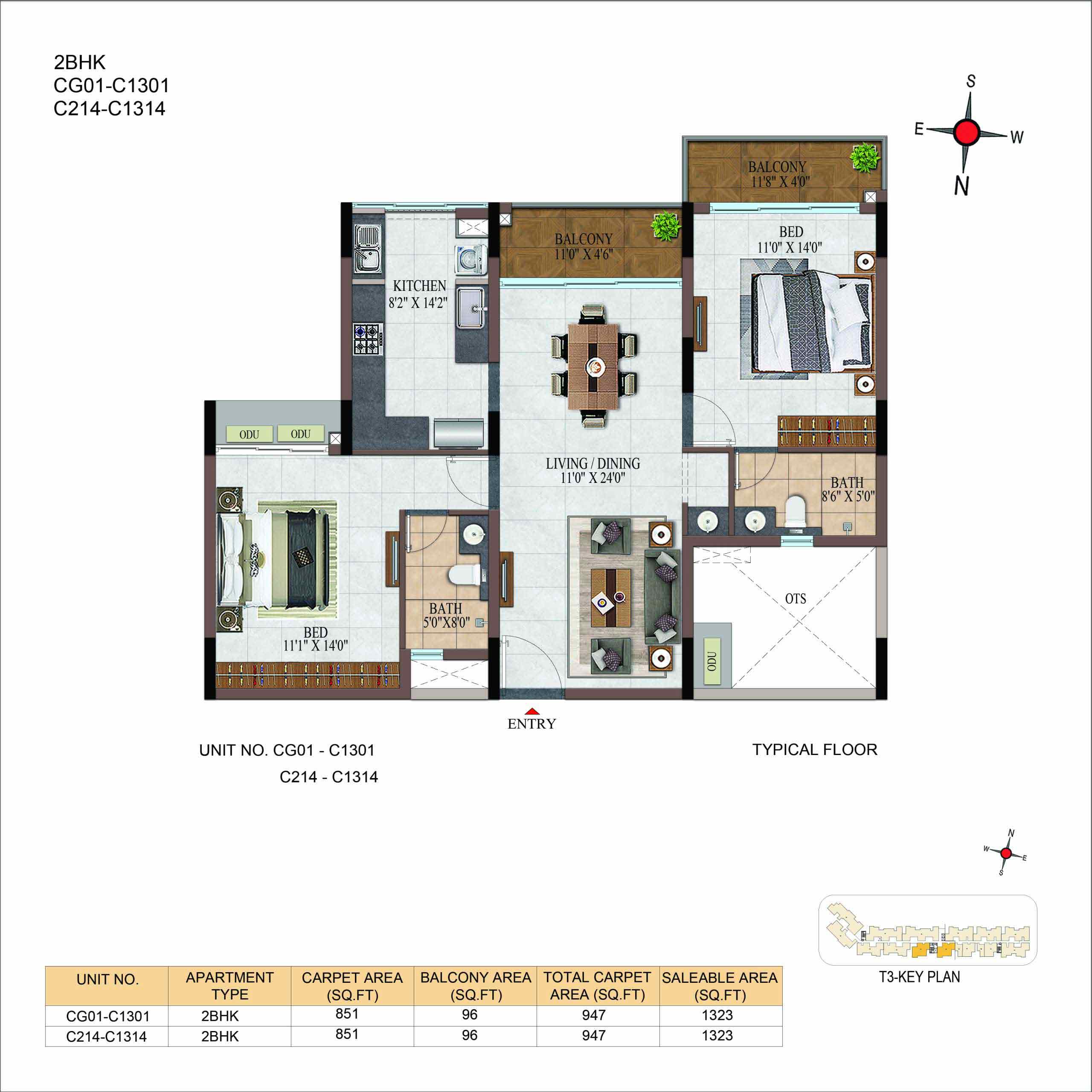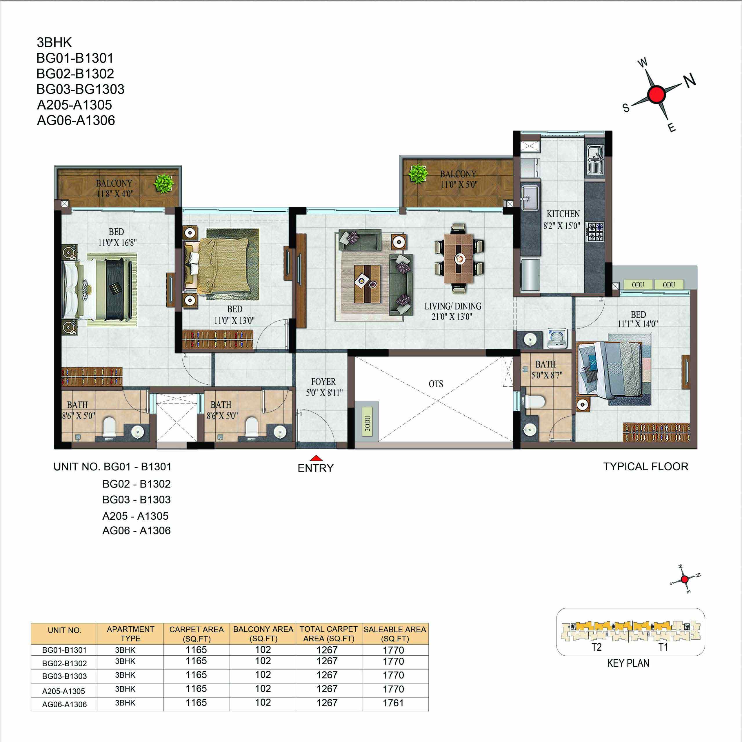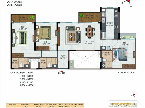 | BHK | Unit Type | Built-Up Area | Price Per Sq. Ft. | Price Range |