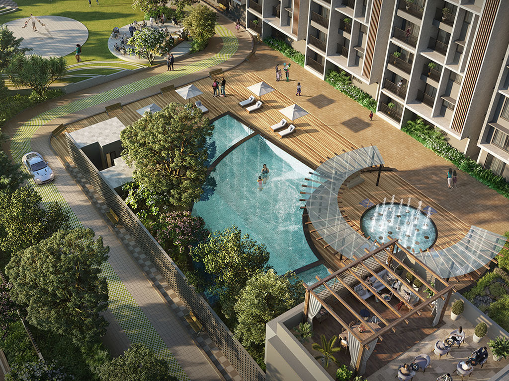 • 77% of area solely dedicated for landscape sprawled with amenities and multiple entertainments for residents of all age groups.