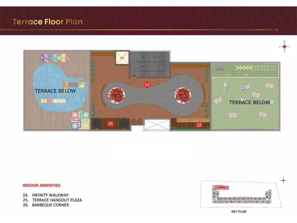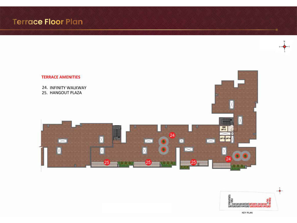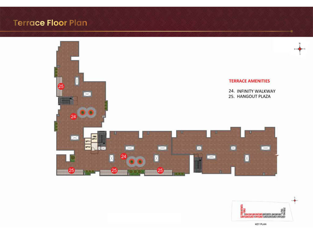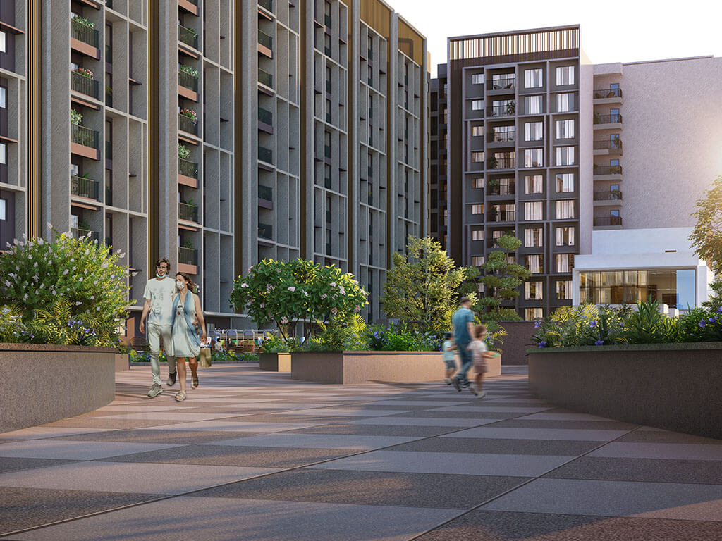 • Infinity walkway – Apartment terrace is facilitated with infinity walk-way and shaded seating to spend evenings.