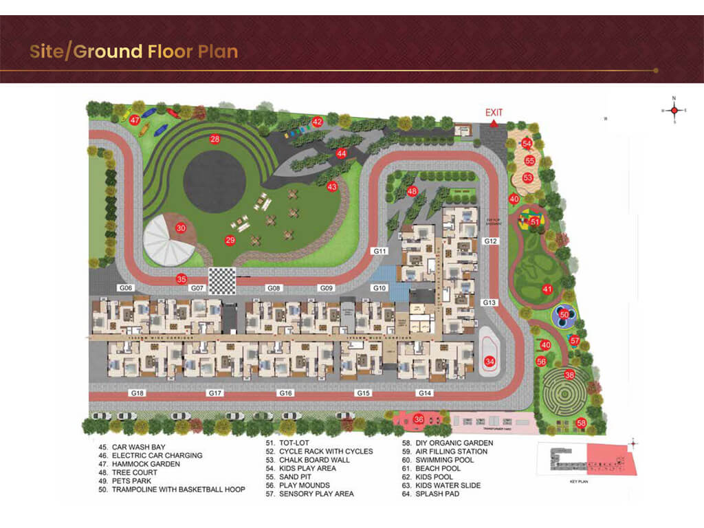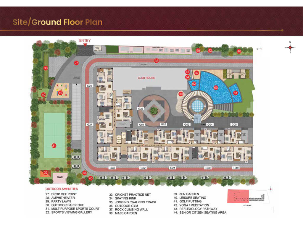 • 60+ Amenities of outdoor and indoor recreational facilities are sprawled across the project enhancing the social environment and liveliness of the community.