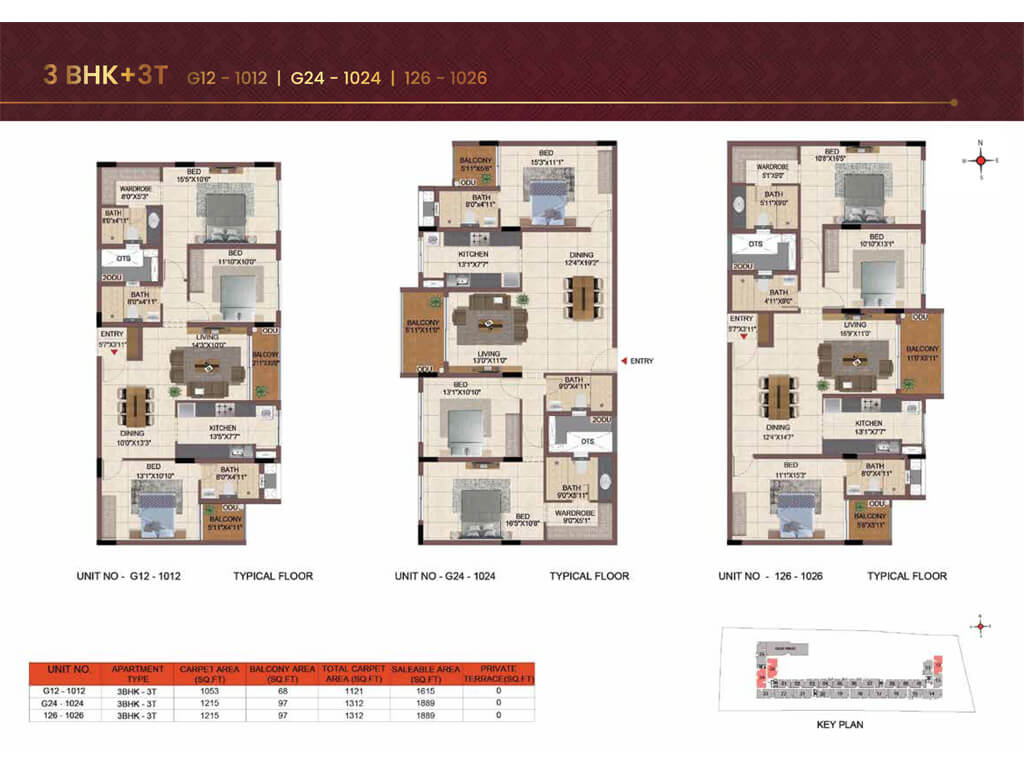 • Spacious Planning of homes with bigger sized bedrooms, toilets of minimum size 8’x5’ and utility area.