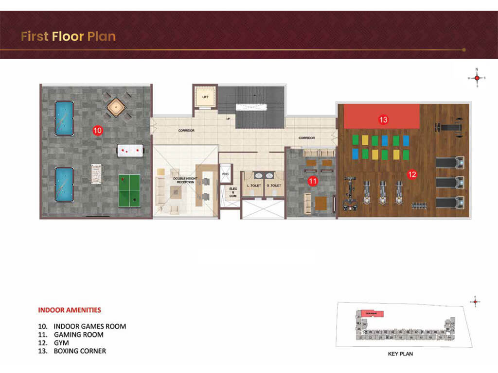 • Exclusive gym with top notch features like cross fit corner, boxing corner and Aerobic floor take work out to next level.