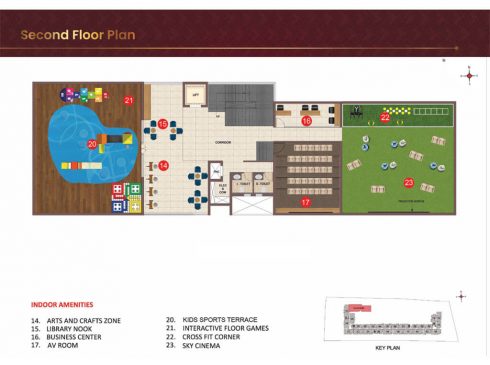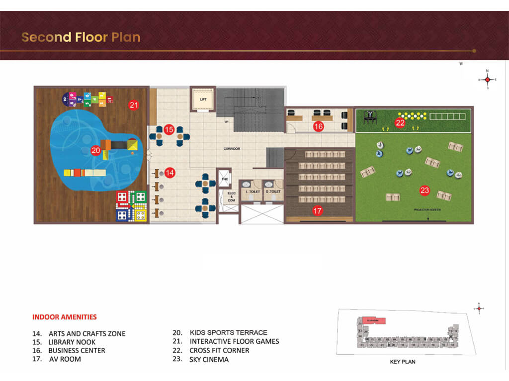 • Club Indoor amenities such as multipurpose hall, AV room, Indoor games like table tennis, foosball, Board games, and Kids play area with daycare gives added luxury in the community.