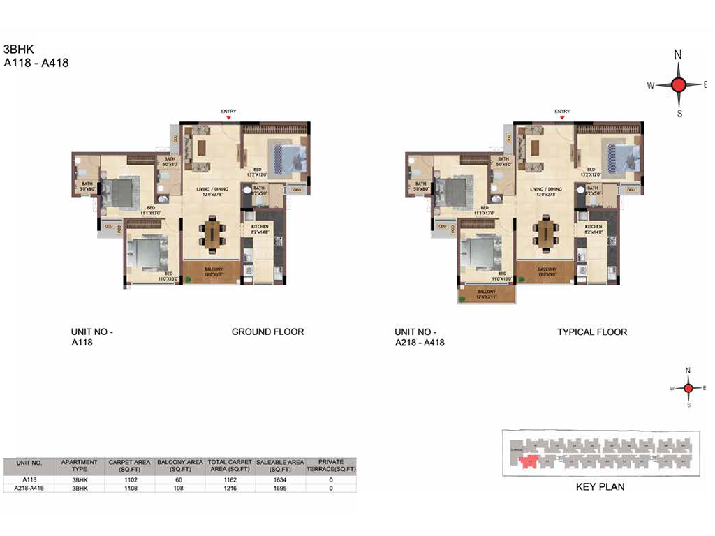 | BHK | Unit Type | Built-Up Area | Price Per Sq. Ft. | Price Range |