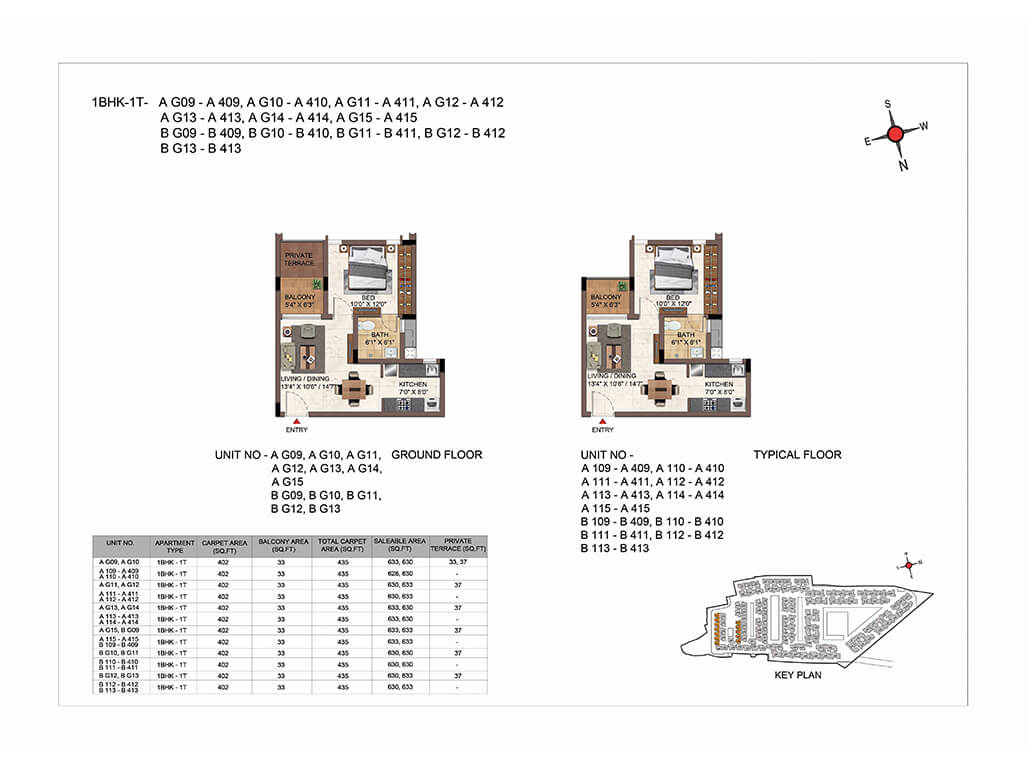 | 1 BHK | Compact | 630 Sq.ft - 633 Sq.ft | ₹5875 /Sqft* | ₹48 Lakhs onwards*(All Inclusive) | |