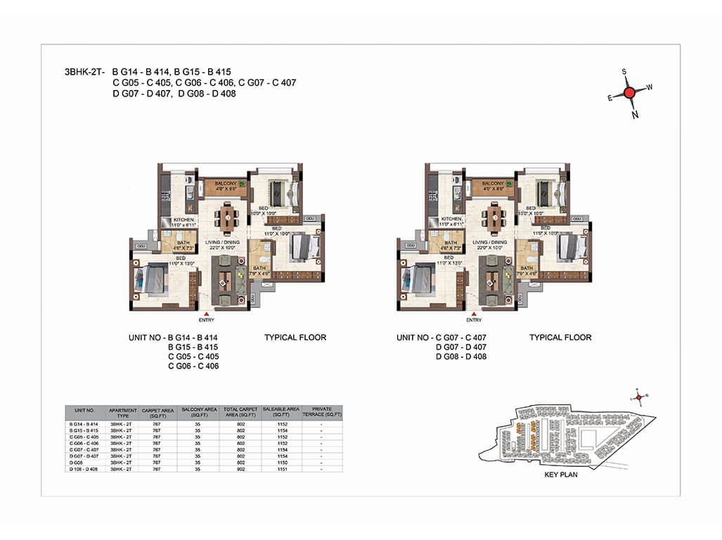 | BHK | Unit Type | Land Area | Built-Up Area | Price Per Sq. Ft. | Price Range |