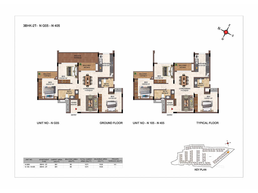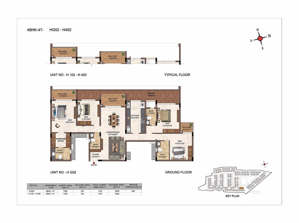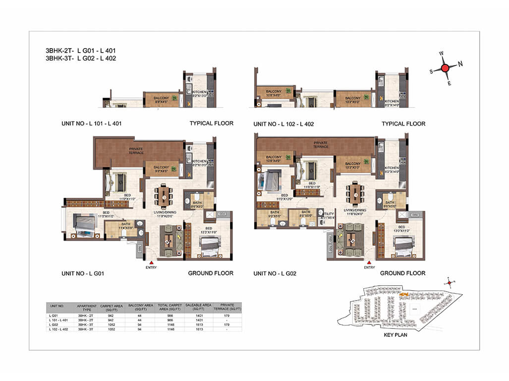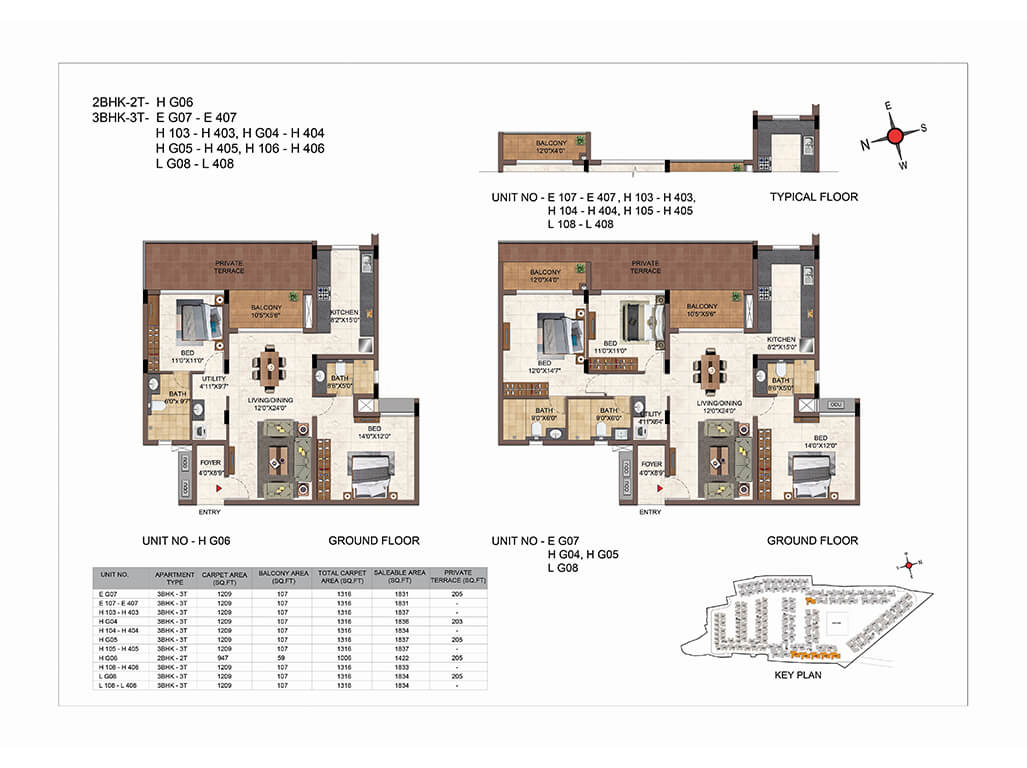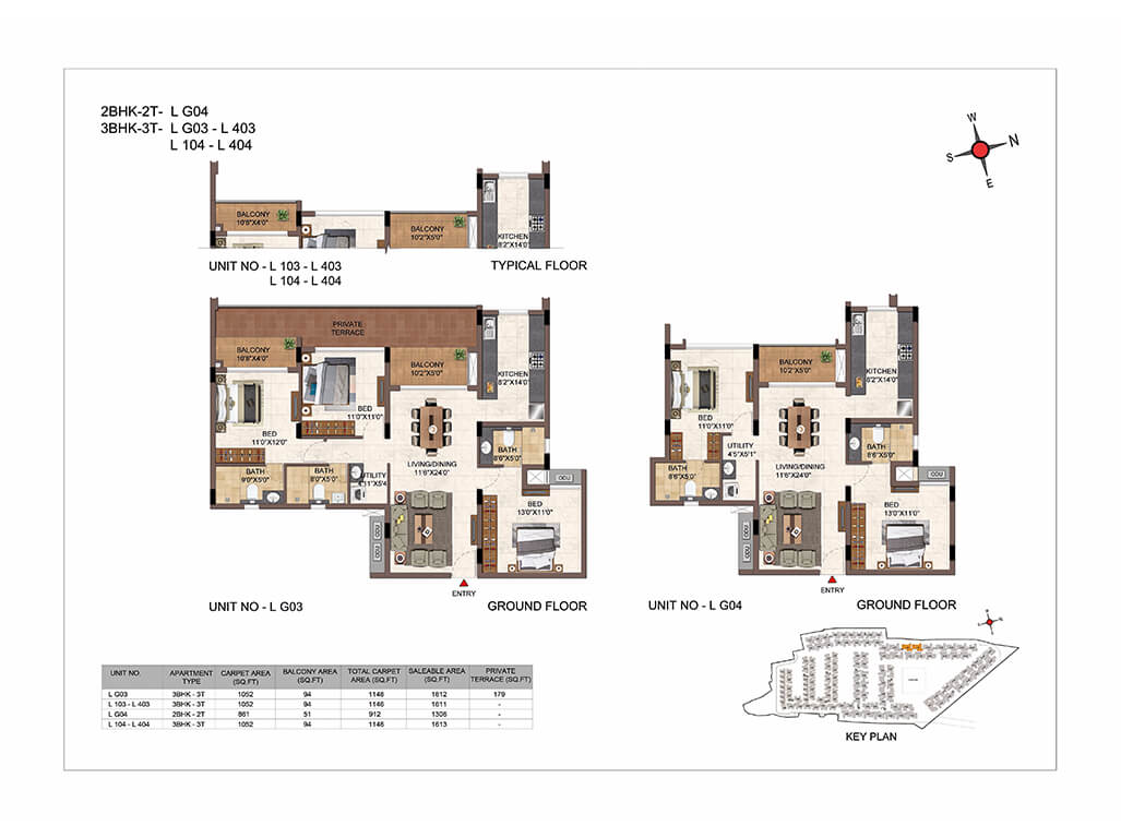 | 3BHK -3T | Elite | 1609 Sq.ft - 2038 Sq.ft | - | Sold out | |