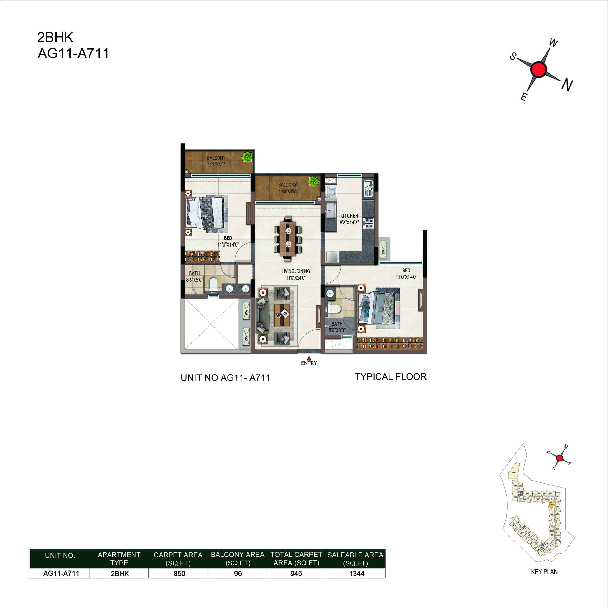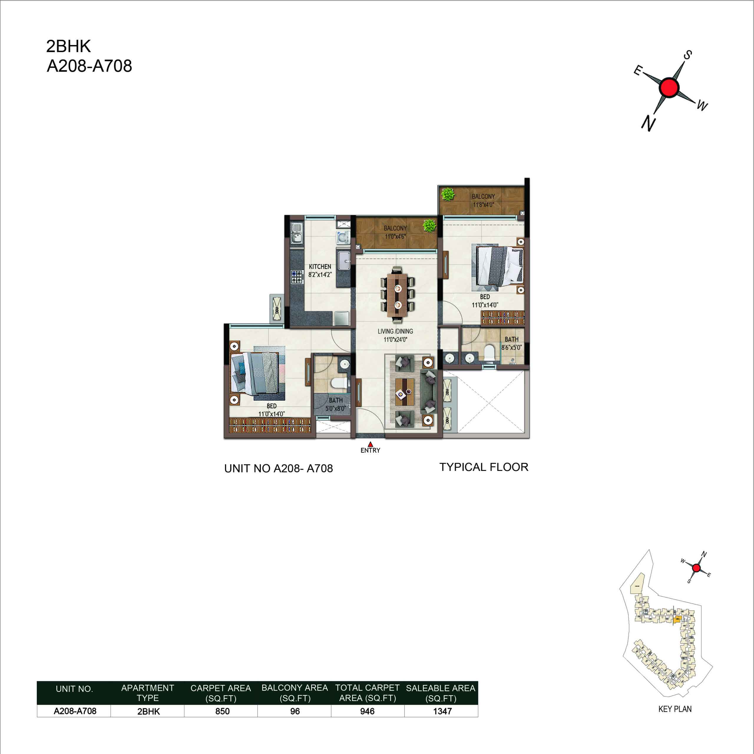 | BHK | Unit Type | Built-Up Area | Price Per Sq. Ft. | Price Range |