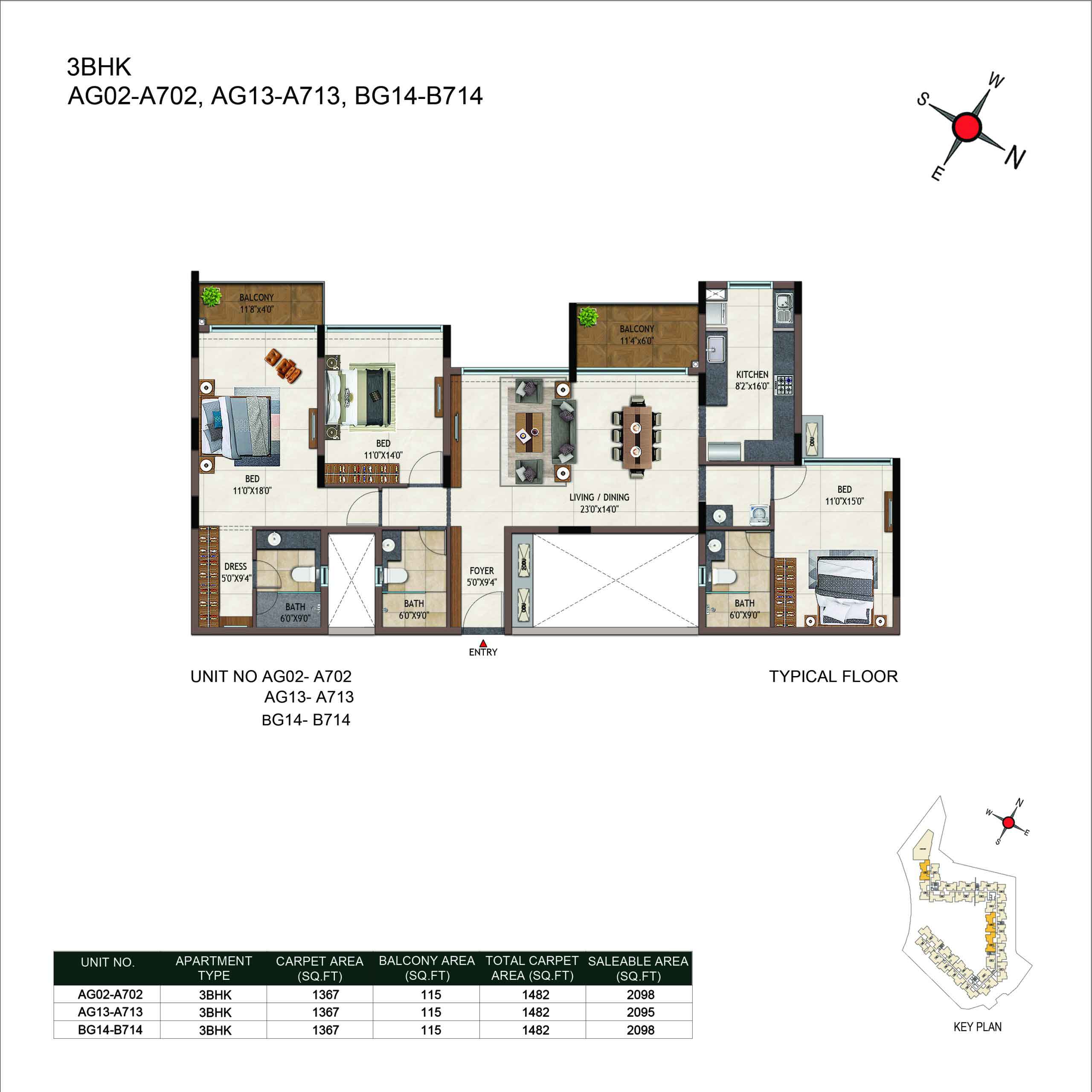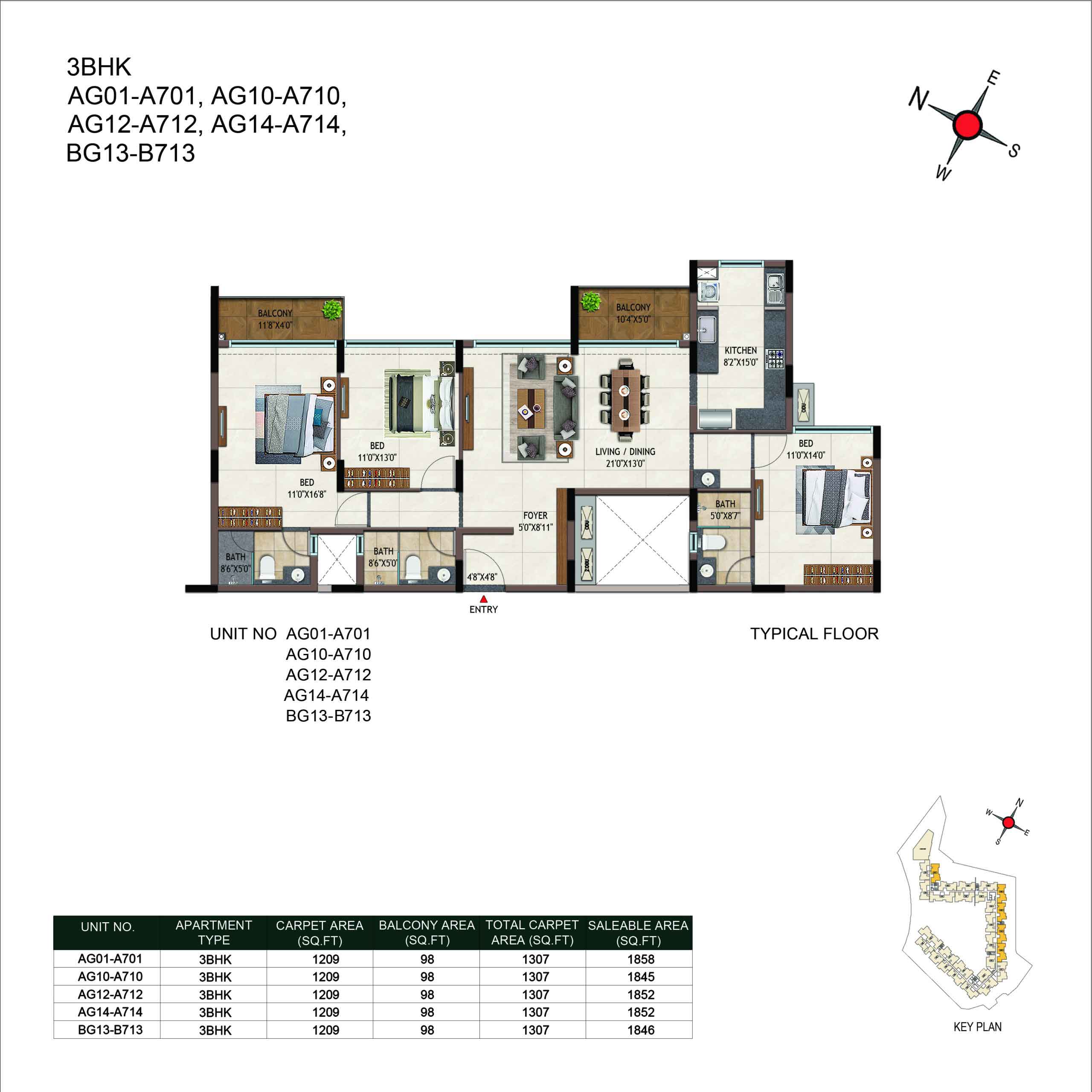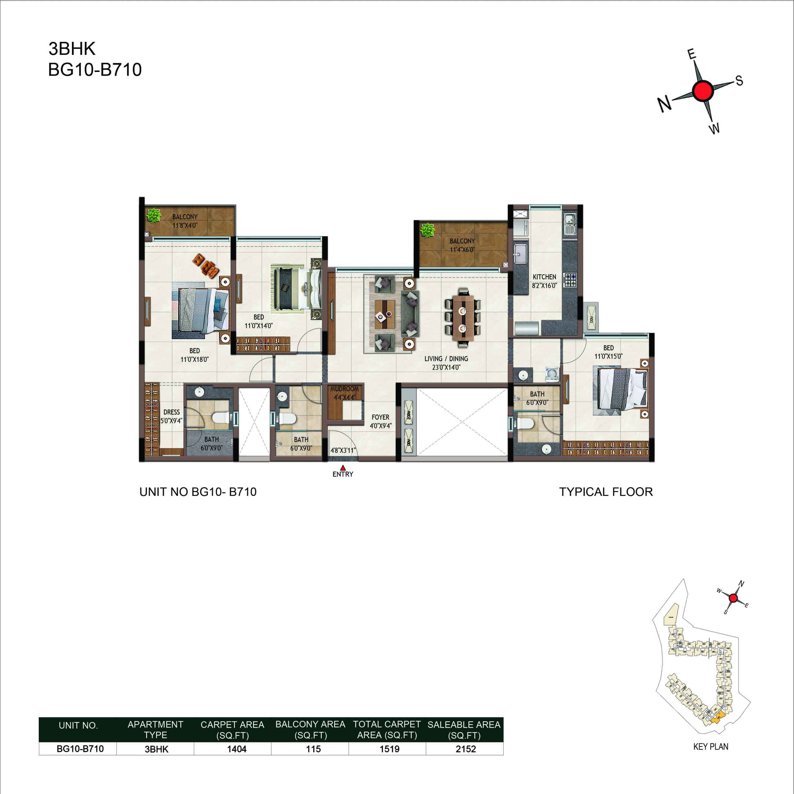 | 3 BHK | Elite | 1852 Sqft - 2152 Sqft | Rs 7649 / Sqft | Rs 1.49 Cr to 1.70Cr |