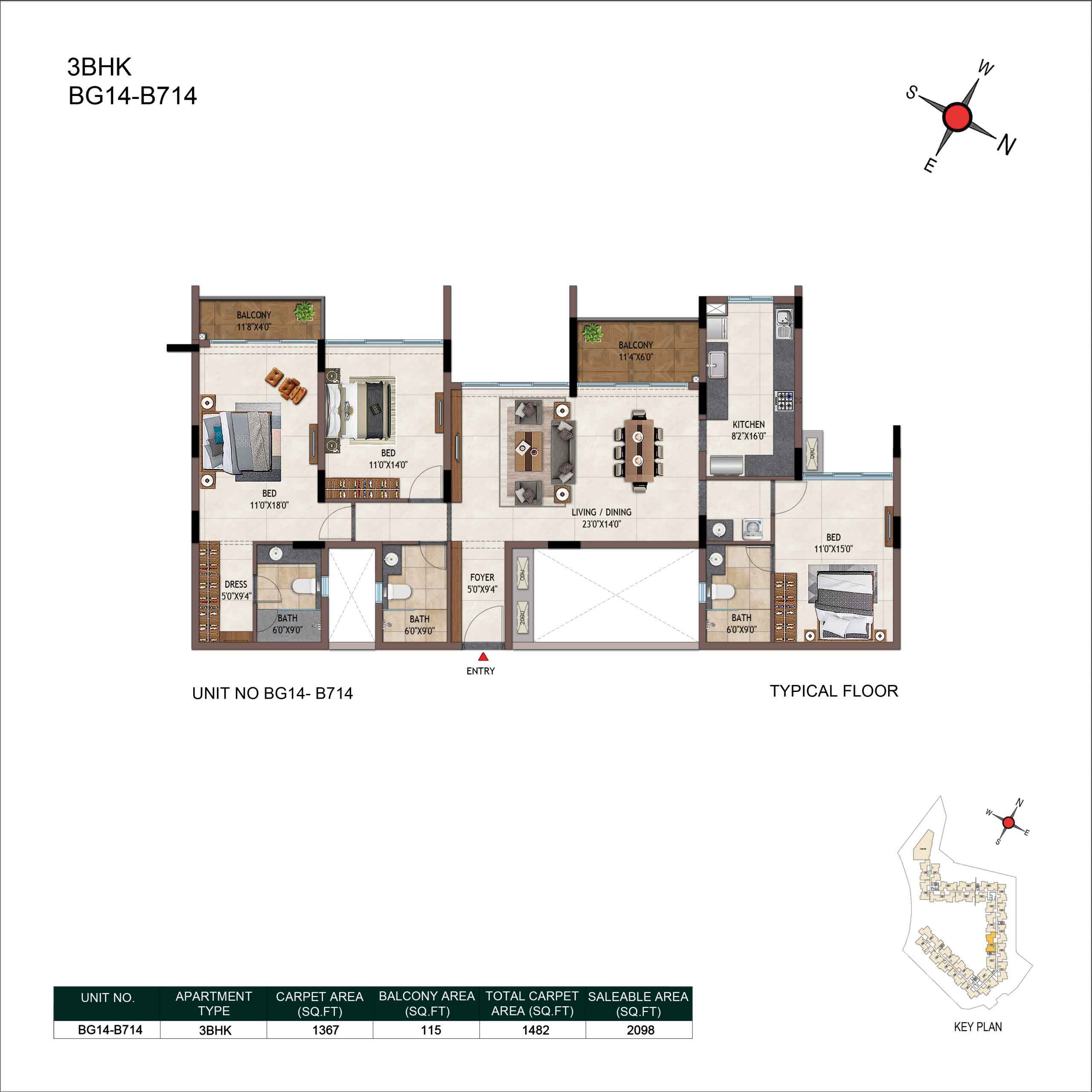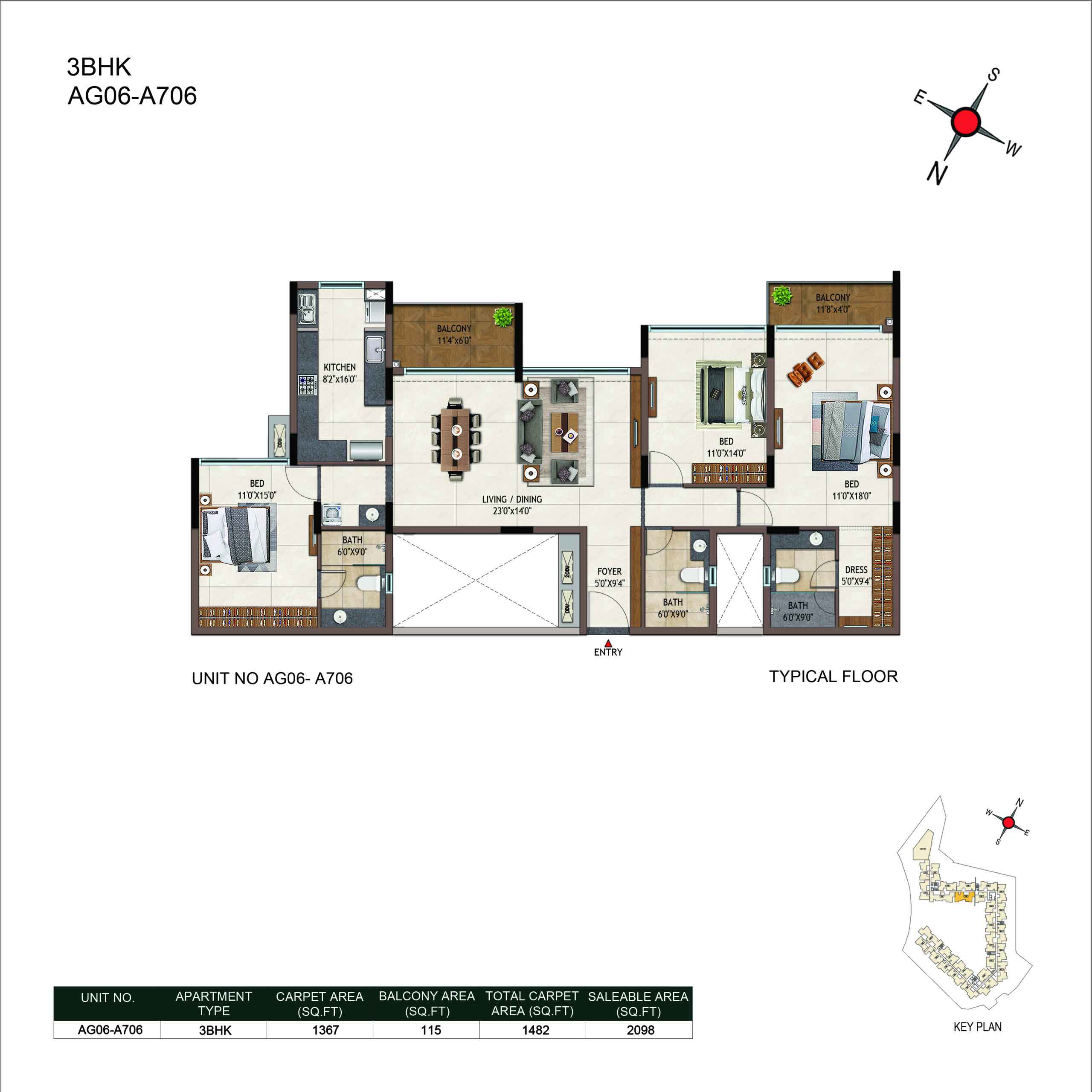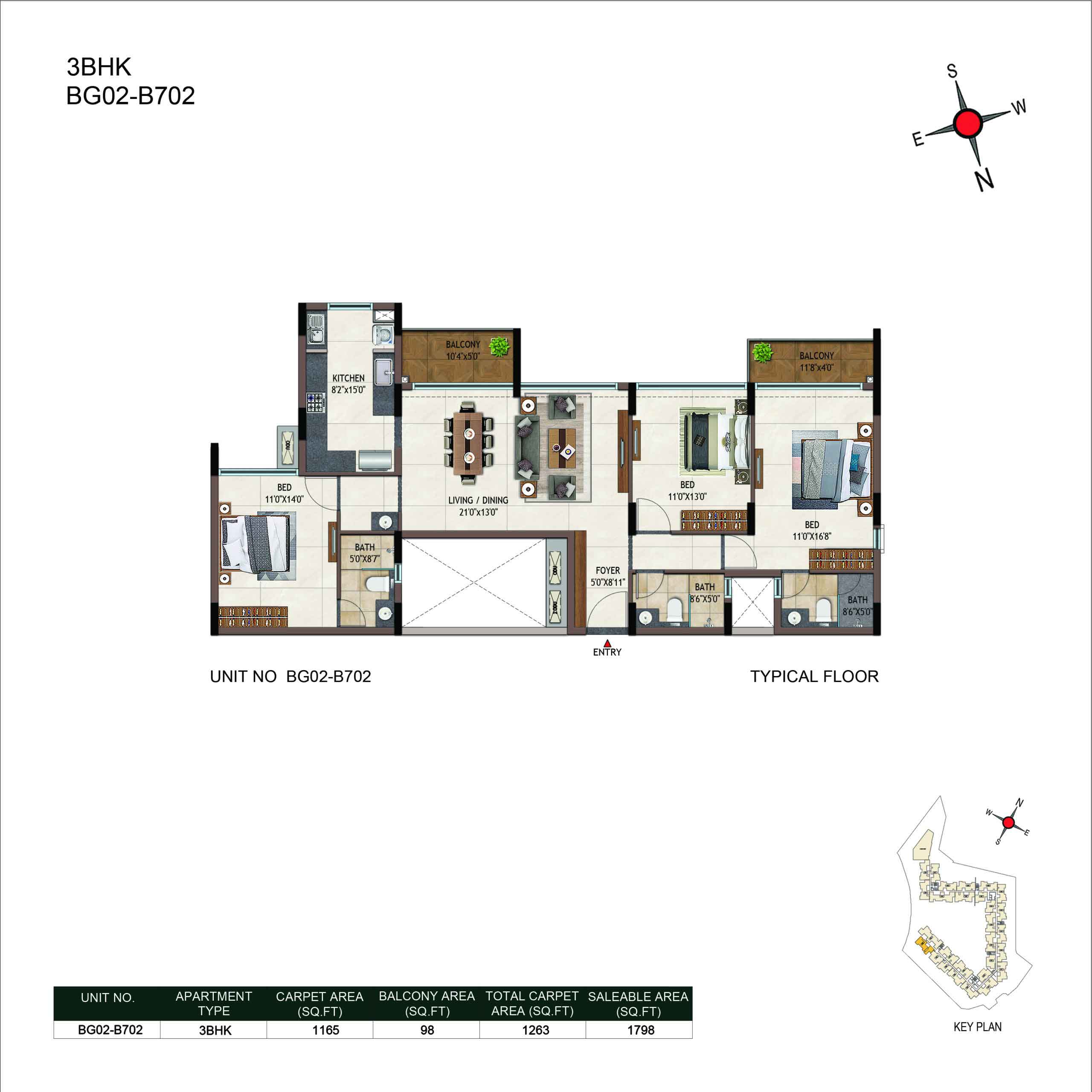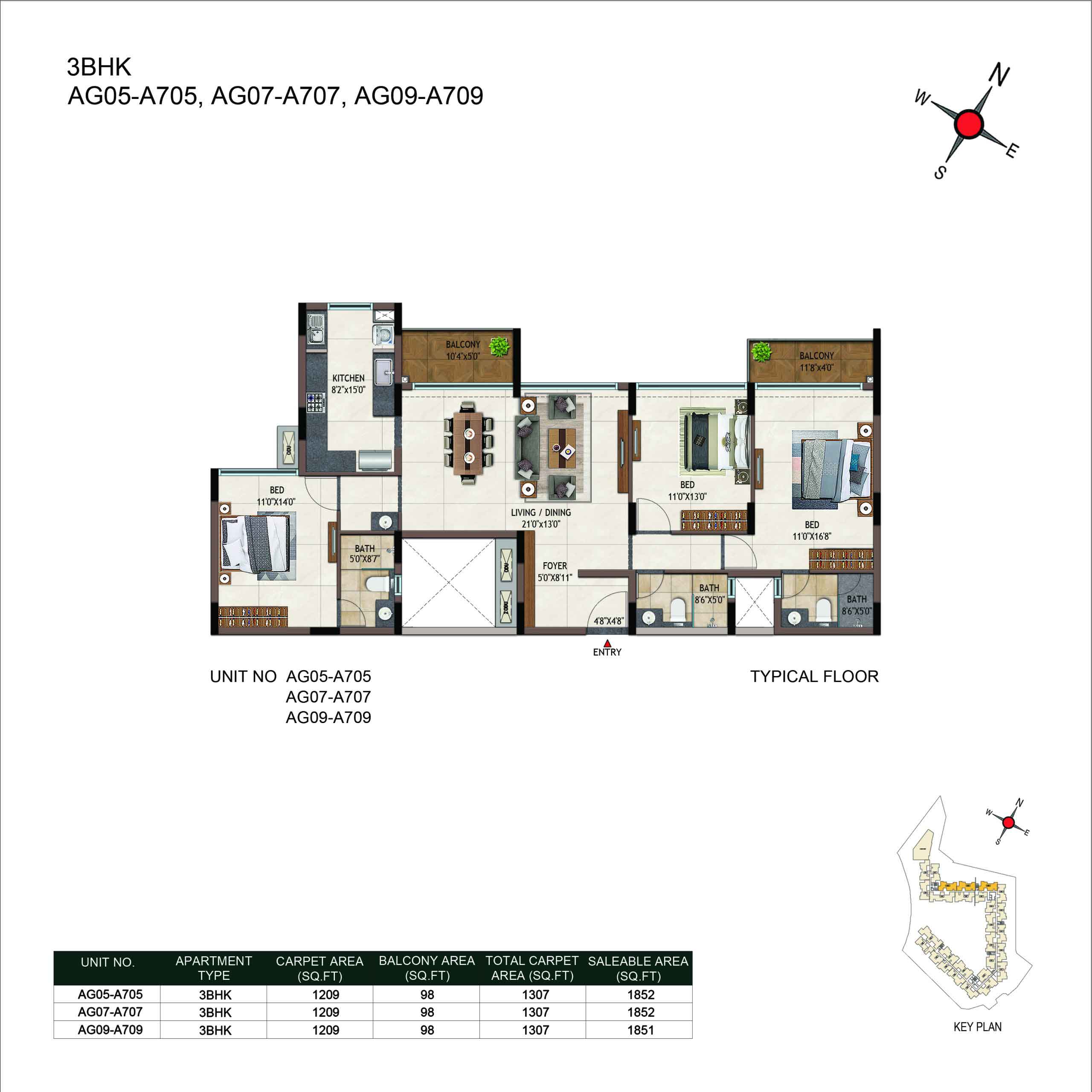 | 3 BHK | Elite | 1852 Sqft - 2152 Sqft | Rs 7649 / Sqft | Rs 1.49 Cr to 1.70Cr |
