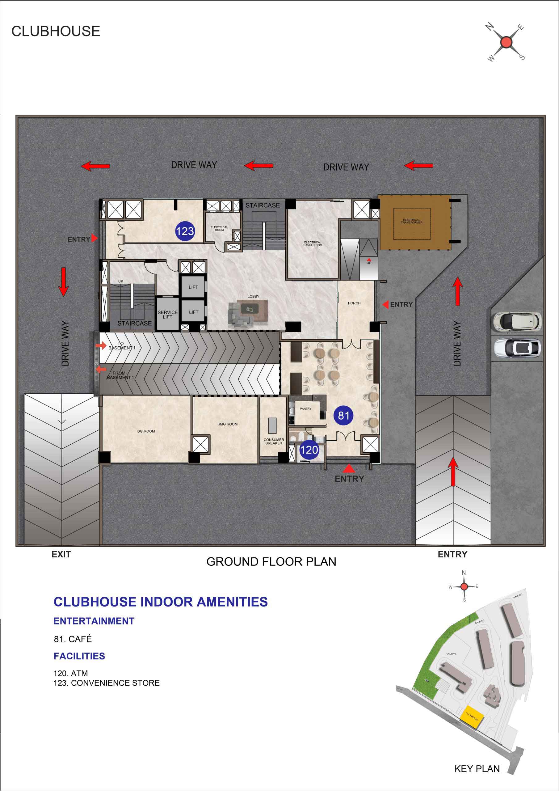 5. Safety : CCTV surveillance cameras will be provided all-round the building at pivotal Locations in ground level