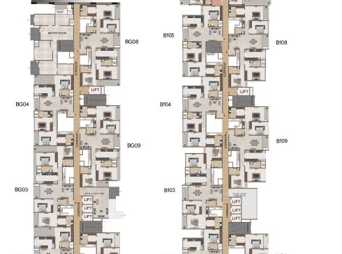 1. Lift : Elevators of 13/20 passenger automatic lift will be provided with MS finish.