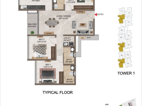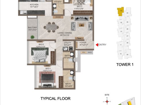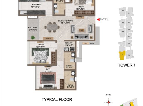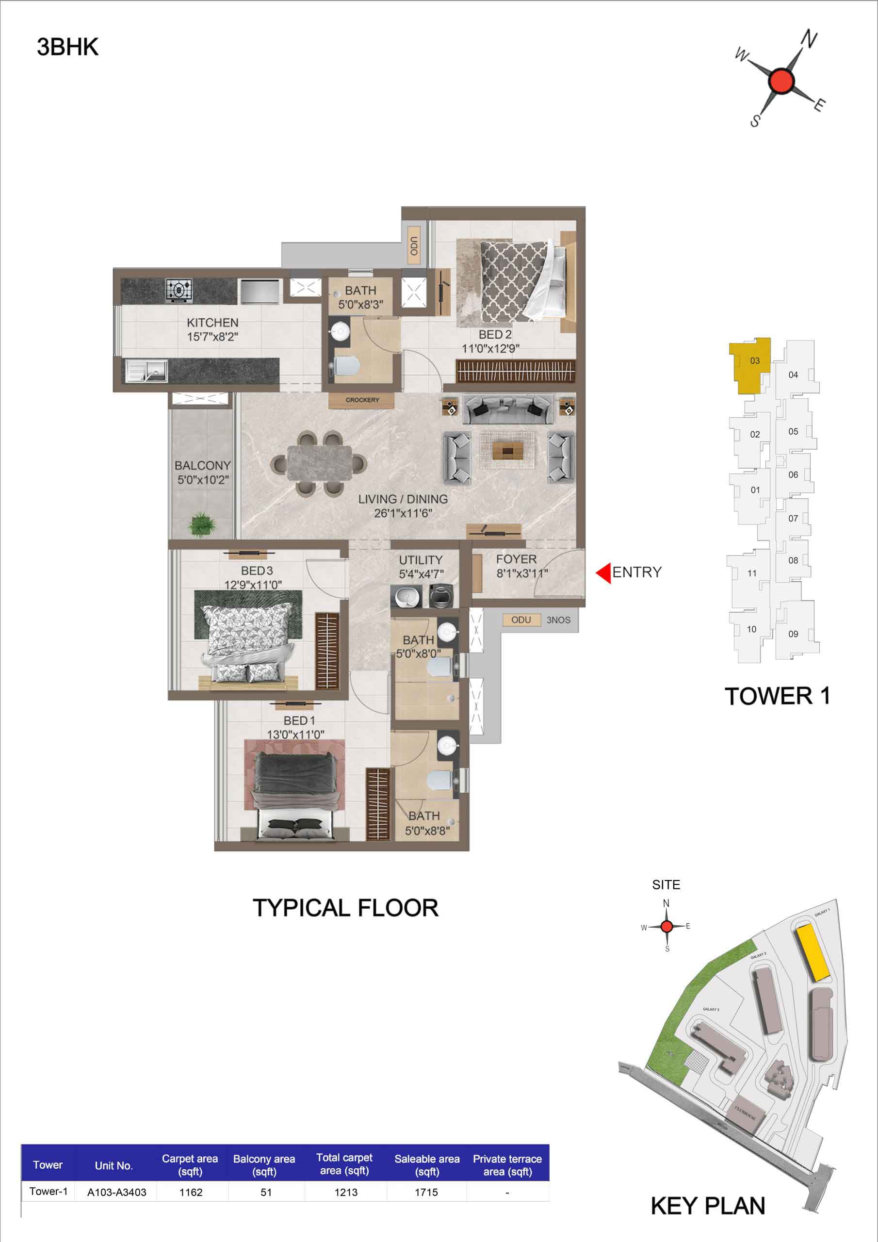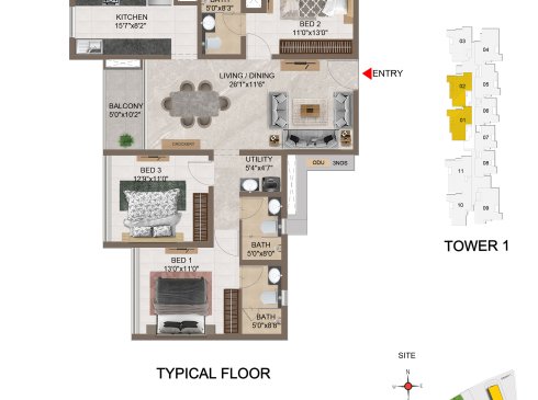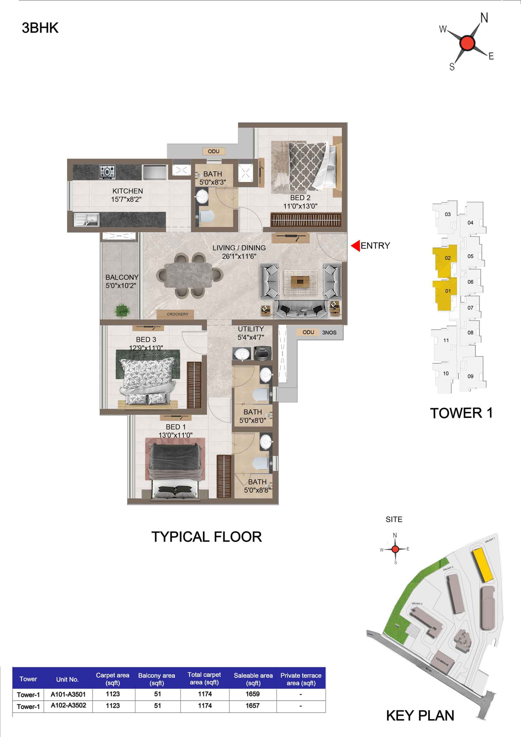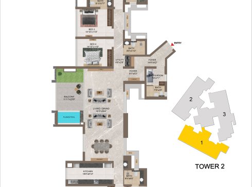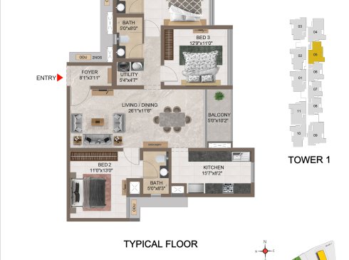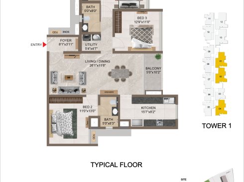 | 3 BHK | Apartment | 1659 Sqft to 1949 Sft | ₹ 7349/ Sqft | ₹ 1.35 Cr to 1.54 Cr |