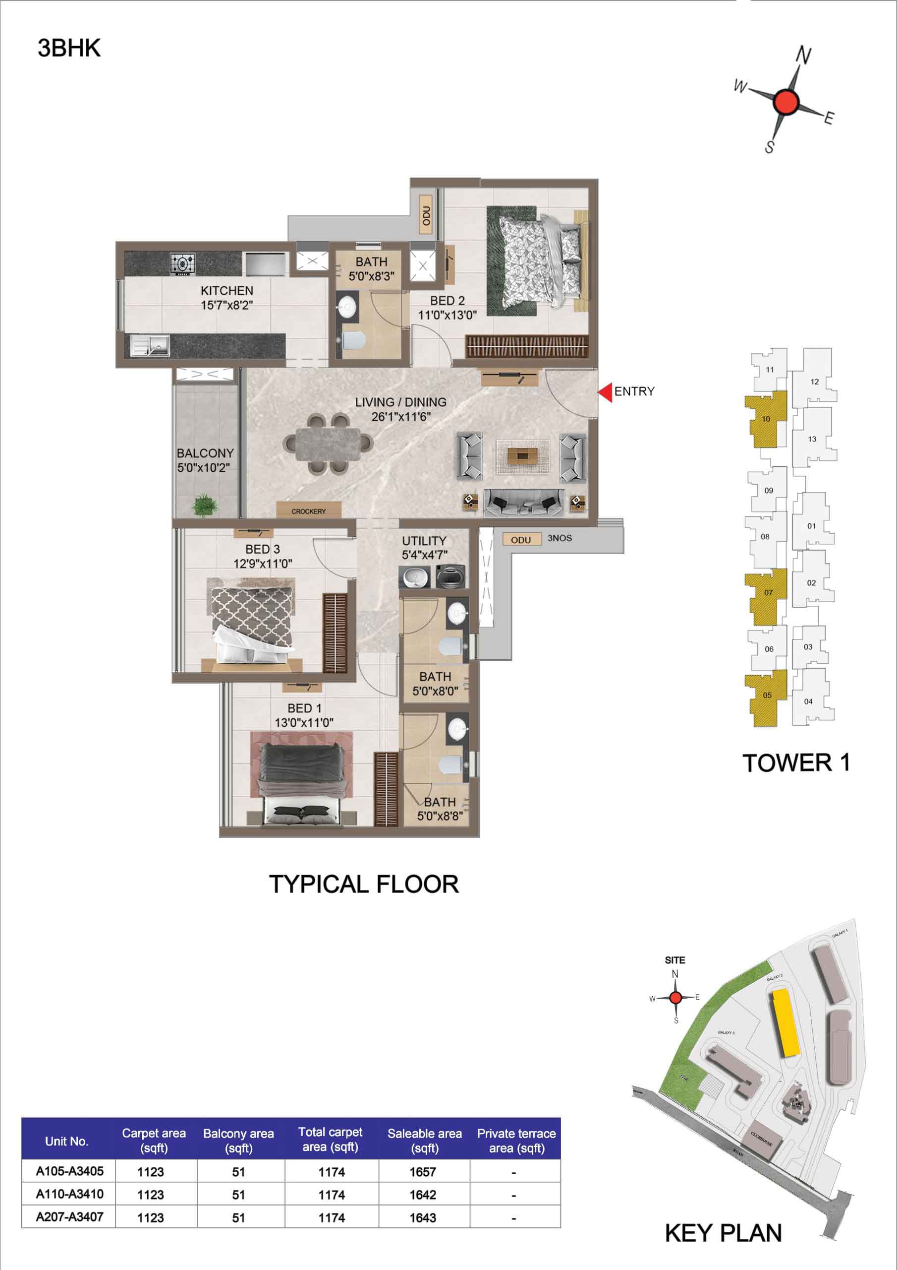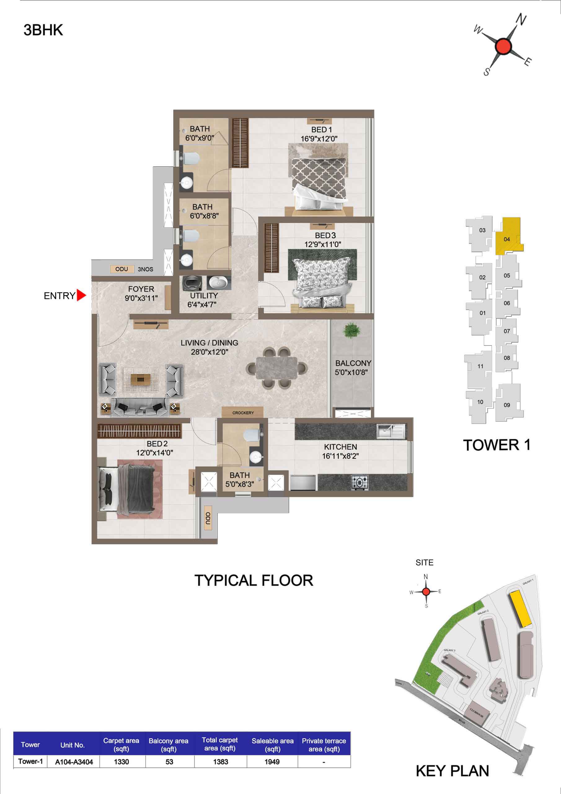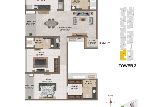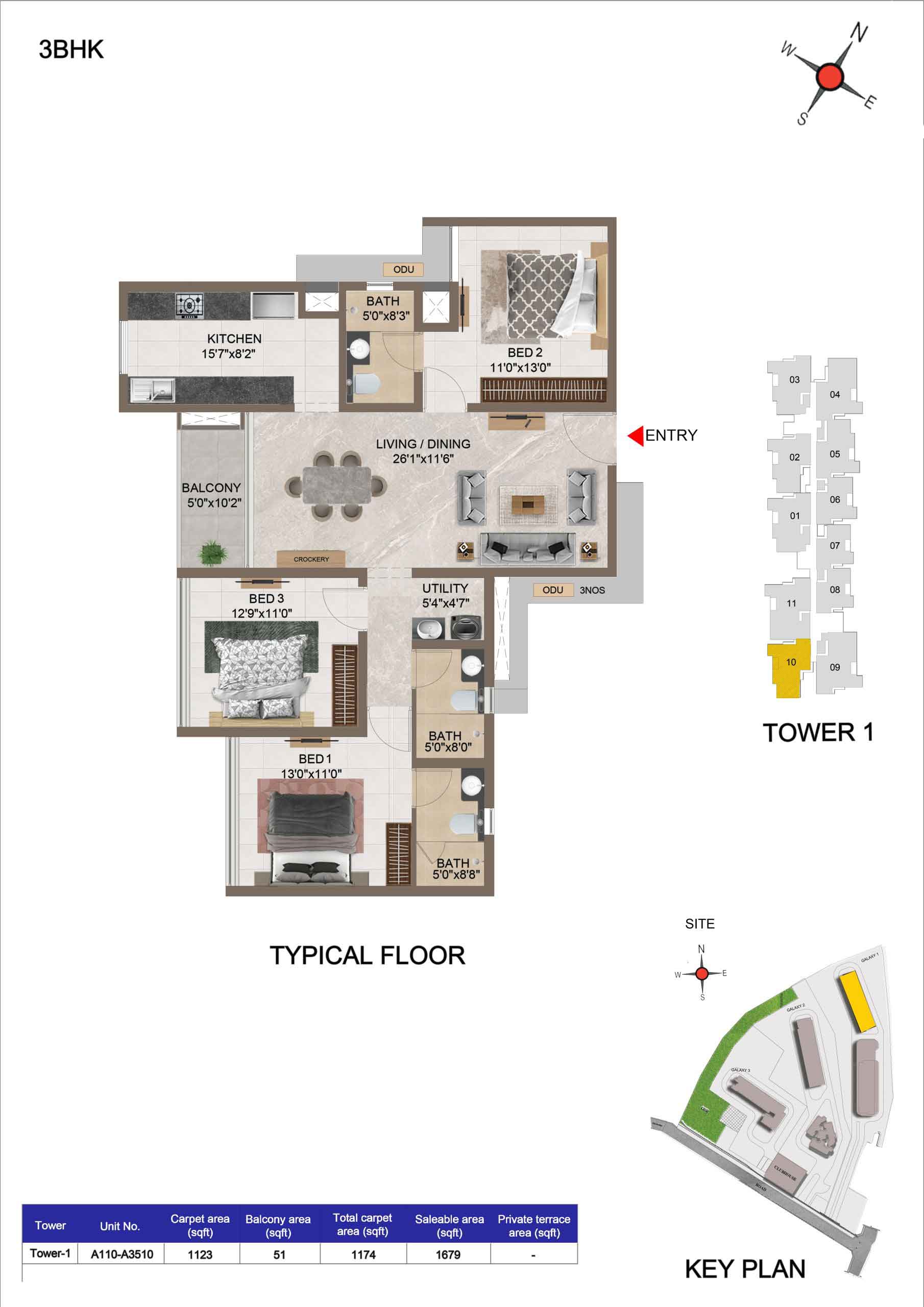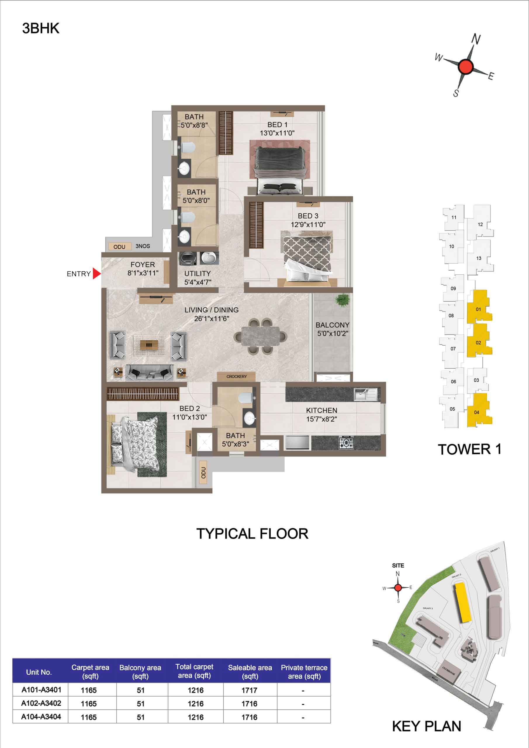 | 3 BHK | Apartment | 1659 Sqft to 1949 Sft | ₹ 7349/ Sqft | ₹ 1.35 Cr to 1.54 Cr |