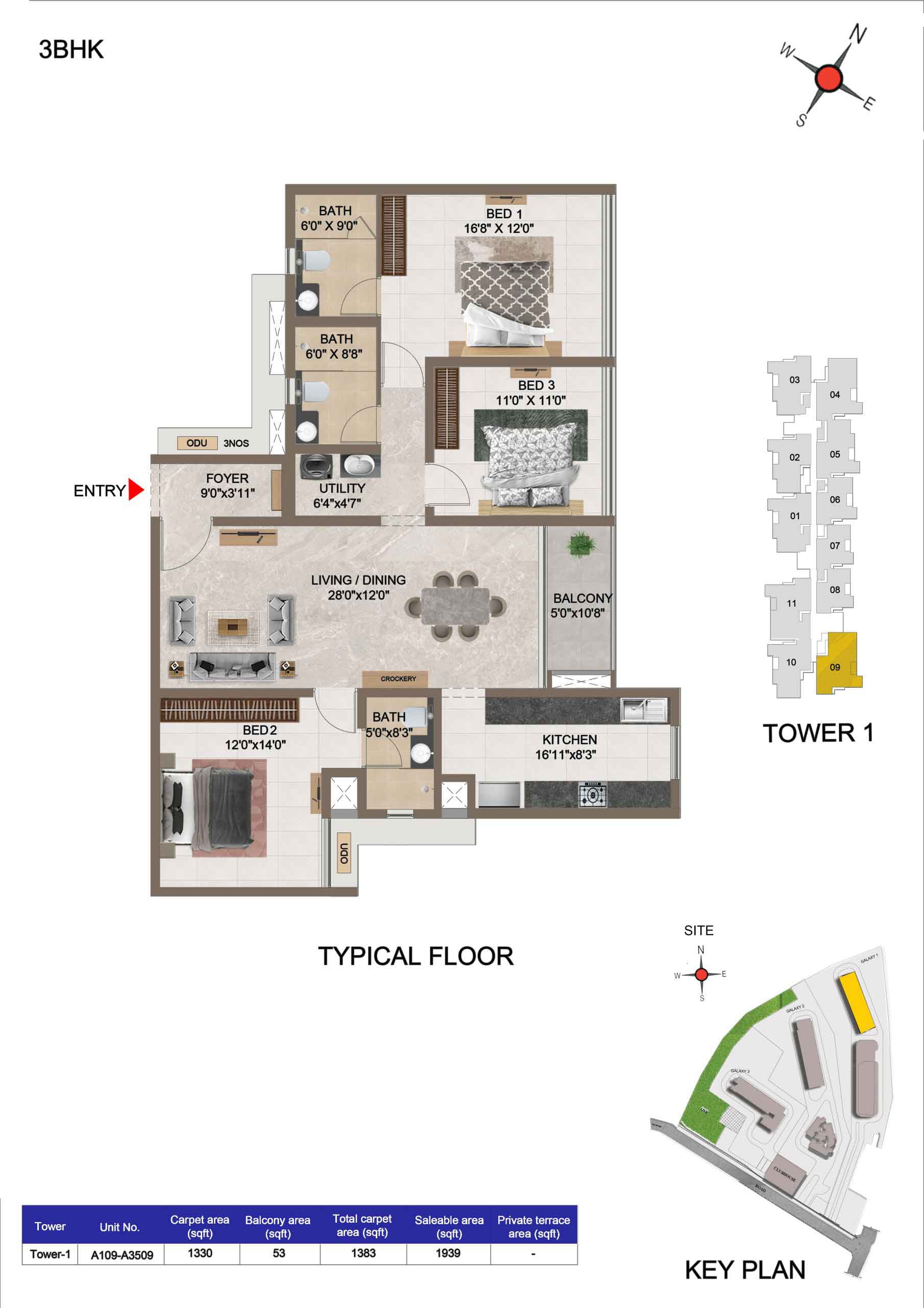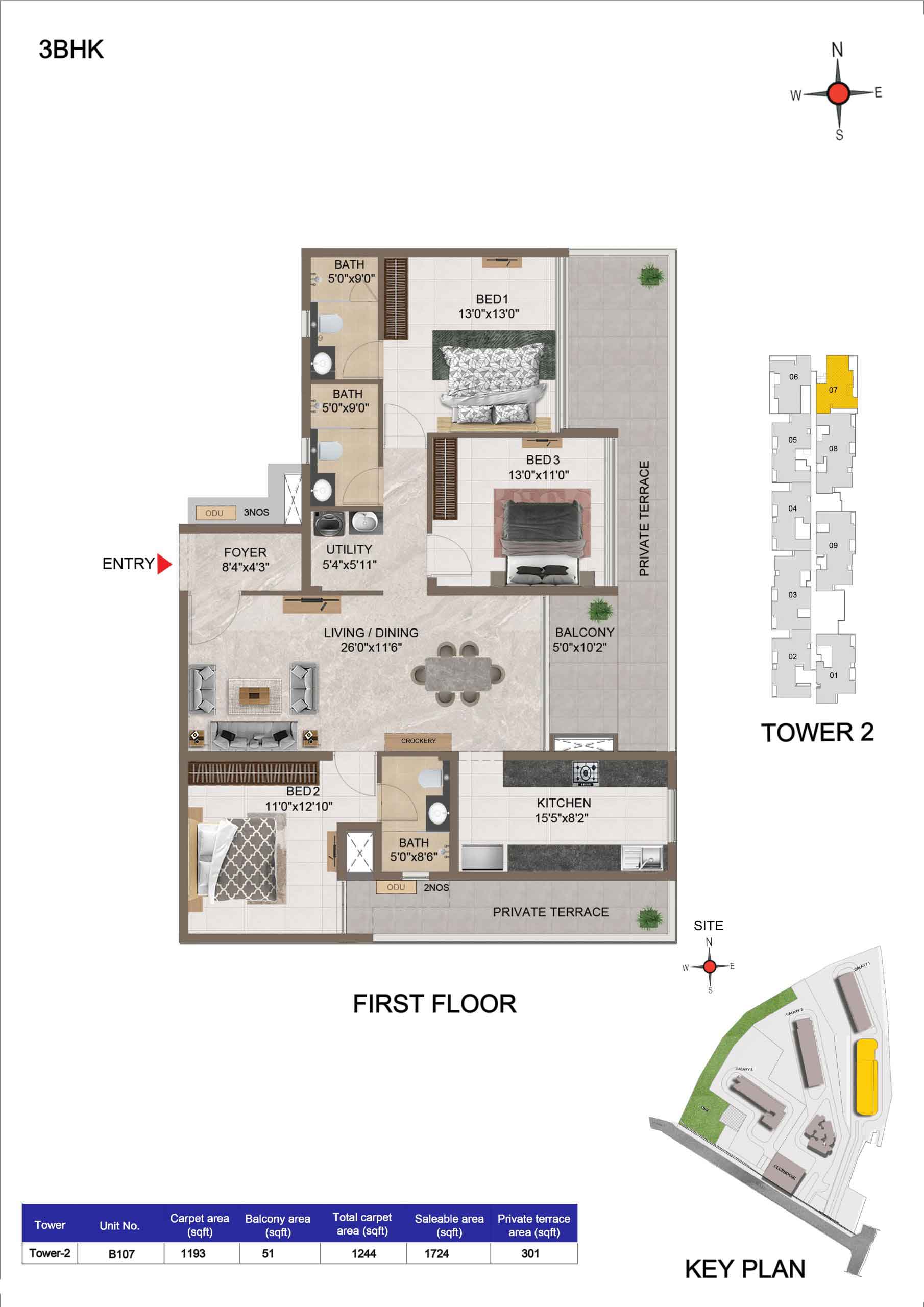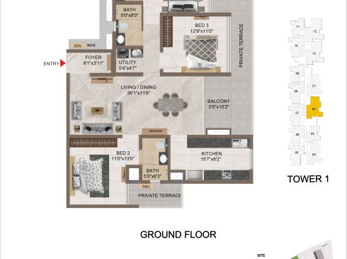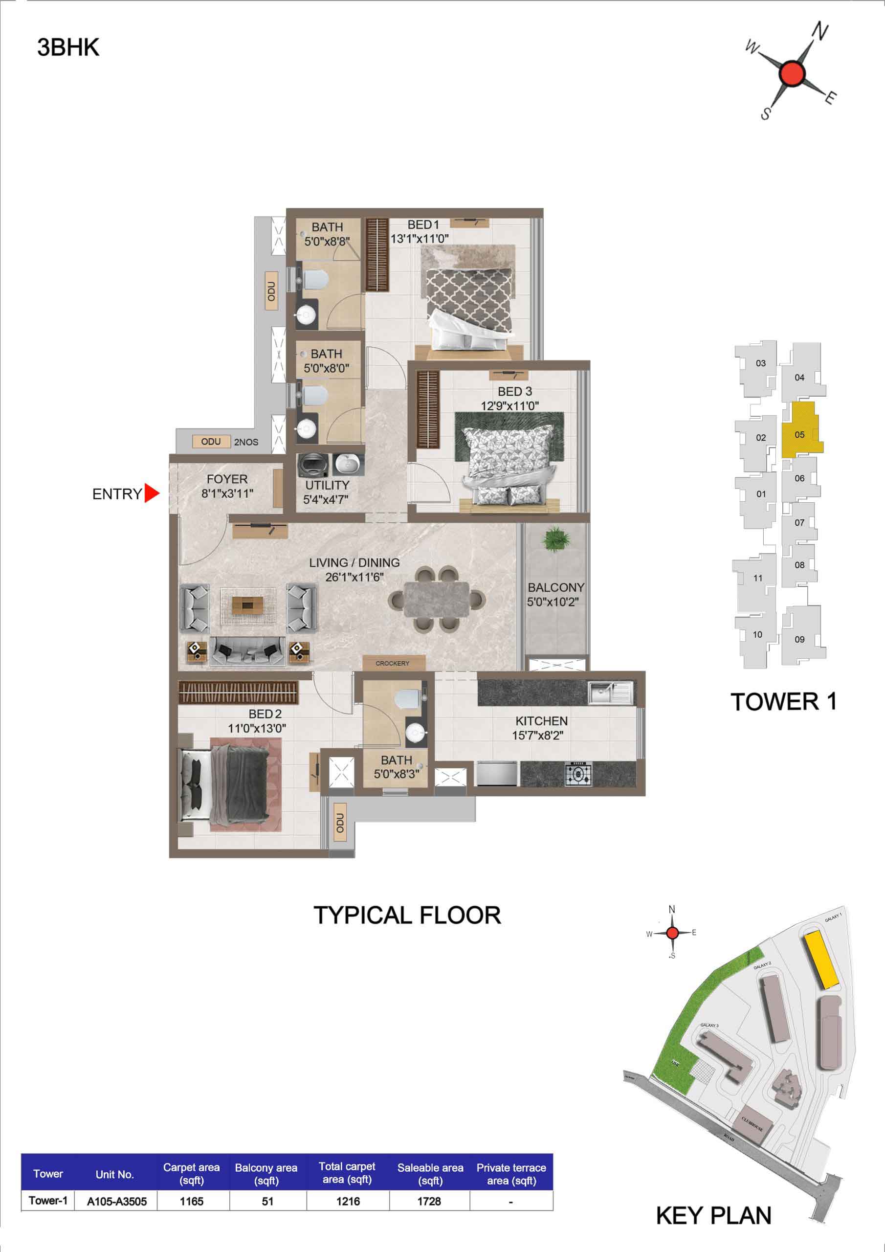| 3 BHK | Apartment | 1659 Sqft to 1949 Sft | ₹ 7349/ Sqft | ₹ 1.35 Cr to 1.54 Cr |