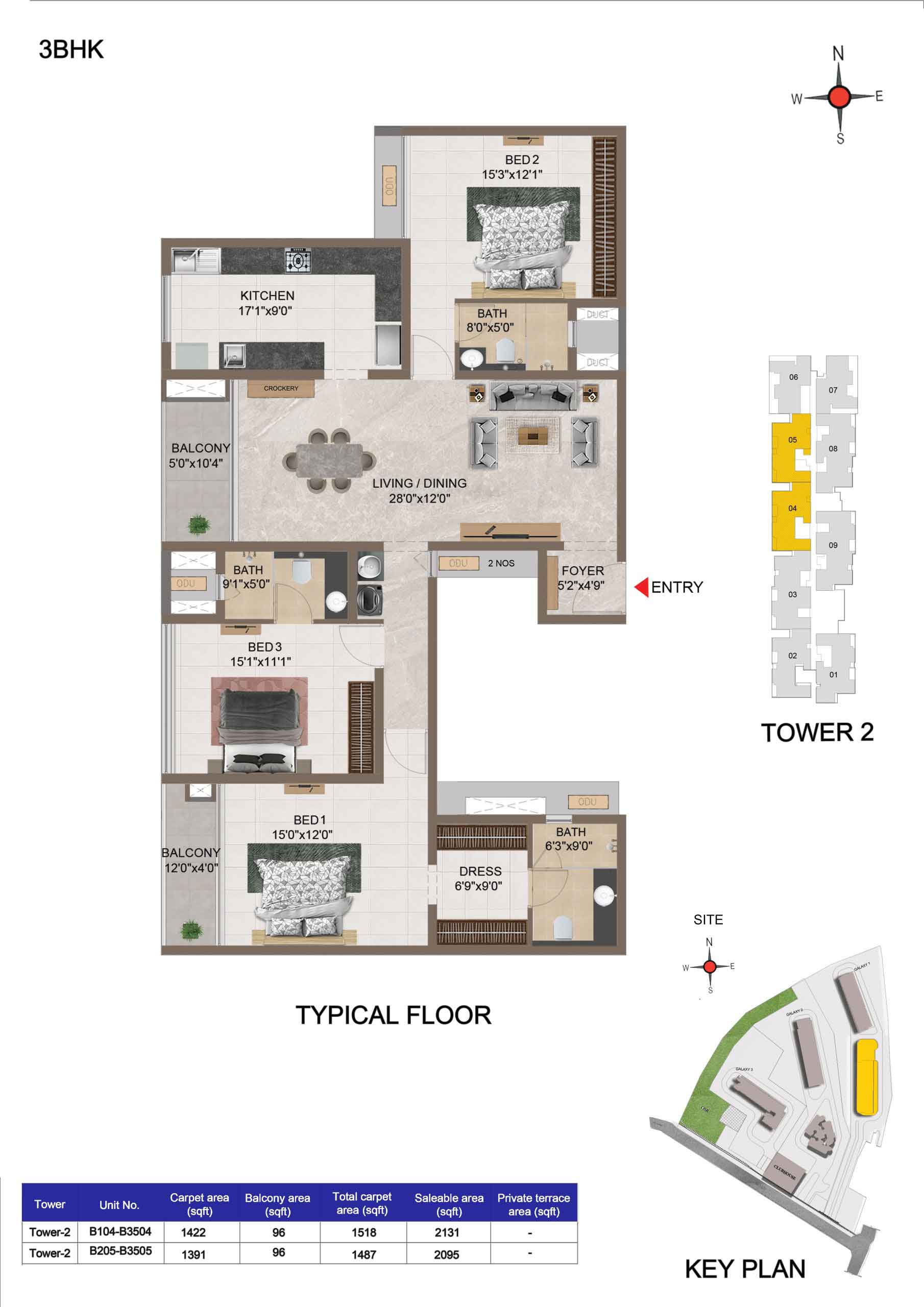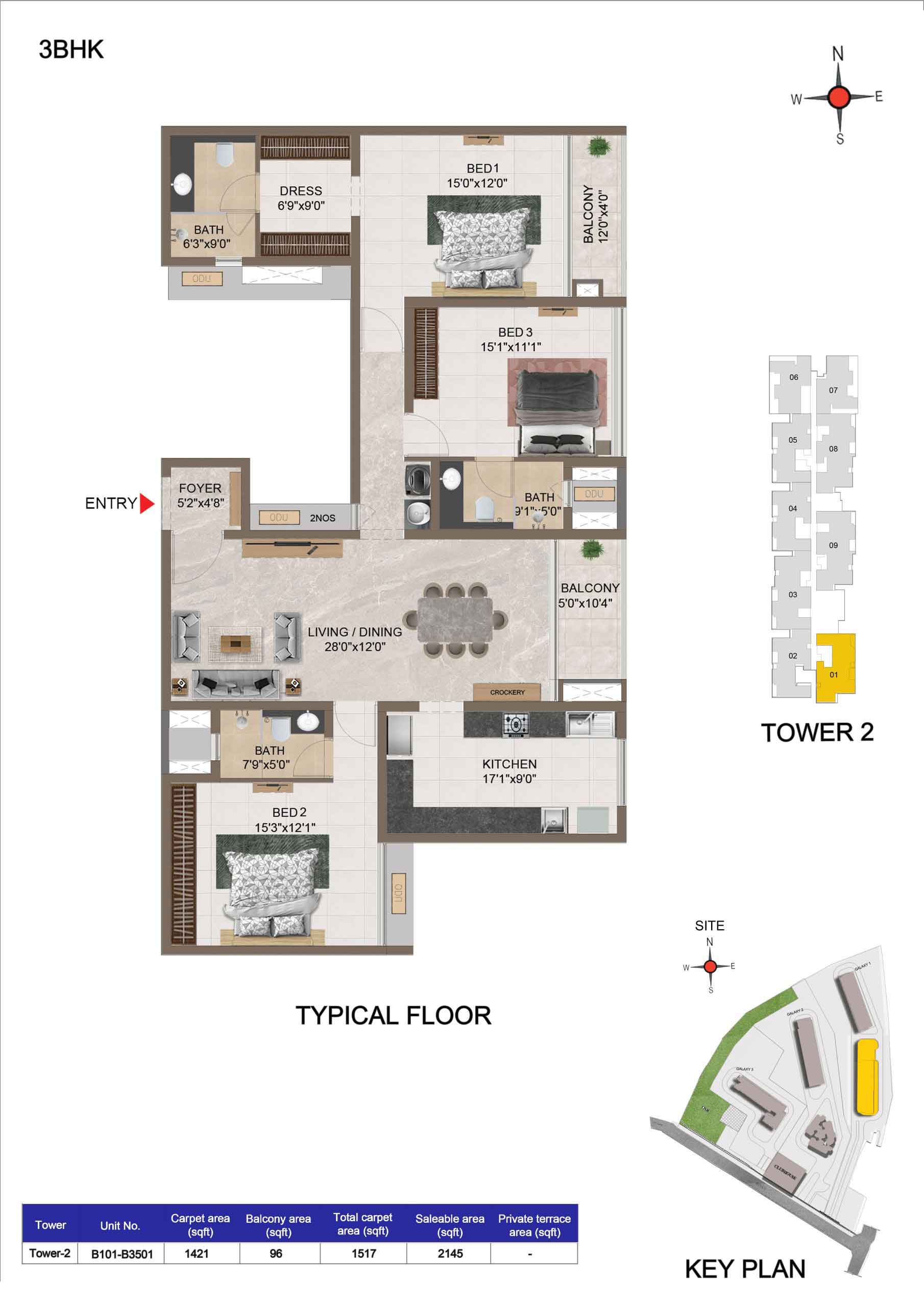 | 3 BHK | Apartment | 2095 to 2145 Sft | ₹ 7949 / Sqft | ₹ 1.79 Cr to 1.82Cr |