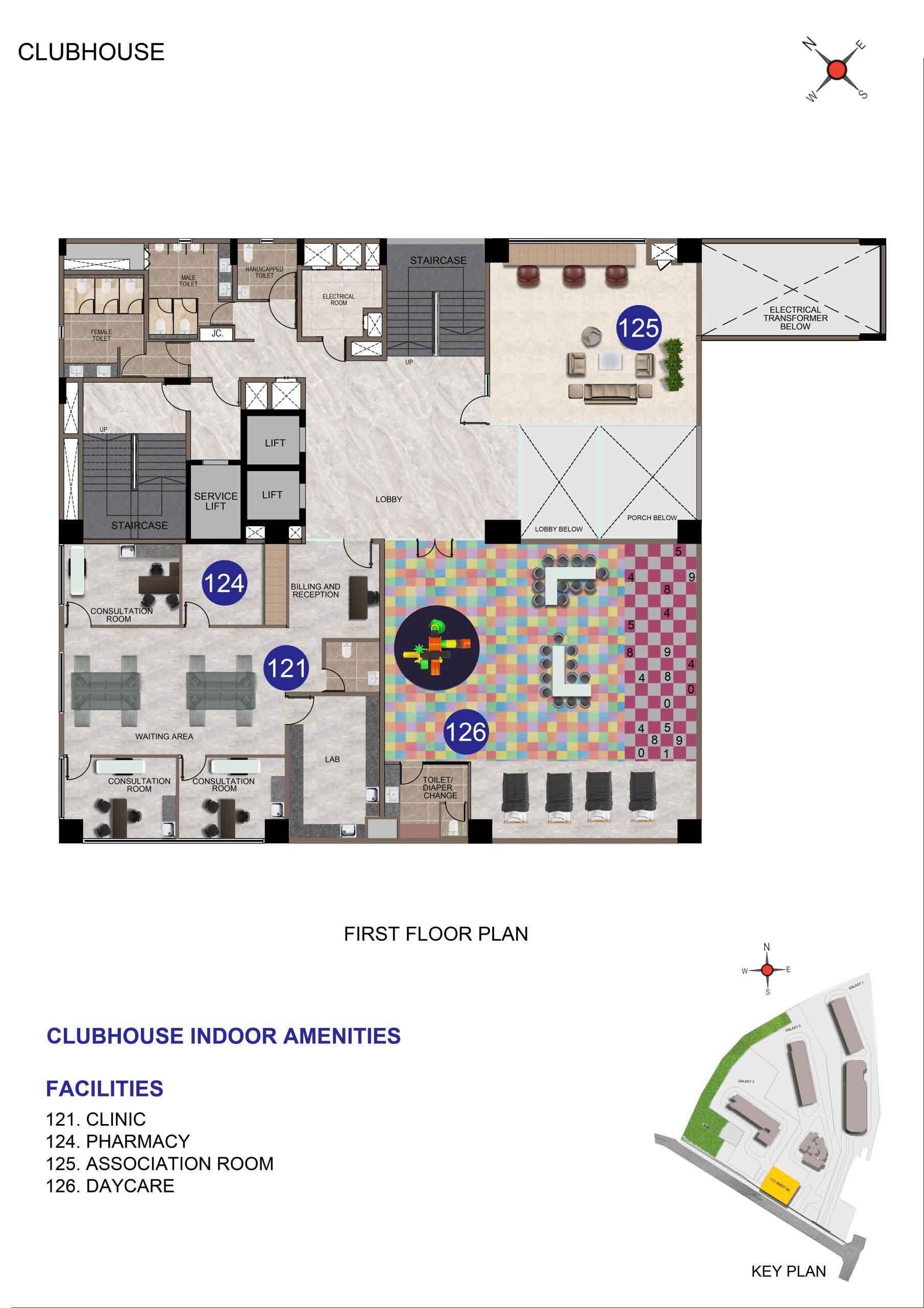 2. Back–up :100% Power backup for common amenities such as Clubhouse, lifts, WTP, STP & common area lighting