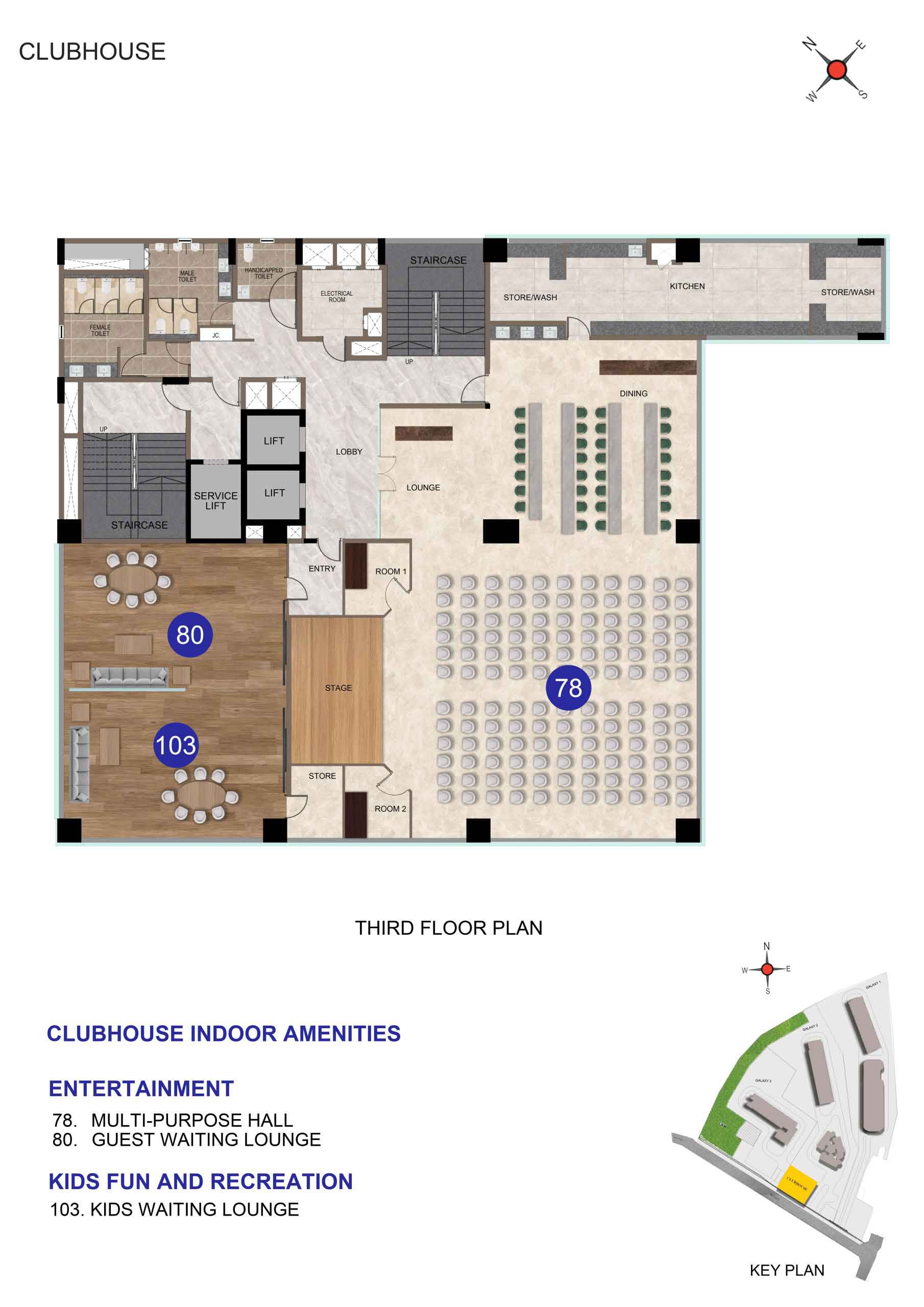 2. Back–up :100% Power backup for common amenities such as Clubhouse, lifts, WTP,