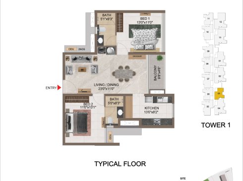 | 2 BHK | Apartment | 1190 Sqft - 1330 Sqft | ₹ 7549/ Sqft | ₹ 1.03Cr to 1.12Cr |