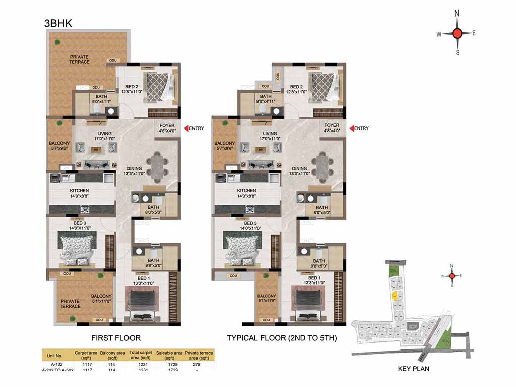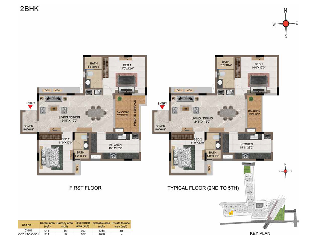 | BHK | Unit Type | Built-Up Area | Price Per Sq. Ft. | Price Range |