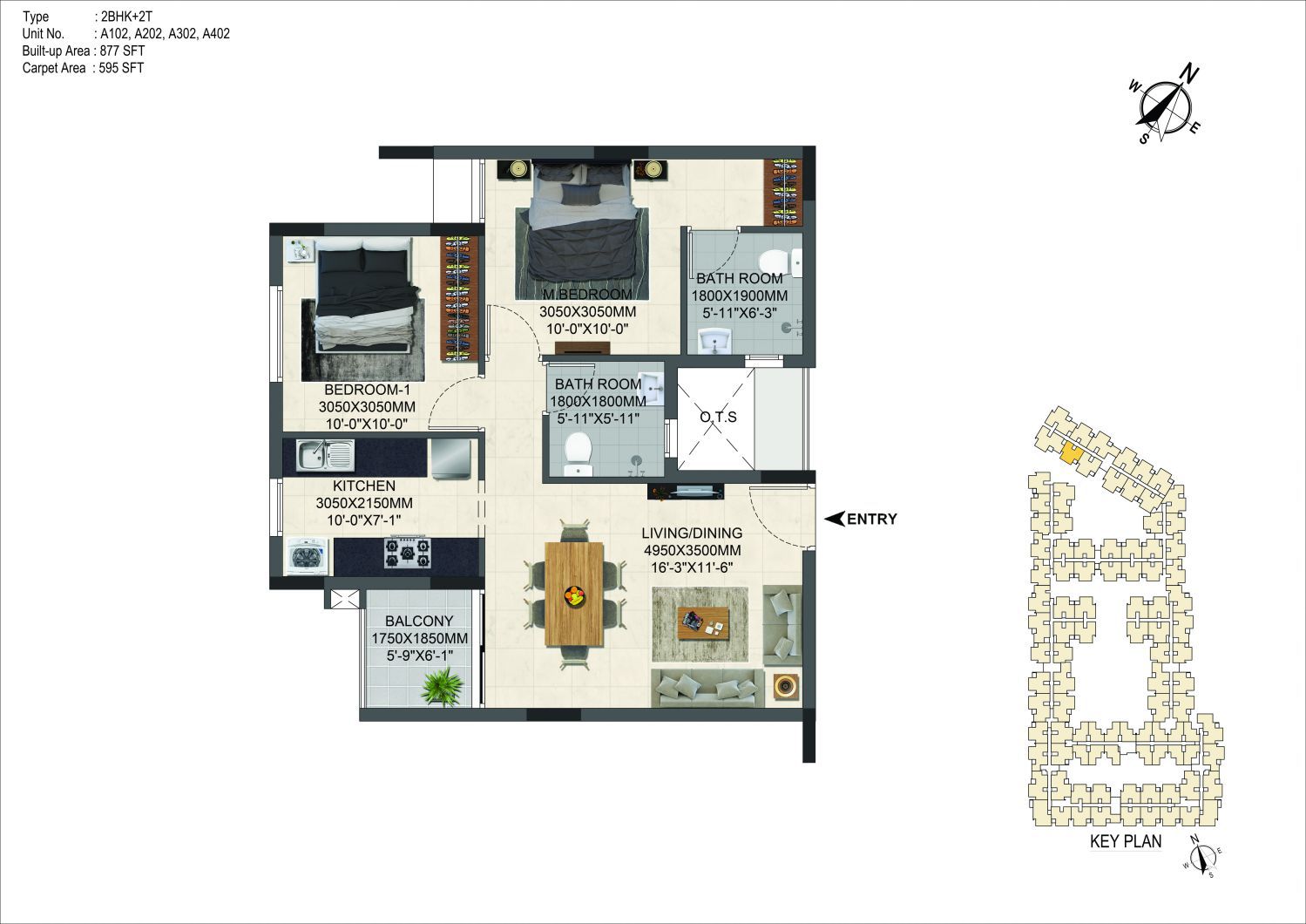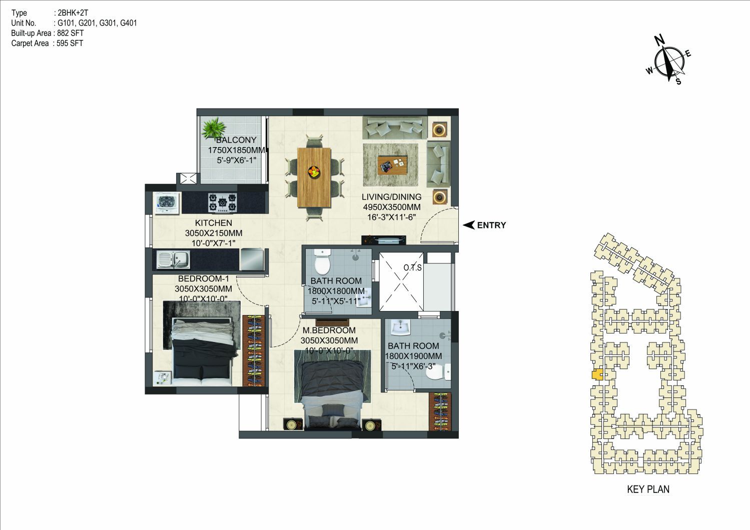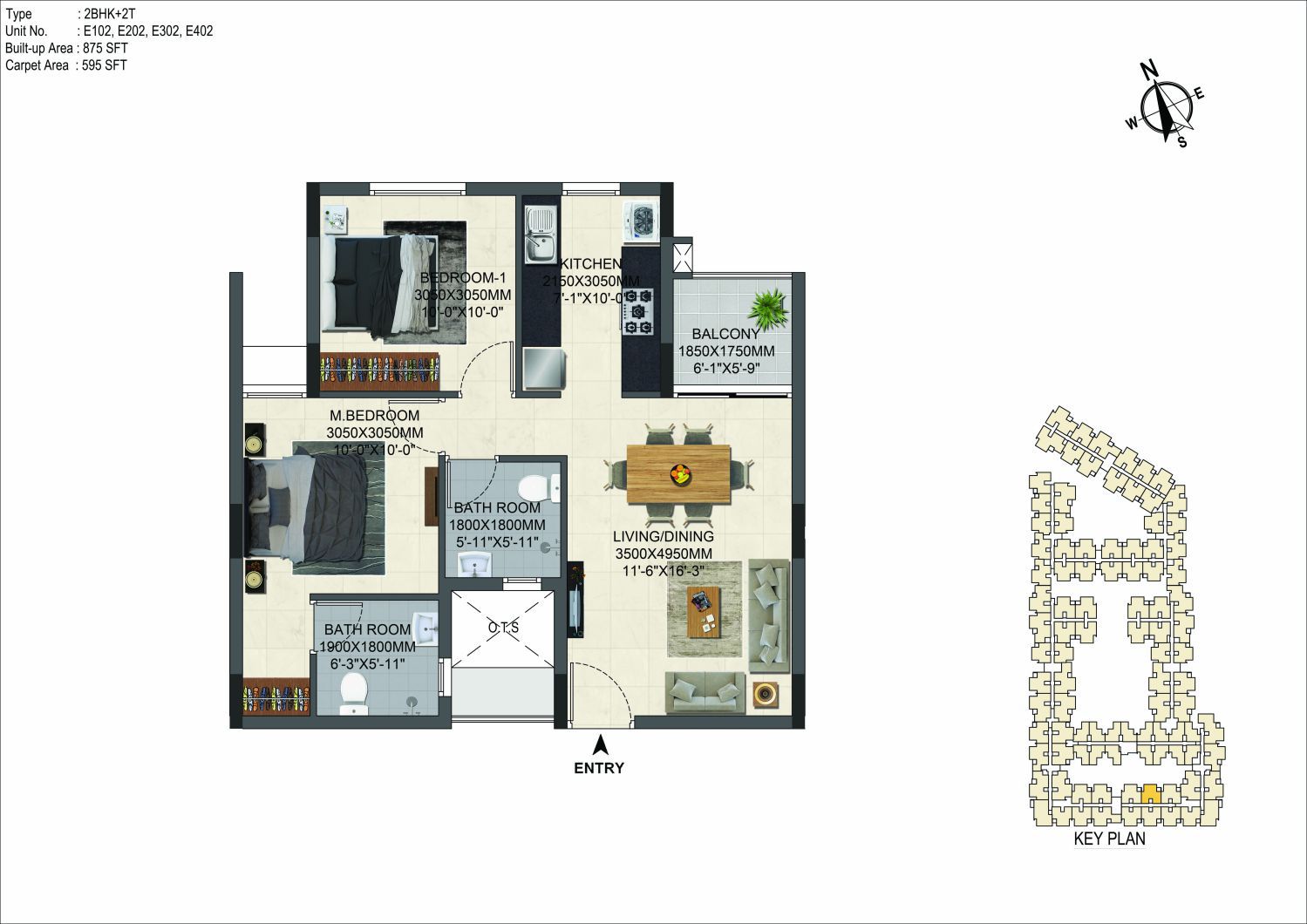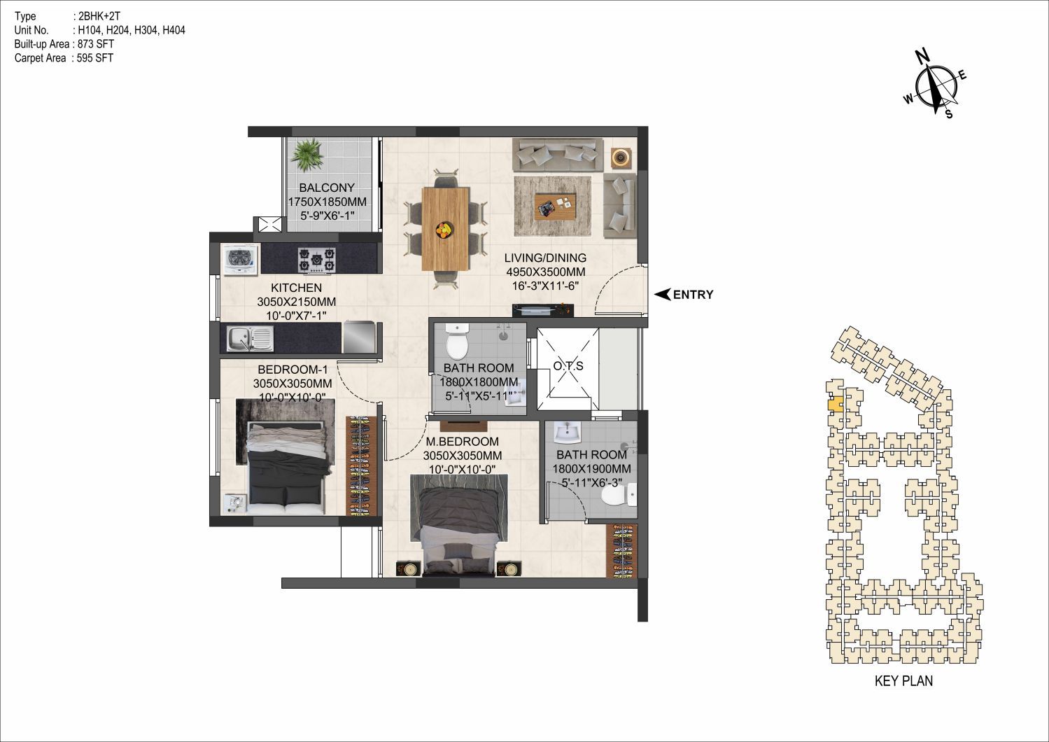 | 2 BHK | Regular | 874 Sqft | ₹3599/Sqft | Sold out |