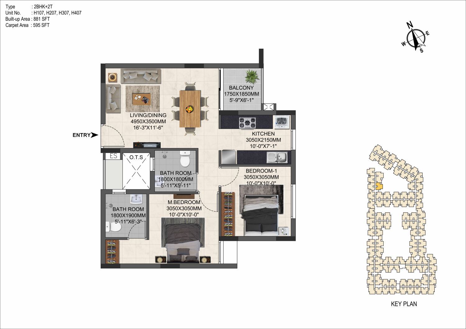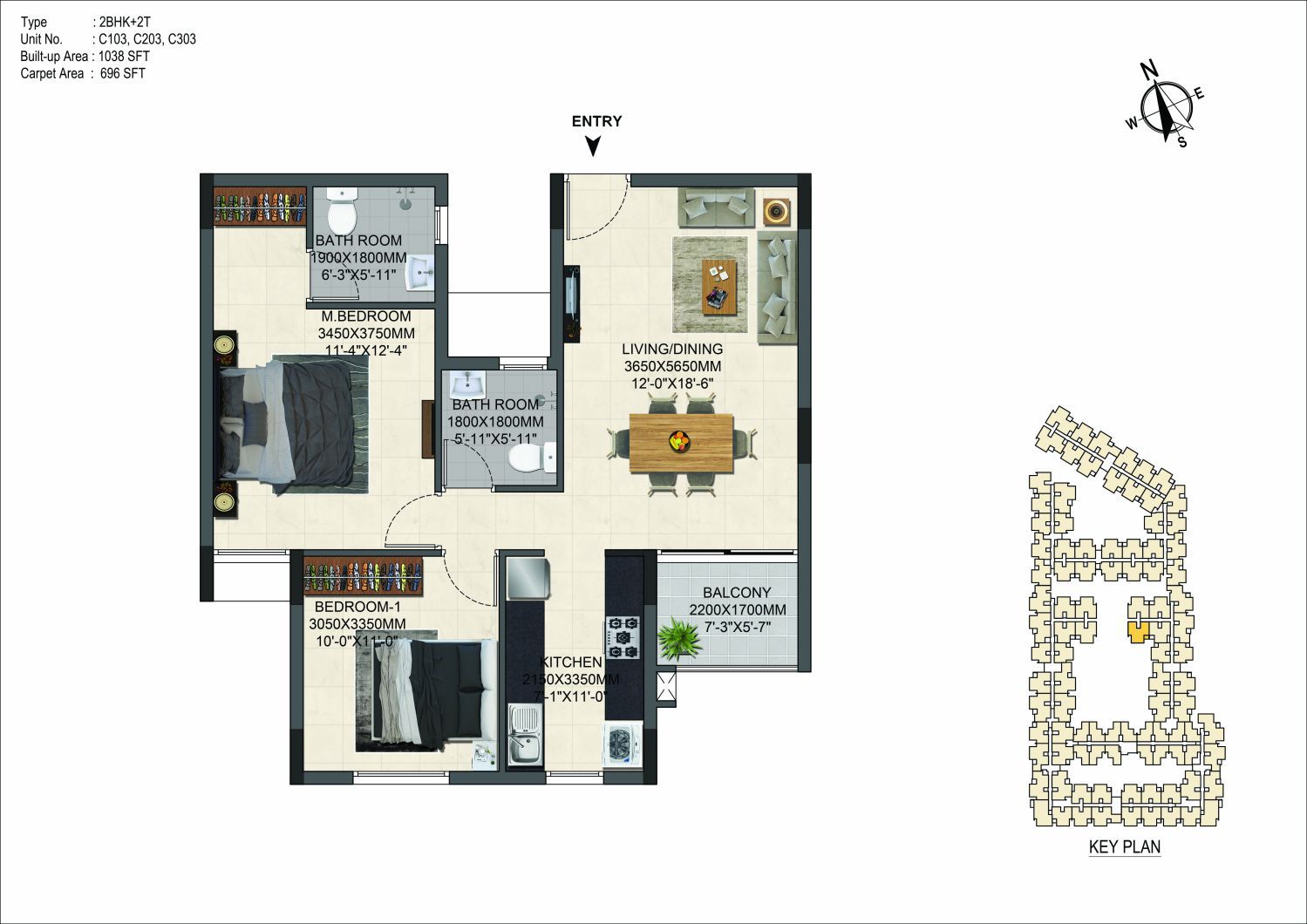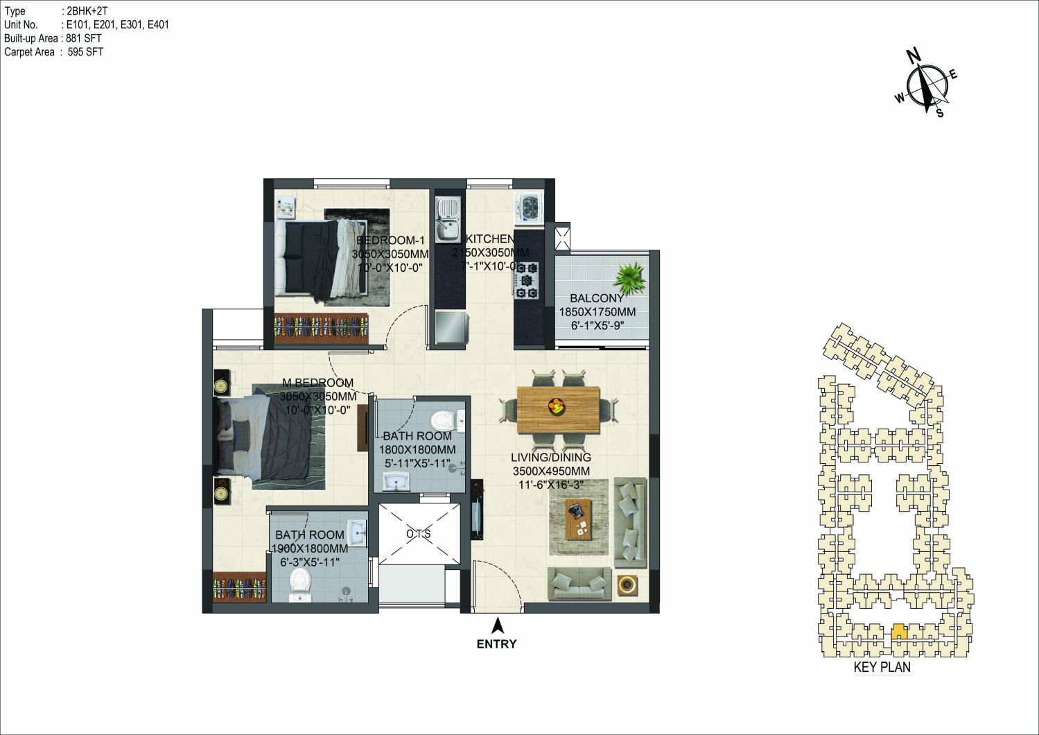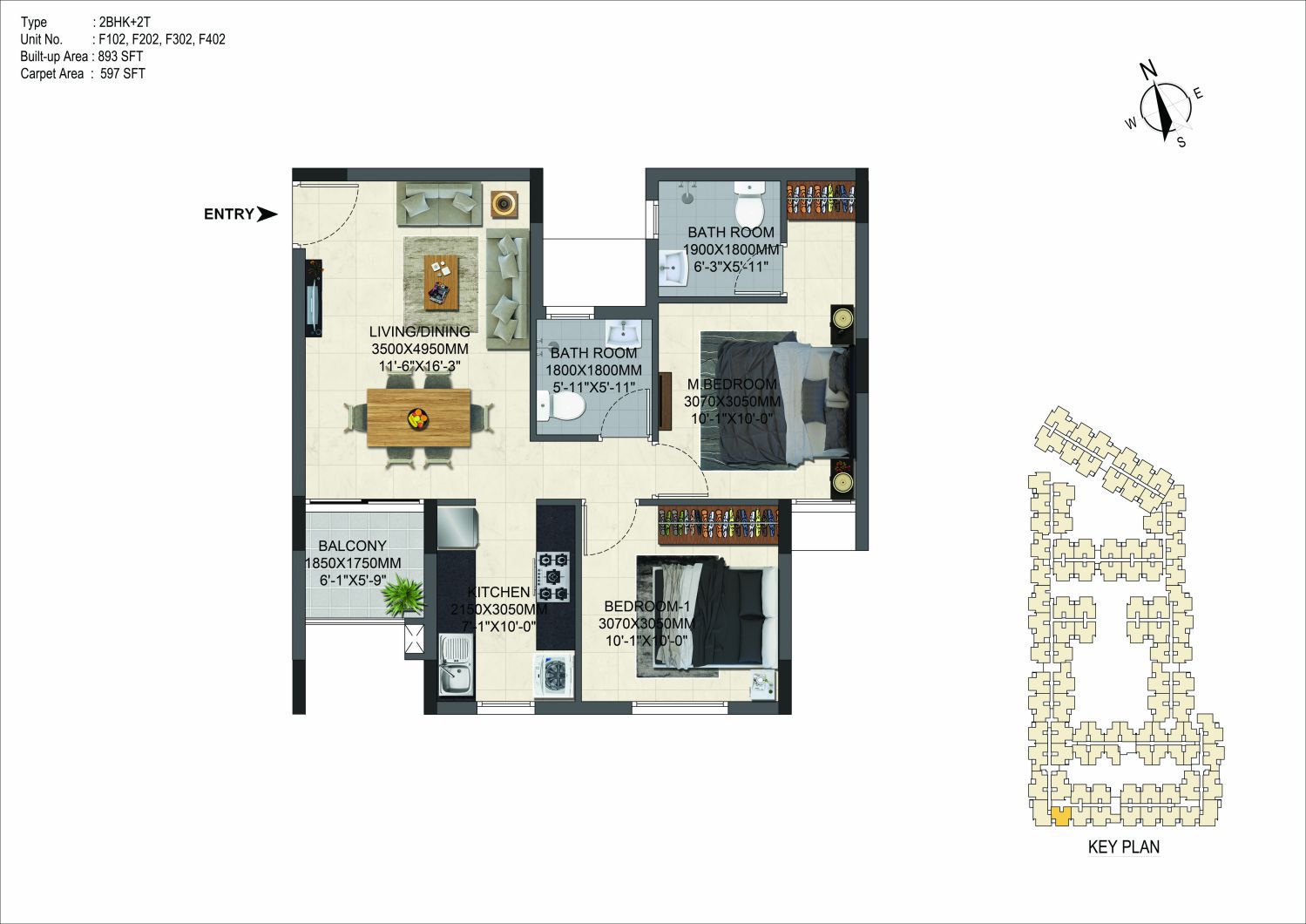 | 2 BHK | Regular | 874 Sqft | ₹3599/Sqft | Sold out |