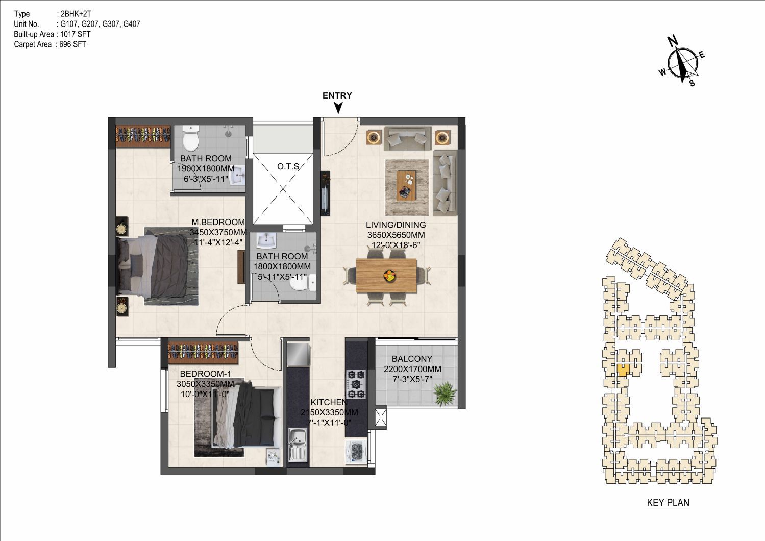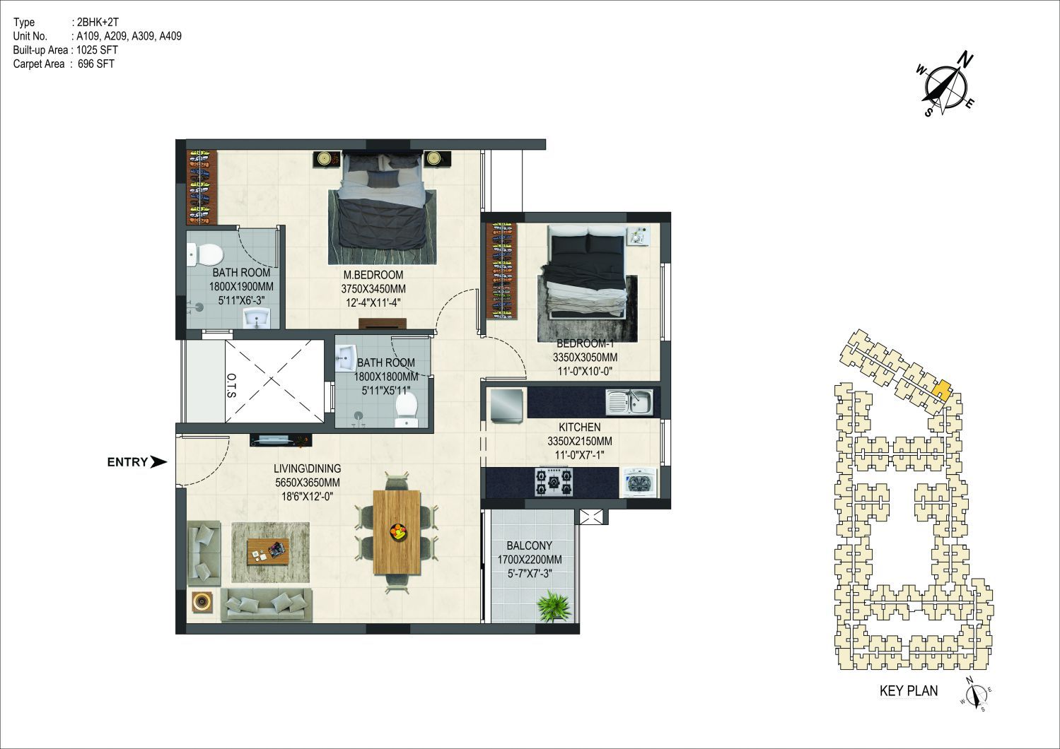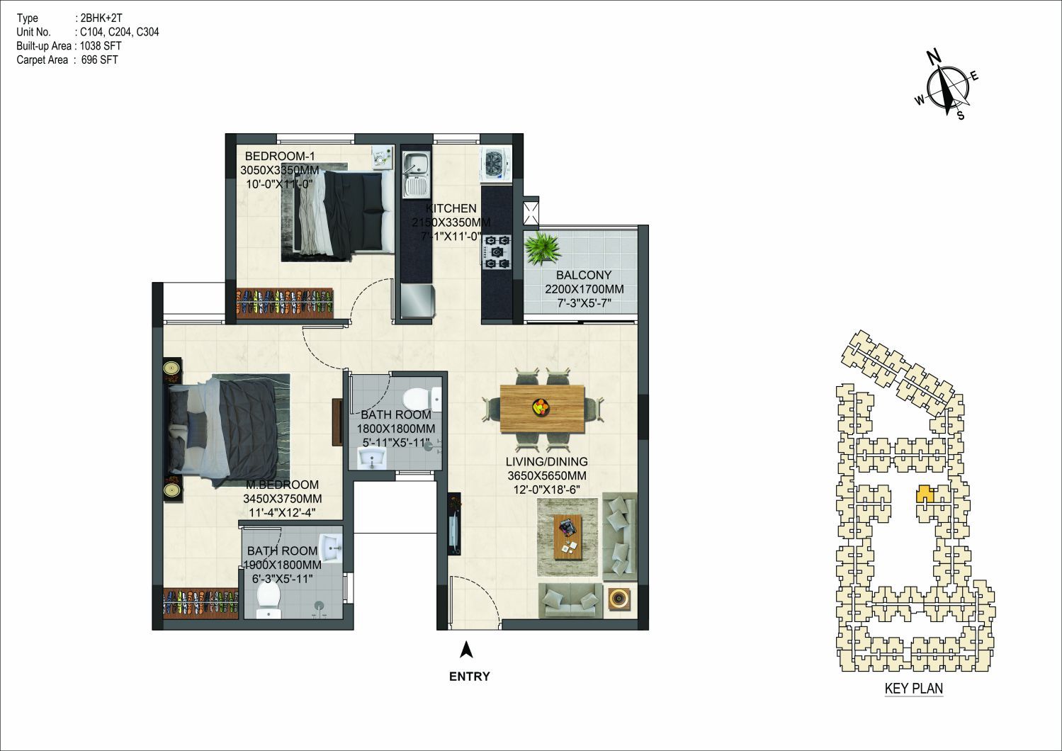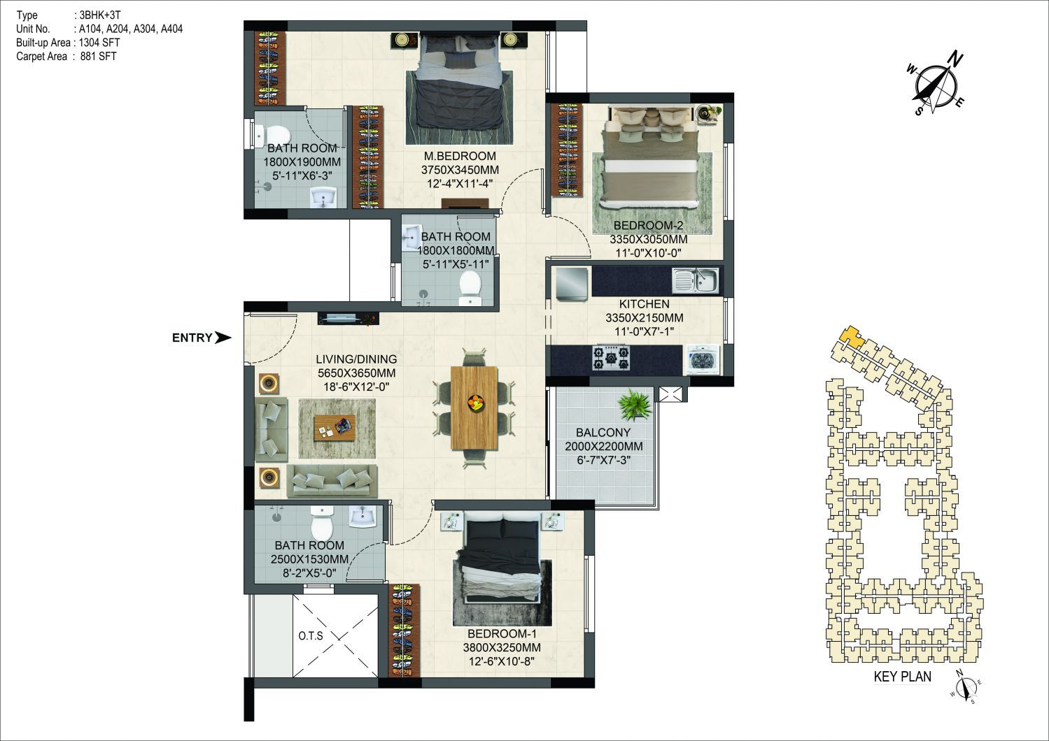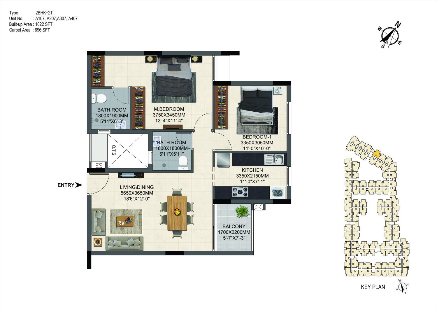 | 2 BHK | Regular | 874 Sqft | ₹3599/Sqft | Sold out |