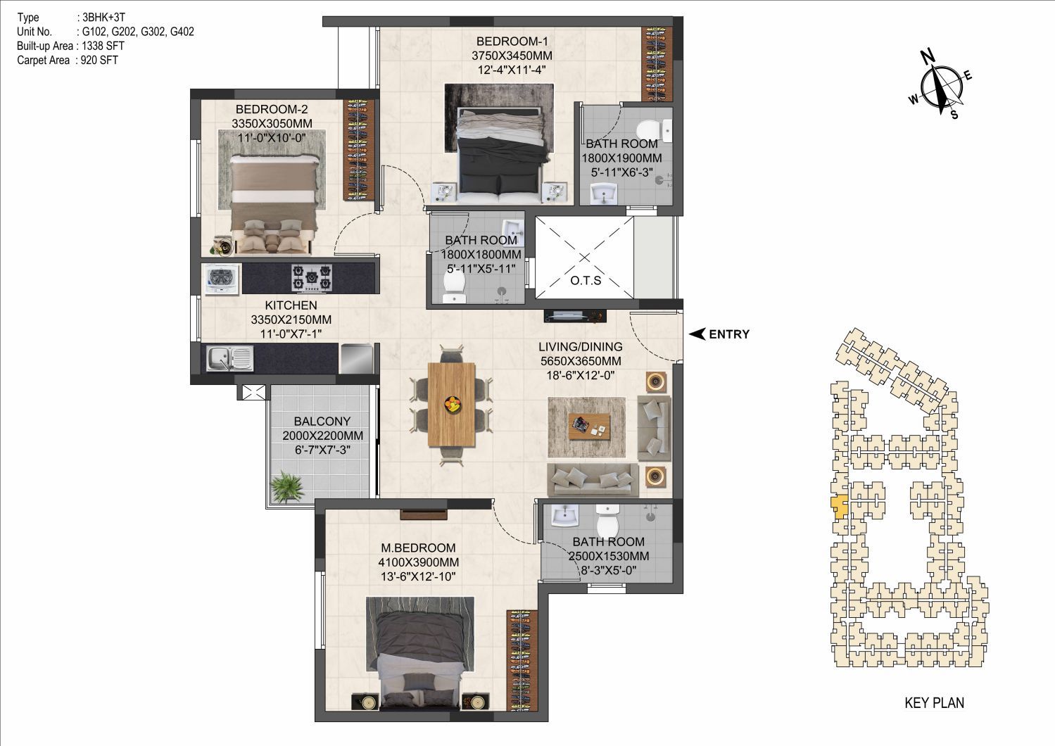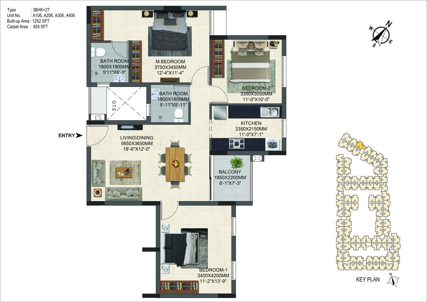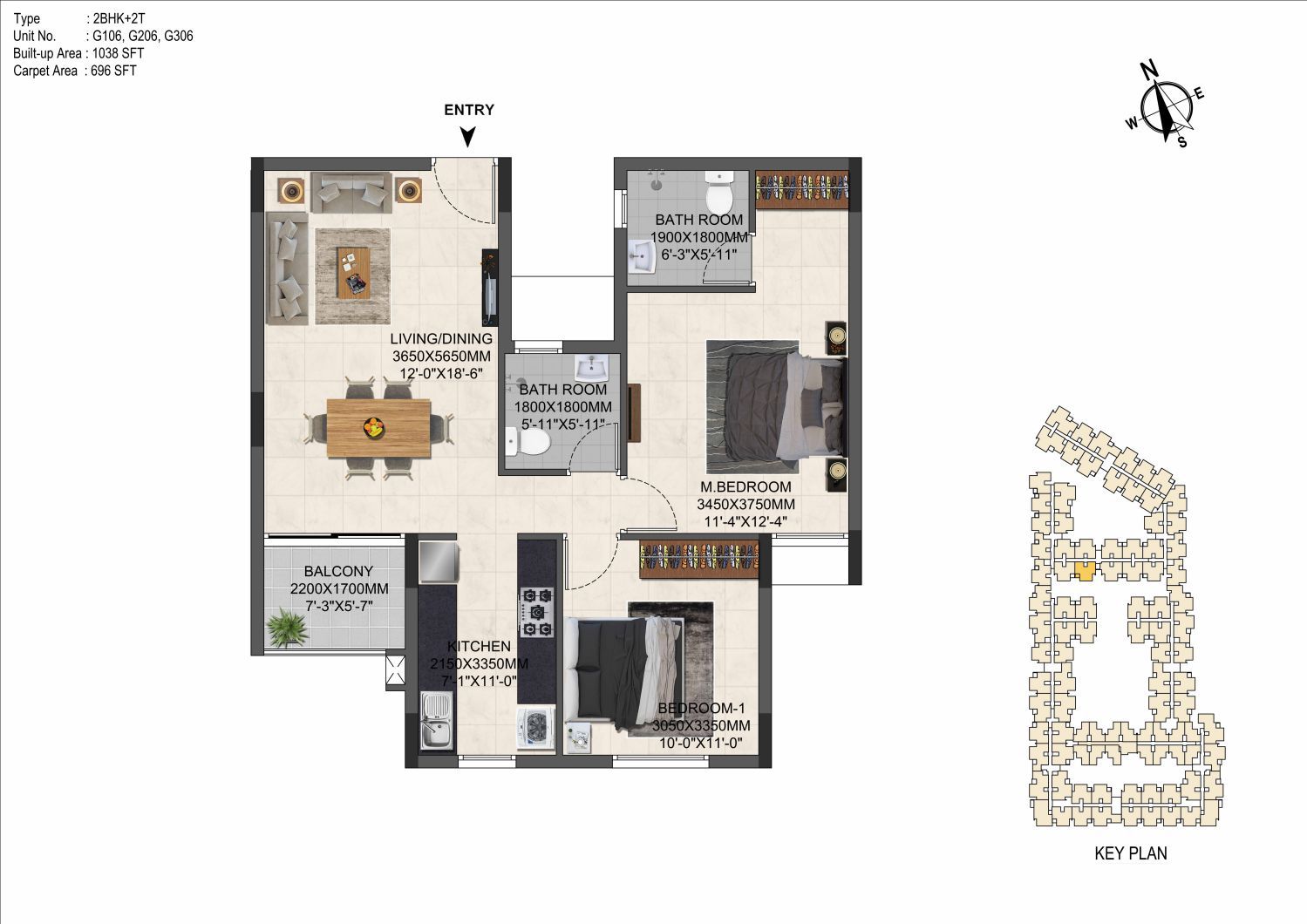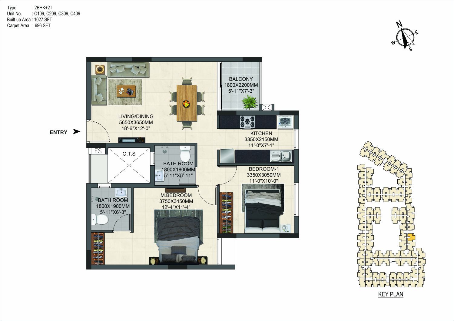| 2 BHK | Regular | 874 Sqft | ₹3599/Sqft | Sold out |