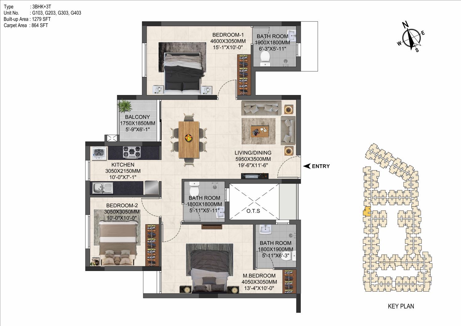| 3 BHK | Regular | 1272 Sqft | ₹3599/Sqft | Sold out |