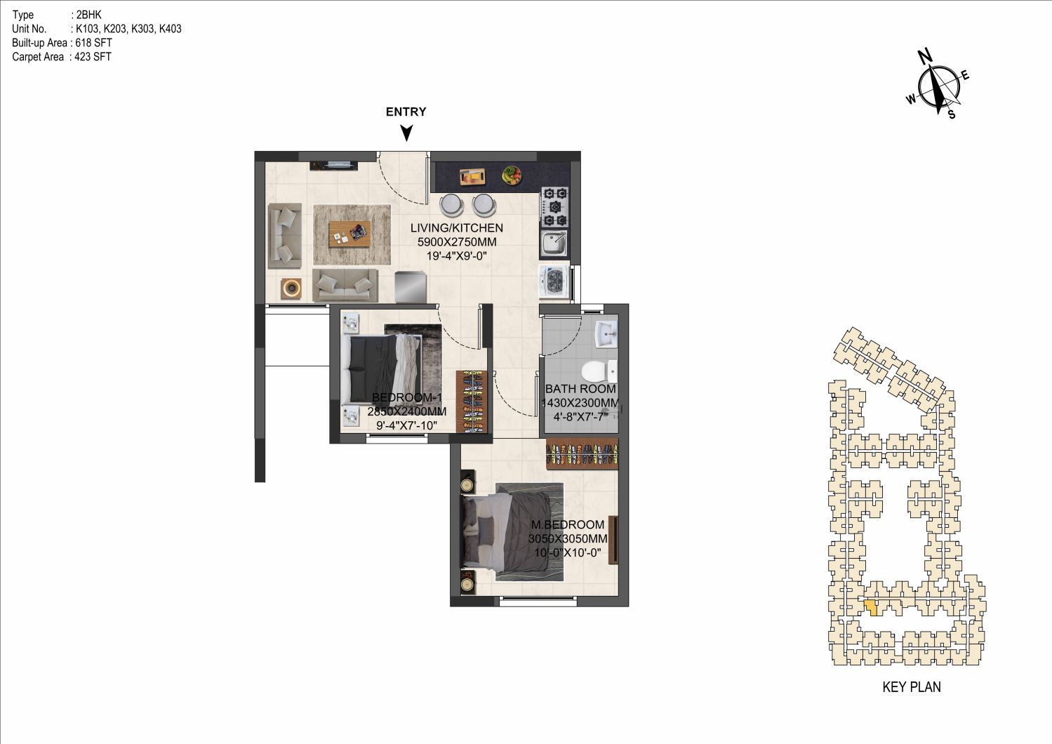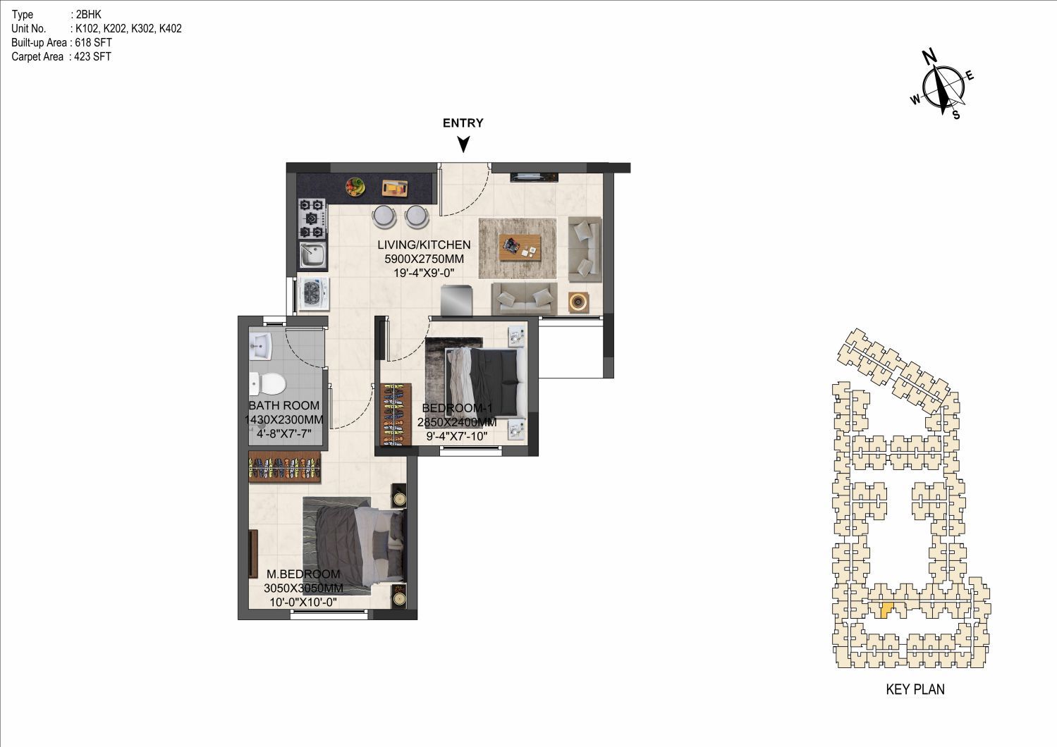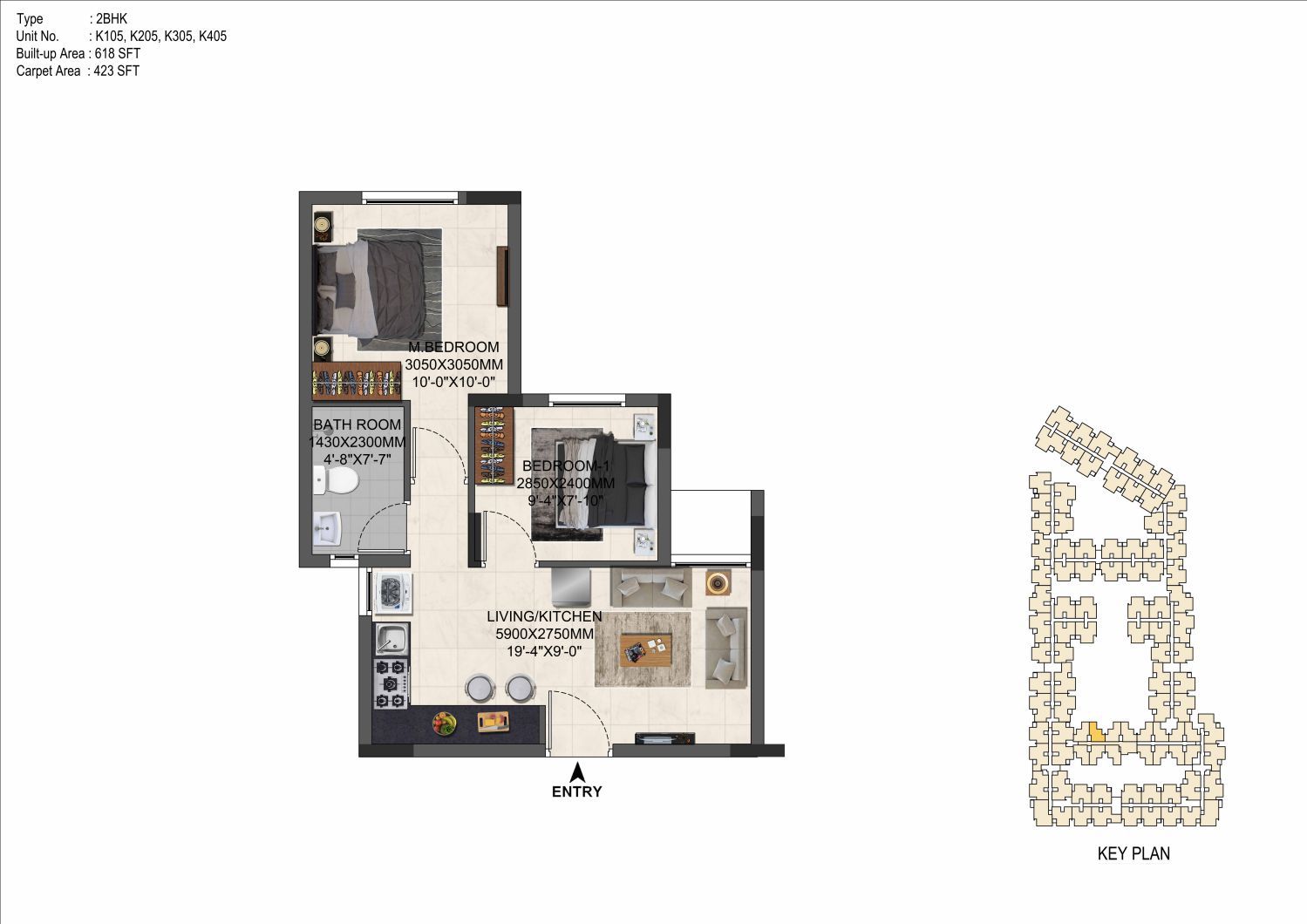 | 2 BHK | Compact | 618 Sqft - 621 Sqft | ₹3599/Sqft | Sold out |