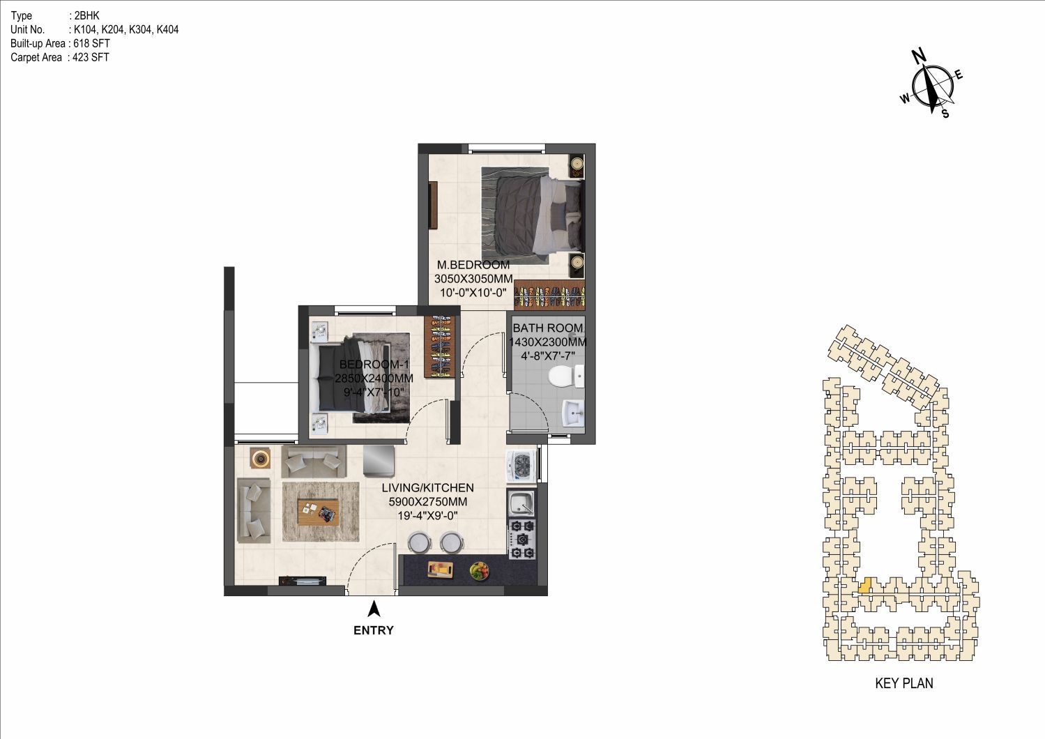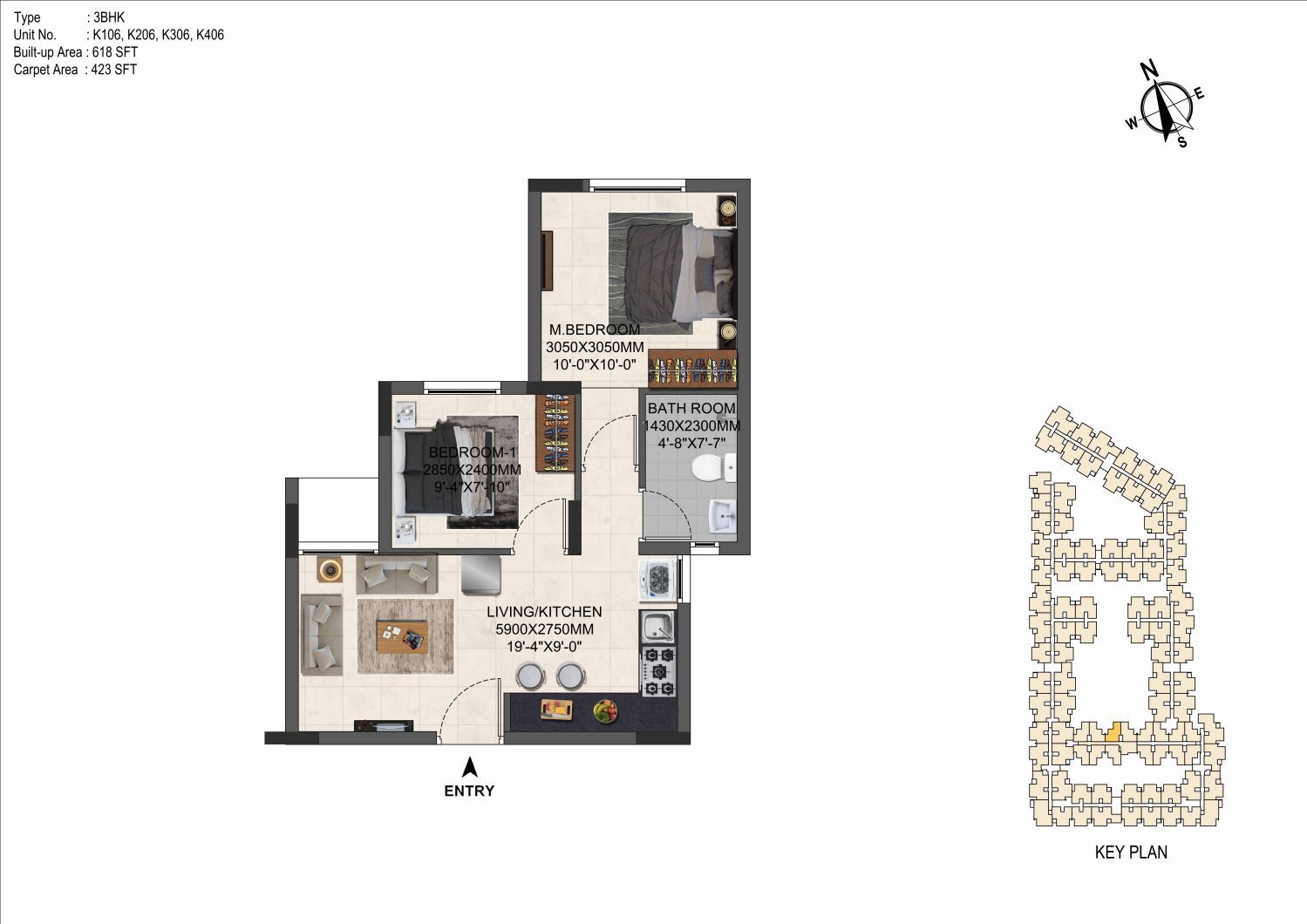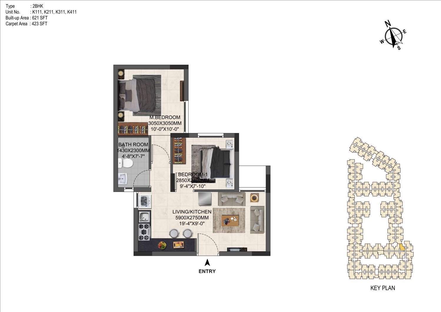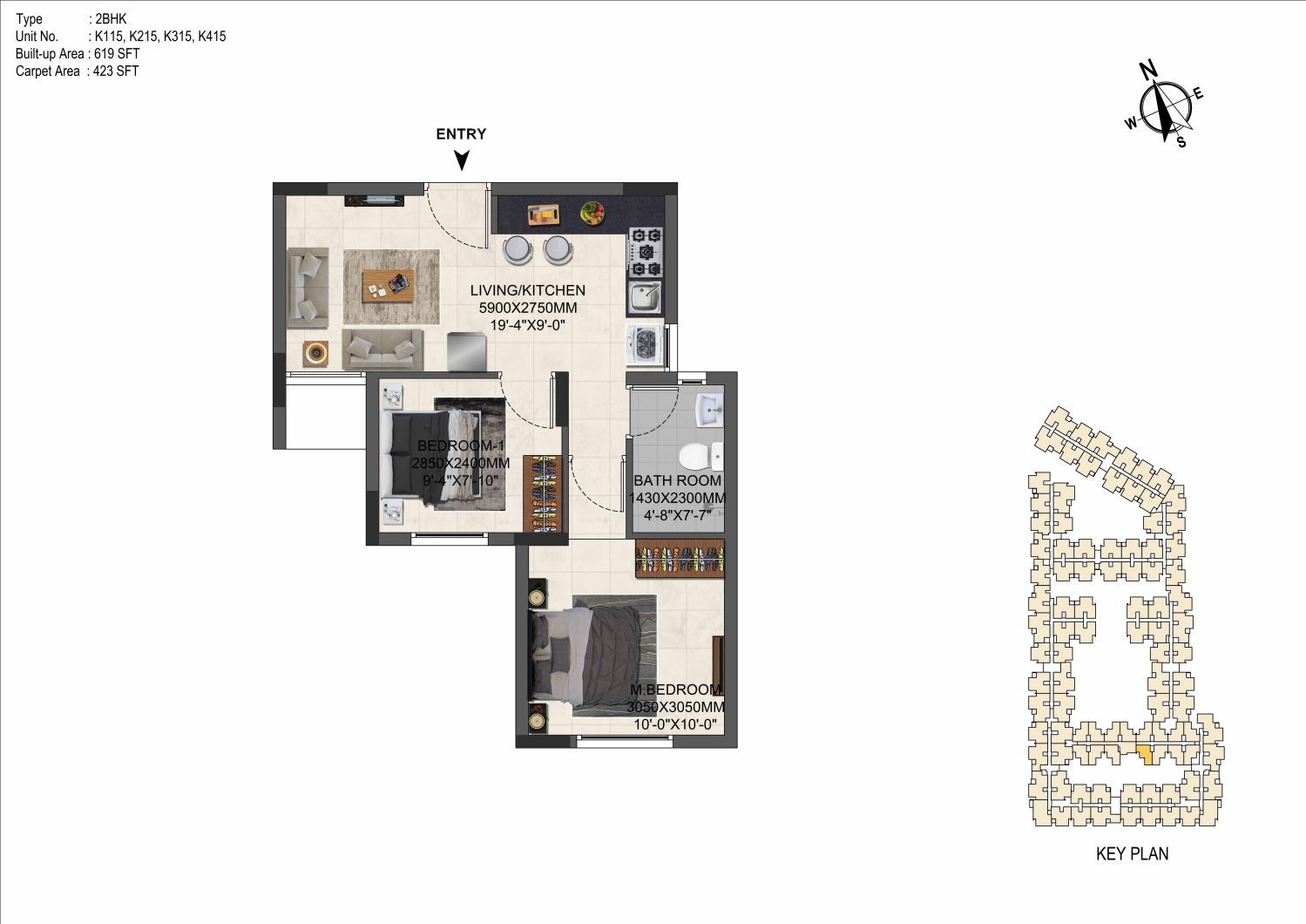 | 2 BHK | Compact | 618 Sqft - 621 Sqft | ₹3599/Sqft | Sold out |